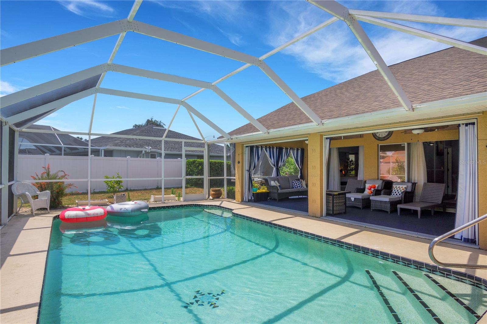 Airbnb totalmente remodelado e turnkey - Produtor de renda comprovado! Não perca esta piscina lindamente atualizada em casa com mais de 2.100 pés quadrados de espaço para estar! Situado em um estacionamento de canto com uma garagem circular de ambas as ruas, esta casa possui paisagismo exuberante com redução de concreto e detalhes em pedra. Esta casa de garagem de 3 quartos, 2 banheiros e 2 carros foi completamente revigorada e está realmente pronta! As atualizações recentes incluem: ? Novo piso de vinil por toda parte ? Banheiros totalmente remodelados ? Tinta interior fresca ? Novo telhado (2022) e a/c ? Cortinas inteligentes do furacão ? Piscina com gaiola re-rastreada Entre na entrada grande e de azulejos e uma sala de estar formal e arejada com tetos de volume, ventiladores de teto elegantes e prateleiras de plantas decorativas. A cozinha espaçosa possui muitos armários, utensílios de aço inoxidável e uma despensa, abrindo para a sala da família com uma encantadora janela de sacada. A planta piso de quartos divididos oferece armários de walk-in em todos os quartos, incluindo dois na suíte master. O banheiro primário possui vaidades duplas, uma banheira de jardim e um chuveiro, enquanto o segundo banheiro funciona como um banho de bilhar conveniente com acesso direto ao Lanai. Renda comprovada do Airbnb - US $ 55.000 em 2024! Esta casa é um Airbnb, totalmente mobiliado, com uma forte história de aluguel! Somente em 2024, gerou US $ 55.000 em renda de aluguel, tornando -a uma oportunidade de investimento fantástica. O proprietário está oferecendo todos os móveis novos e decoração elegante por apenas US $ 1 com compra, tornando-a uma transição fácil e lucrativa para investidores ou para quem procura uma casa lindamente mobiliada. Localização privilegiada - Não é necessário seguro contra inundações! Desfrute de paz de espírito em uma área altamente procurada a poucos minutos de: ? Resort Sunseeker ? Compras e restaurantes ? Pesca de classe mundial e praias deslumbrantes Este não vai durar - lembre -se de sua exibição particular!