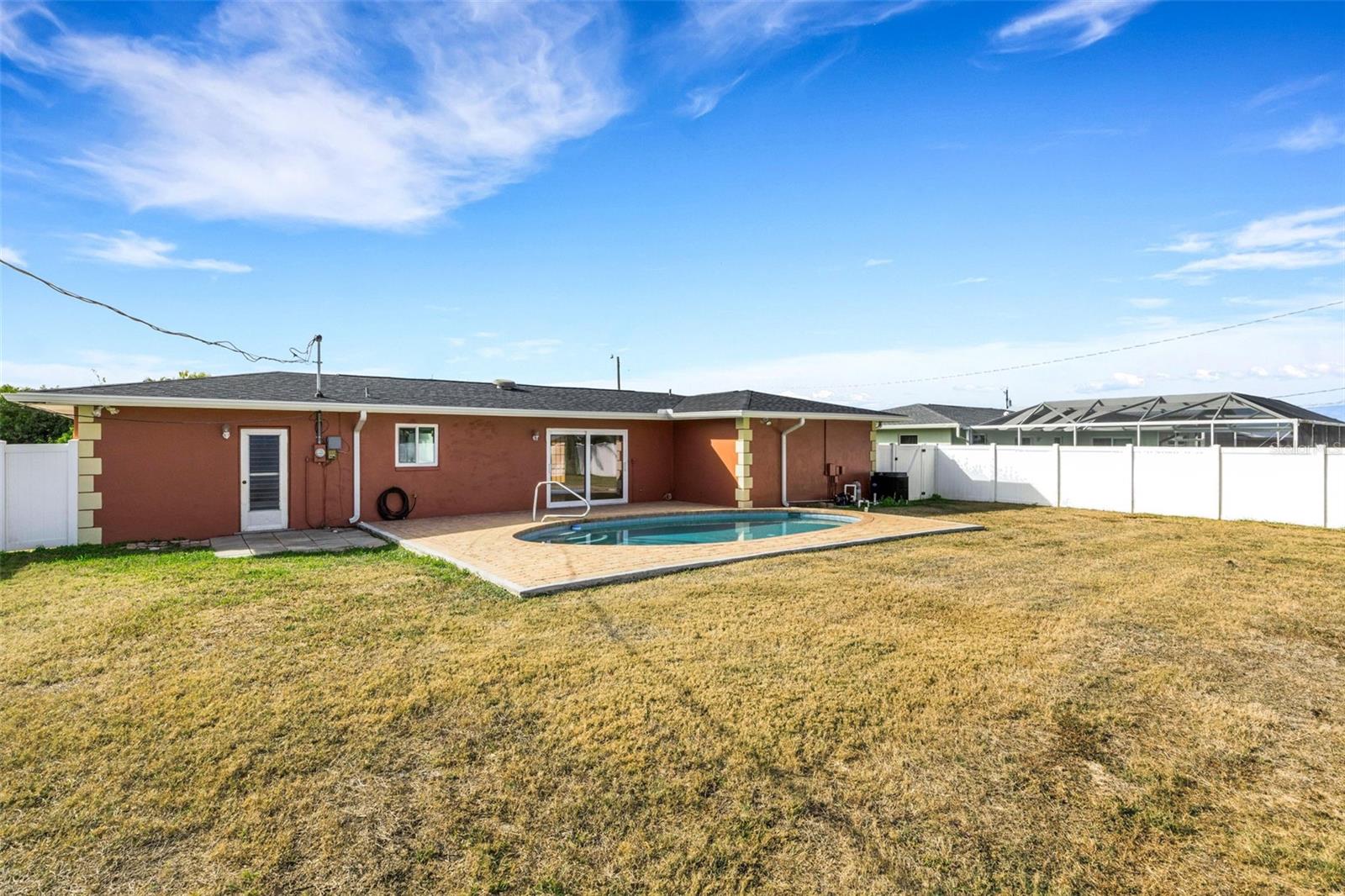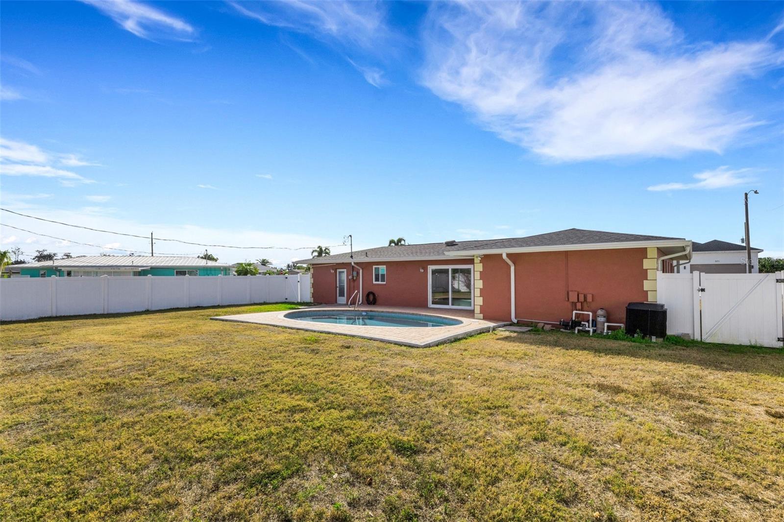 Bem-vindo a esta encantadora casa com piscina 2br/2ba, perto de parques, rampas para barcos e do famoso Port Charlotte Beach Park, tudo num raio de 3 km ou menos. Esta propriedade oferece uma atmosfera relaxante e paz de espírito com um quintal totalmente cercado, novo telhado, novo HVAC, novos armários de cozinha e bancadas de granito, todos combinados com luxuosos eletrodomésticos de aço inoxidável em 2023. Seguido por todas as novas janelas com classificação de impacto de furacão em toda a casa, além de um novo controle deslizante que leva à piscina e um novo aquecedor de água quente, todos instalados recentemente em 2024, com dois banheiros totalmente renovados em 2025'. Venha relaxar e desfrutar desta casa espaçosa e adorável com uma planta aberta com belos pisos de travertino em todas as áreas principais. Esta casa também oferece a conveniência de uma lavanderia interna. logo na saída da cozinha em direção à garagem. Ambos os quartos são muito generosos, com muito espaço no armário e luz natural. O banheiro principal e o banheiro de hóspedes foram totalmente reformados com materiais de primeira linha e não pouparam atenção aos detalhes. No exterior existem muitos lugares de estacionamento com uma entrada extra larga e muitos espaços de entretenimento nas traseiras, com o grande pátio traseiro que rodeia a piscina aquecida, tornando-a num local de encontro perfeito. Localizado a poucos minutos de restaurantes, comércio, escolas e hospitais. Ligue para agendar uma exibição!!!