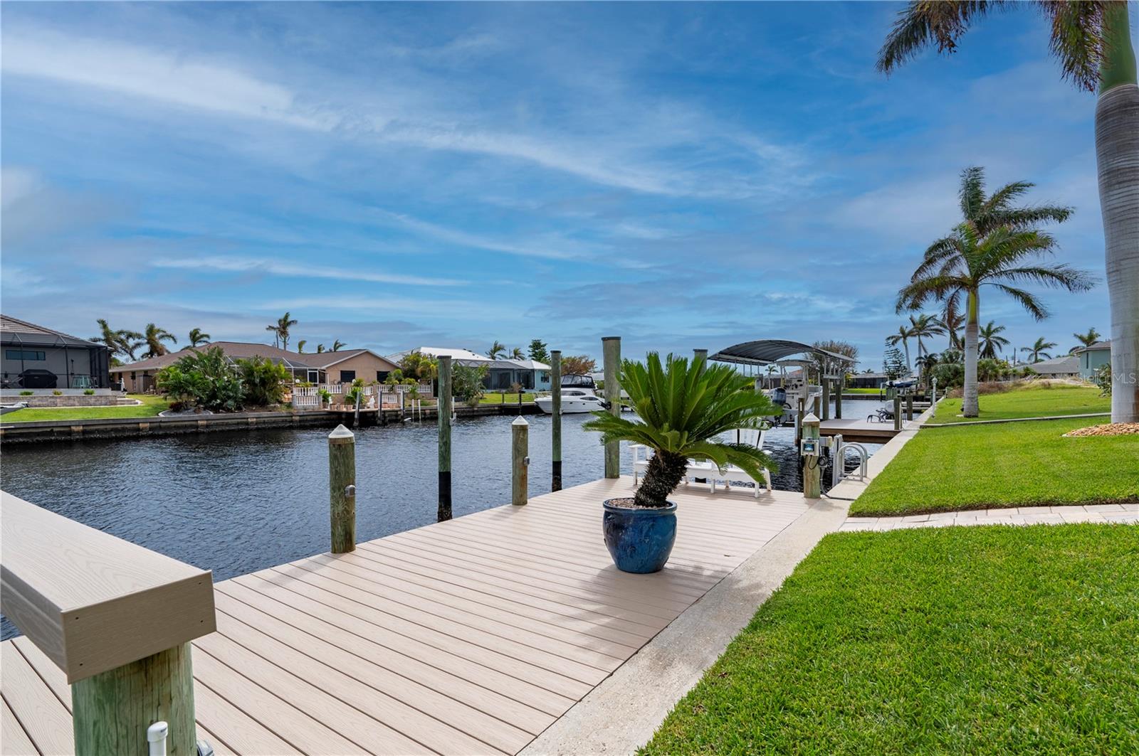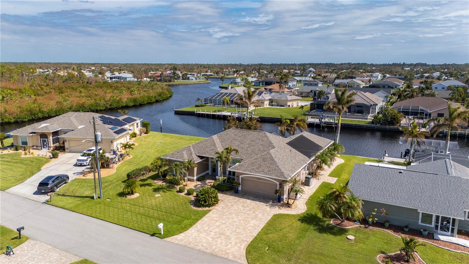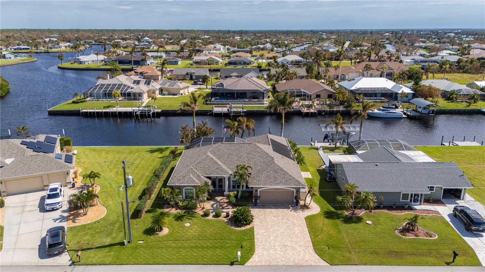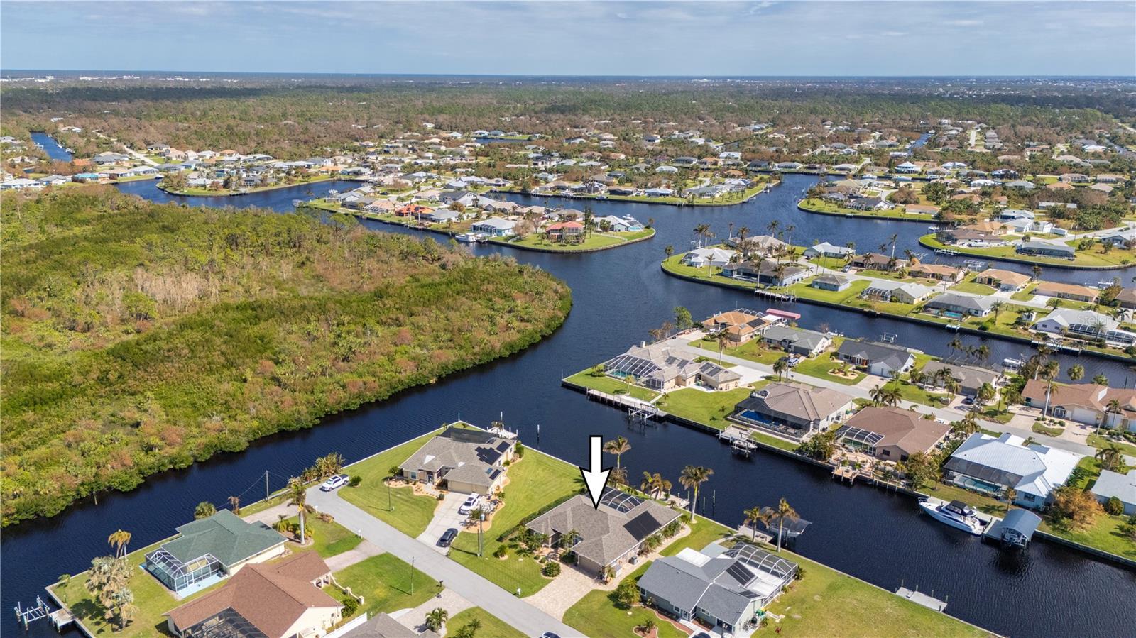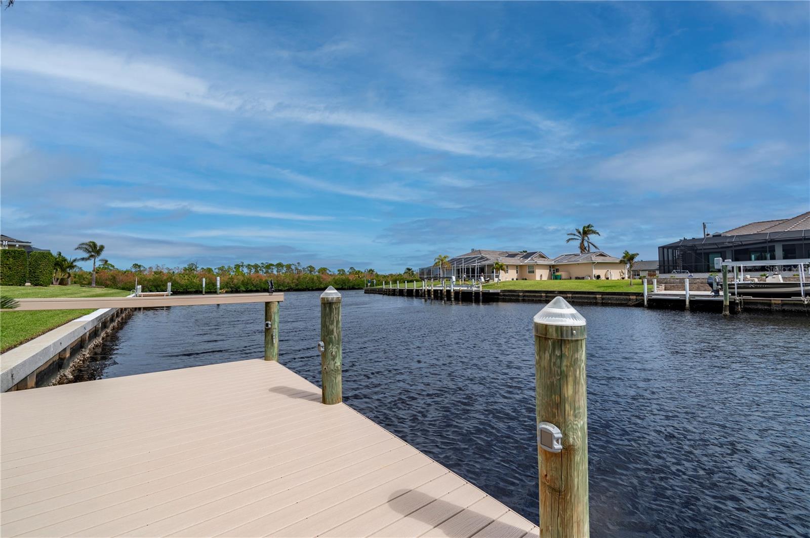 Bem-vindo a esta luxuosa propriedade à beira-mar em Port Charlotte, que oferece 25 metros de frente de água salgada e acesso sem ponte ao rio Myakka, ao porto de Charlotte e ao Golfo do México - perfeito para velejadores ávidos e entusiastas da pesca. Com um telhado novo (2021) e sem restrições de HOA ou escritura, esta casa combina uma vida refinada com total flexibilidade. Ao chegar, a entrada de automóveis pavimentada com tijolos e o paisagismo meticulosamente mantido com iluminação de destaque criam uma primeira impressão convidativa. Passe pelas portas frontais de vidro com chumbo para uma área de estar aberta e iluminada, com tetos altos, sancas de três peças e venezianas personalizadas que adicionam elegância a toda a casa. A cozinha remodelada é o coração da casa, com bancadas de granito, backsplash elegante de azulejos, eletrodomésticos de aço inoxidável e uma grande ilha com balcão para café da manhã - perfeita para hospedagem e vida cotidiana. A espaçosa suíte master se abre diretamente para a varanda, oferecendo um retiro privativo com closets personalizados da Closets by Design e um luxuoso banheiro privativo com pia dupla e um moderno box com chuveiro. Dois quartos adicionais, ambos com closets, compartilham um banheiro de hóspedes com acesso direto à piscina, tornando-o ideal para visitantes ou familiares. O espaço ao ar livre é um verdadeiro oásis. Desfrute da cozinha exterior blindada e relaxe junto à piscina aquecida, equipada com um novo sistema solar e de bomba de calor (2021), tudo isto enquanto aprecia as serenas vistas para o mar. A nova doca composta com fiação e estacas para elevador de barco garante acesso rápido e fácil à água, sem pontes no caminho para o Golfo ou o local ideal para sentar e apreciar o pôr do sol da Flórida. As características adicionais incluem um sistema de sprinklers bem alimentado, descalcificador de água e osmose reversa, e uma espaçosa garagem para 2 carros com armazenamento abundante e nova porta de tela de garagem. Todos localizados a uma curta distância de carro da US 41, lojas, restaurantes, praia e aeroporto de Punta Gorda. Esta casa oferece uma mistura perfeita de luxo, conveniência e estilo de vida à beira-mar. Não perca a oportunidade de experimentar esta propriedade excepcional!