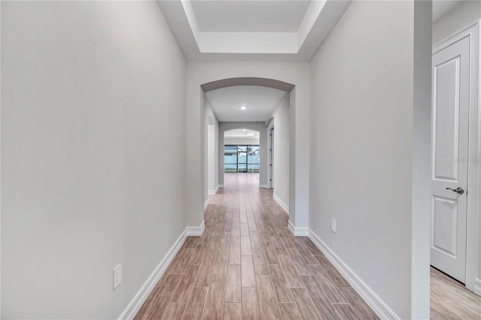 Bem-vindo à comunidade Cove of West Port, onde você desfrutará de uma variedade de comodidades fantásticas, incluindo piscina aquecida em estilo resort, clube, quadras de pickleball, bocha, academia e parque para cães. A comunidade também oferece calçadas em ambos os lados da rua e fácil acesso à I-75, lojas e praias próximas, tornando-a uma localização privilegiada para relaxamento e conveniência. Esta casa totalmente nova de conceito aberto possui 3 quartos, 2,5 banheiros e áreas de estar espaçosas. Tetos elegantes em bandeja melhoram a sensação luminosa e arejada da casa. A cozinha está bem equipada com uma despensa de canto e uma grande ilha com vista para a grande sala e zona de refeições. Uma sala de jantar formal oferece assentos extras para os hóspedes ou pode ser personalizada em uma sala com portas duplas francesas. A suíte principal oferece um retiro privado com closet, pia dupla, banheira de jardim e chuveiro separado. O grande closet se conecta convenientemente à lavanderia. Os dois quartos adicionais e o banheiro completo estão localizados na frente da casa, oferecendo privacidade da suíte principal. Uma ampla varanda coberta é perfeita para viver ao ar livre, e uma banheira de piscina opcional acrescenta conveniência. Esta casa combina o conforto moderno com o melhor da vida comunitária, tornando-a no local ideal para chamar de lar.