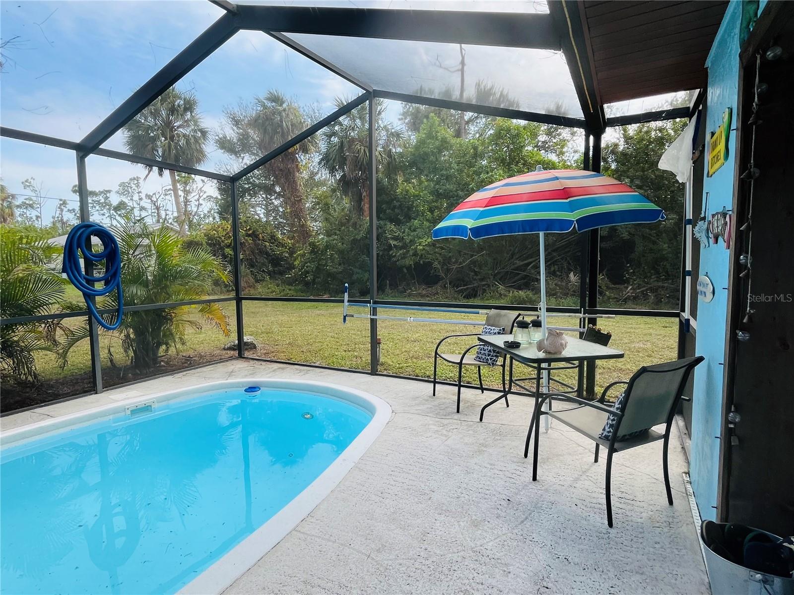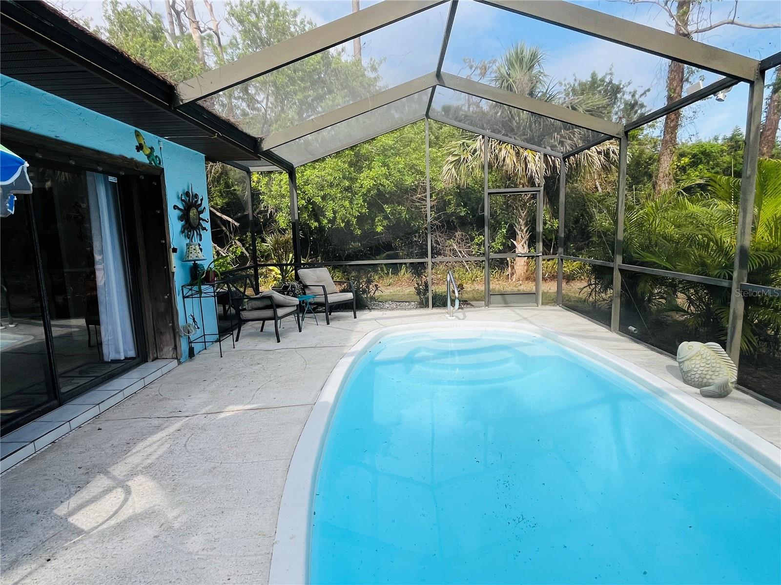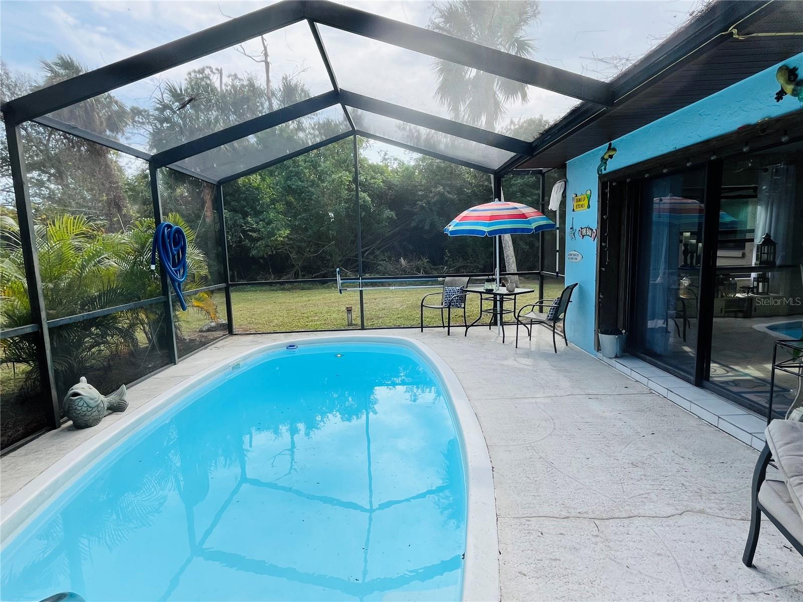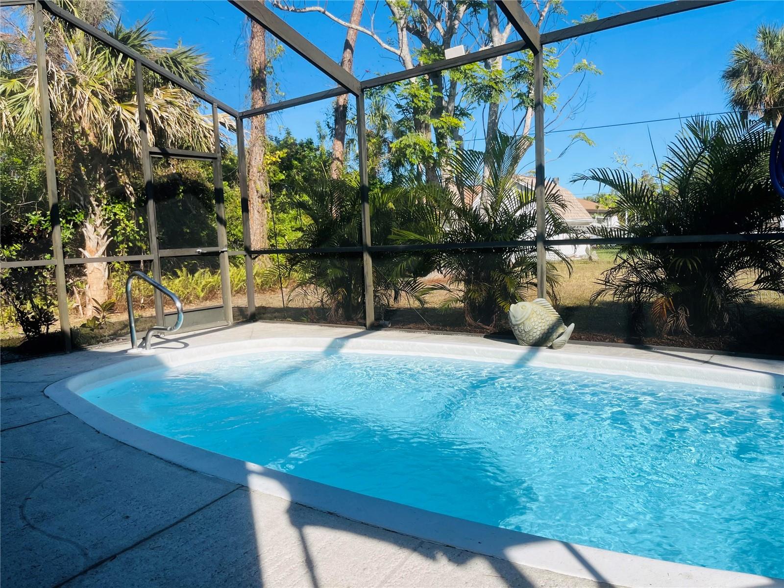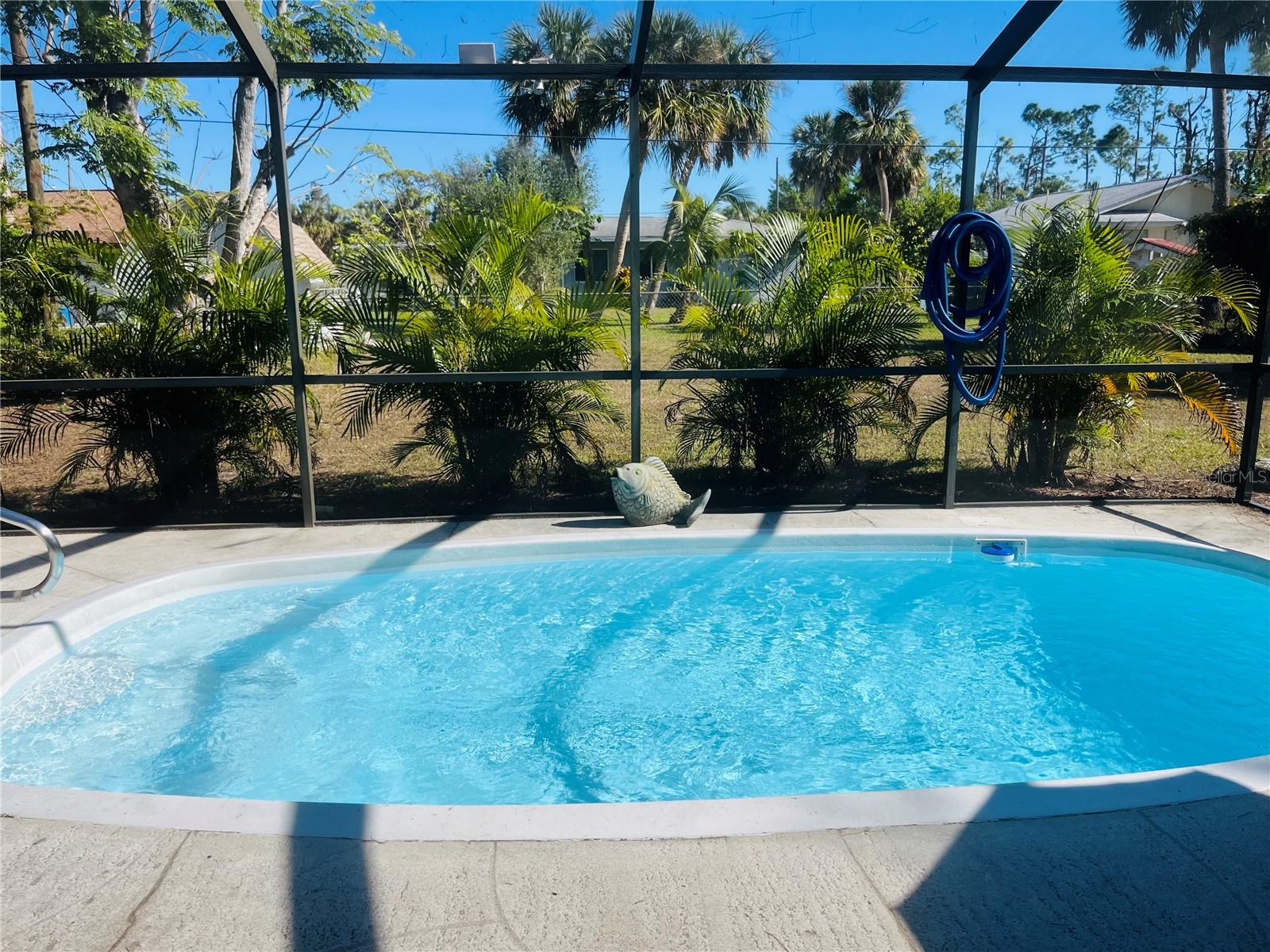 Excelente port Charlotte Localização !! Esta casa da piscina tem uma vida de piso plano aberto. Ao entrar na porta da frente, você verá o fluxo contínuo entre a sala e a cozinha aberta com barra de café da manhã. Aproveite a vista da piscina espumante da sala de jantar, que tem portas de vidro deslizantes que levam à área de Lanai e da piscina enjaulada. A gaiola da piscina foi redigida em 2023. O quarto principal tem um banheiro privativo com um passeio no chuveiro. O segundo quarto é espaçoso e pode acomodar uma cama king size. O banheiro do Hall tem uma vaidade e iluminação atualizadas. A lavanderia interna inclui a lavadora e a secadora e leva à garagem de um carro. Saia de um grande quintal que será ideal para a família, animais de estimação, um jardim e uma área de fogueira. Um pátio externo adicional, com fácil acesso à cozinha, é perfeito para o mestre da grelha. Lotes vagos arborizados de cada lado adicionam privacidade extra. Novo telhado e tinta externa em 2023. Sem zona de inundação! Uma garantia de 1 ano da American Home Shield está incluída! Perto de compras, restaurantes e belas praias da Costa do Golfo.