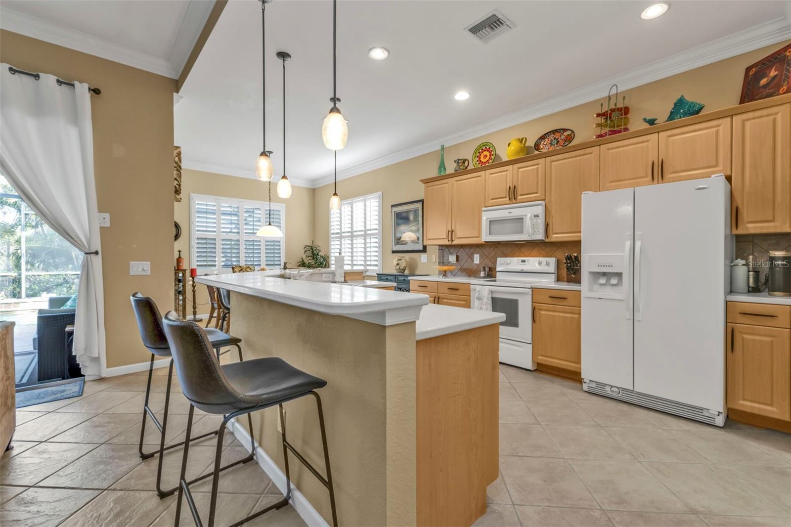 Situado contra uma reserva exuberante e privada, esta casa lindamente projetada de 2 quartos e 2 banheiros com um Den/Office e um novo teto está aninhado na comunidade fechada e privada de Riverwood. Quando você entra, é recebido por uma planta aberta e arejada que flui perfeitamente de um espaço para o outro. No coração da casa está a espaçosa grande sala, com elegantes molduras de dupla coroa, persianas de plantações e uma abundância de luz natural. Grandes portas deslizantes o levam à convidativa área de Lanai e piscina, oferecendo vistas serenas da reserva tranquila além. A cozinha combina função e estilo com bancadas de Corian, ampla iluminação de teto, uma generosa bar de café da manhã com luzes pendentes e uma lanchonete adjacente banhada em luz natural. Um segundo conjunto de controles deslizantes do Dinette fornece acesso direto ao Lanai, tornando sem esforço a vida interna fora. Saia para o seu próprio retiro privado. A piscina aquecida com duas cachoeiras convida o relaxamento, enquanto o Lanai oferece muito espaço para assentos, grelhados e divertidos. Um gabinete rastreado e um deck de piscina pintado de deslizamento e resistente a epóxi aumenta o espaço, e as persianas proporcionam uma tranquilidade adicional. A suíte primária é um verdadeiro santuário, com um teto dividido, acesso privado de Lanai e dois armários. O banheiro privativo possui vaidades duplas, uma banheira de imersão e um chuveiro. Um layout de quartos divididos garante a privacidade dos hóspedes, com o quarto de hóspedes e o banheiro completo próximo localizado no lado oposto da casa. O Den oferece espaço flexível, perfeito para um escritório em casa ou uma área de dormir adicional. Como parte da vibrante comunidade de Riverwood, os moradores desfrutam de comodidades como um campo de golfe par 72, um centro de fitness de última geração, uma piscina em estilo resort, quadras de pickleball e quadras de tênis har-tru. Além da sua porta, aprecie o fácil acesso à pesca de classe mundial, passeios de barco, restaurantes, compras e as praias arenosas do Golfo do México. Convenientemente situado entre Sarasota e Ft. Myers na costa oeste da Flórida. Não perca a chance de fazer com que este retiro impressionante seja sua casa para sempre - escapule sua exibição particular hoje e experimente o melhor da vida na Flórida!