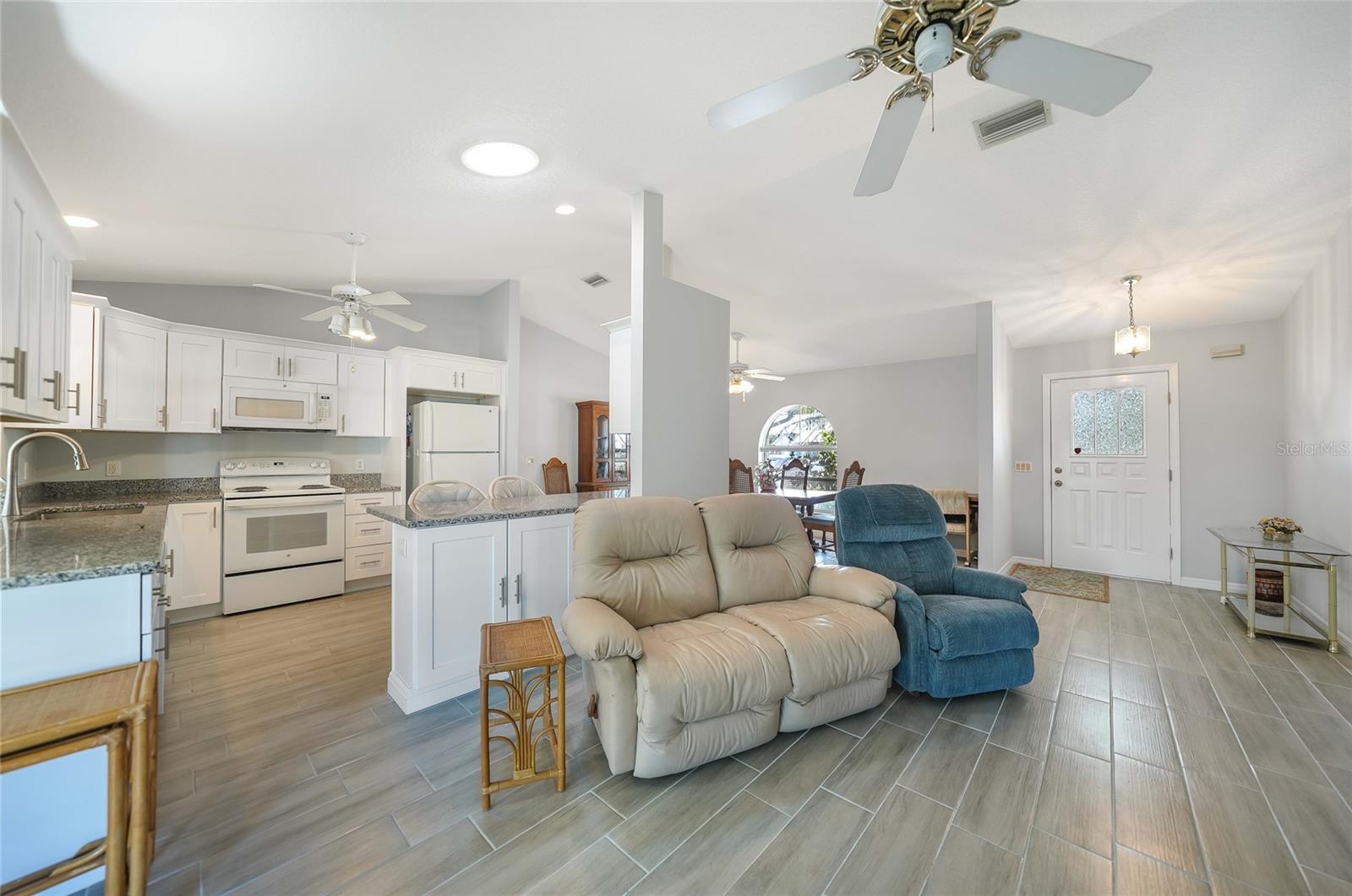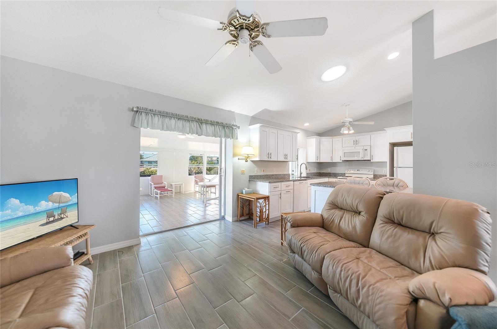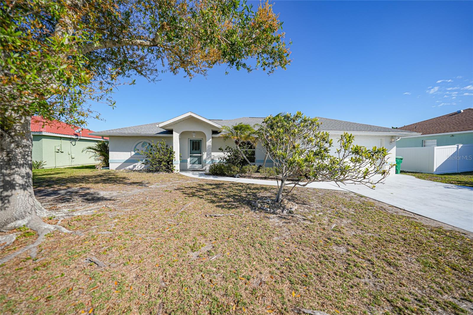 Esta casa encantadora e confortável oferece o espaço perfeito para relaxar, entreter e desfrutar do ambiente tranquilo. O Lanai, de grandes dimensões, é um verdadeiro destaque, proporcionando uma vista serena da hidrovia e habitat adjacente da vida selvagem - ideal para desenrolar ou hospedar convidados. Ao entrar, você encontrará uma espaçosa sala de estar que flui perfeitamente para a área de jantar formal. A suíte master, localizada à esquerda, tem portas de vidro deslizantes que se abrem para o pátio traseiro, trazendo muita luz natural. A cozinha é totalmente abastecida e possui um bar conveniente com bancos, juntamente com uma janela de serviço para o Lanai, perfeita para refeições casuais ou bebendo seu café da manhã enquanto aprecia a vista. Os dois quartos de hóspedes, situados no lado oposto da casa, compartilham um banheiro de hóspedes com acesso ao lanai para maior conveniência. A lavanderia está localizada na garagem, que também oferece amplo espaço para o equipamento de praia e pesca - perfeito para quem ama atividades ao ar livre. Como bônus, os moradores têm acesso a dois clubes, duas piscinas, quadras de tênis e muito mais, tornando esta casa uma escolha excepcional para relaxamento e recreação!