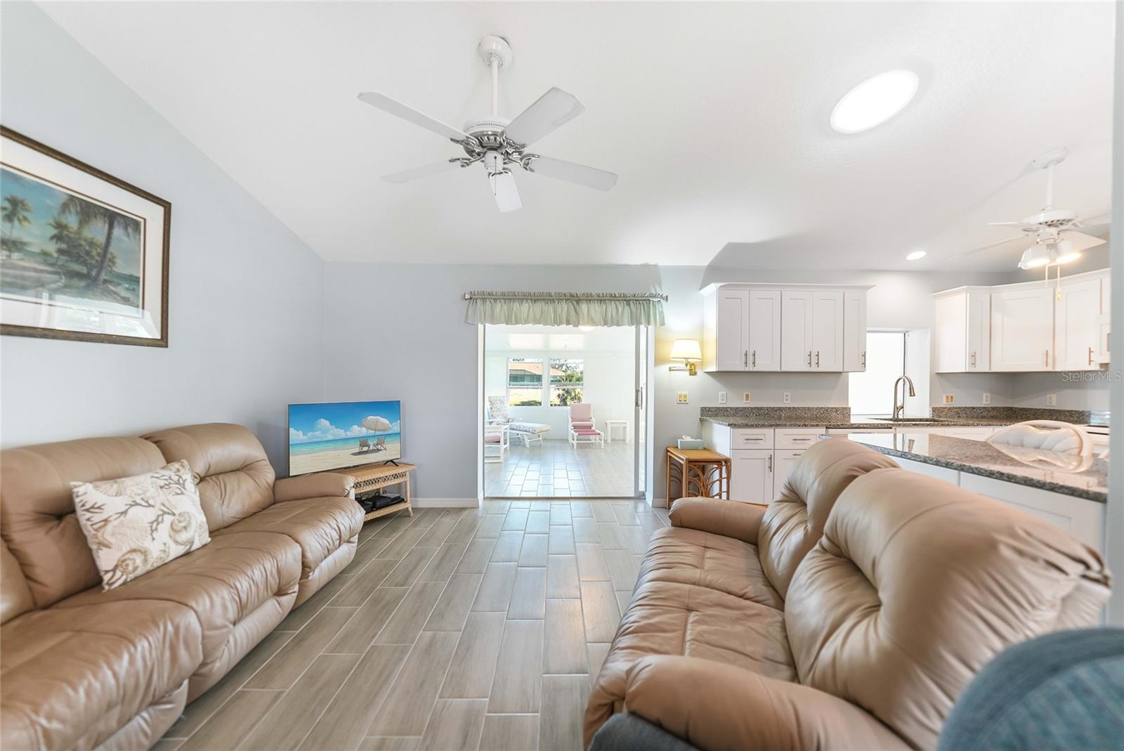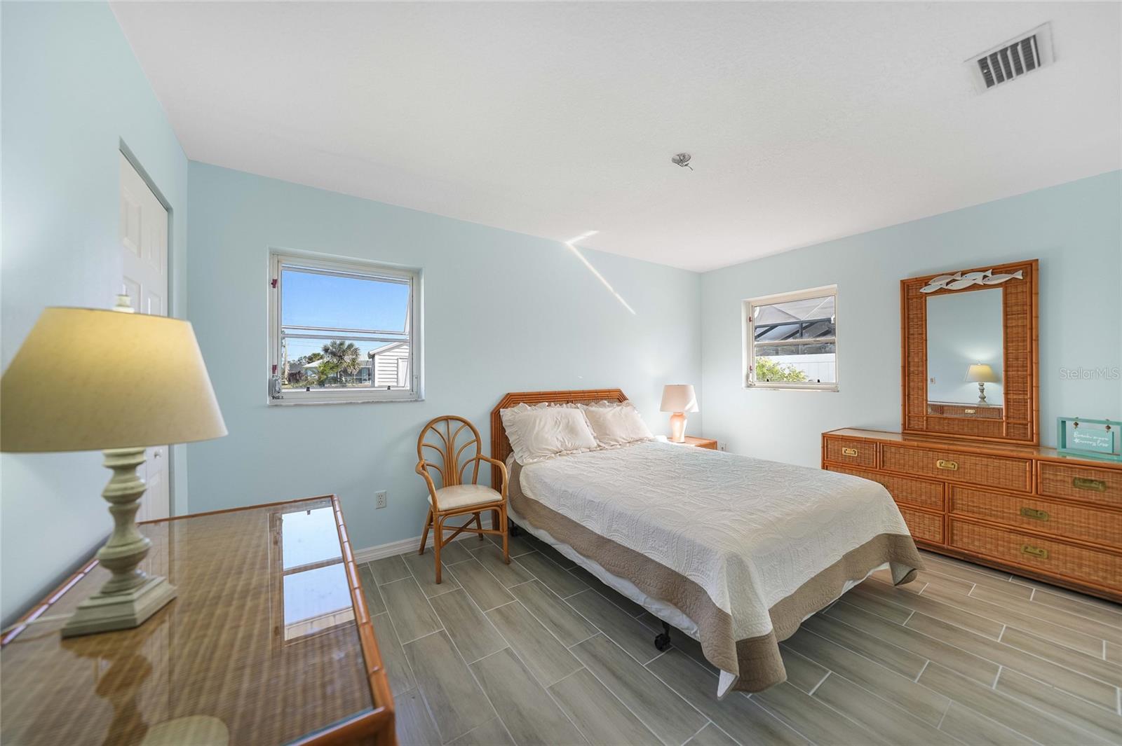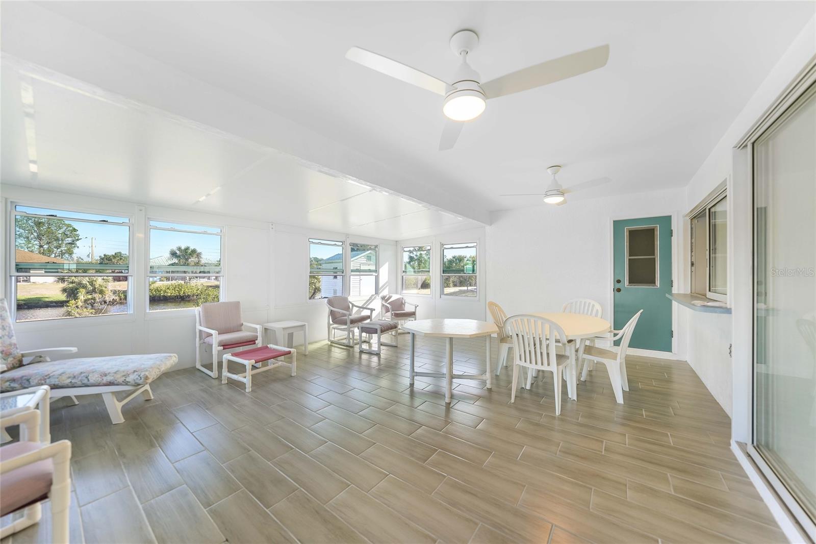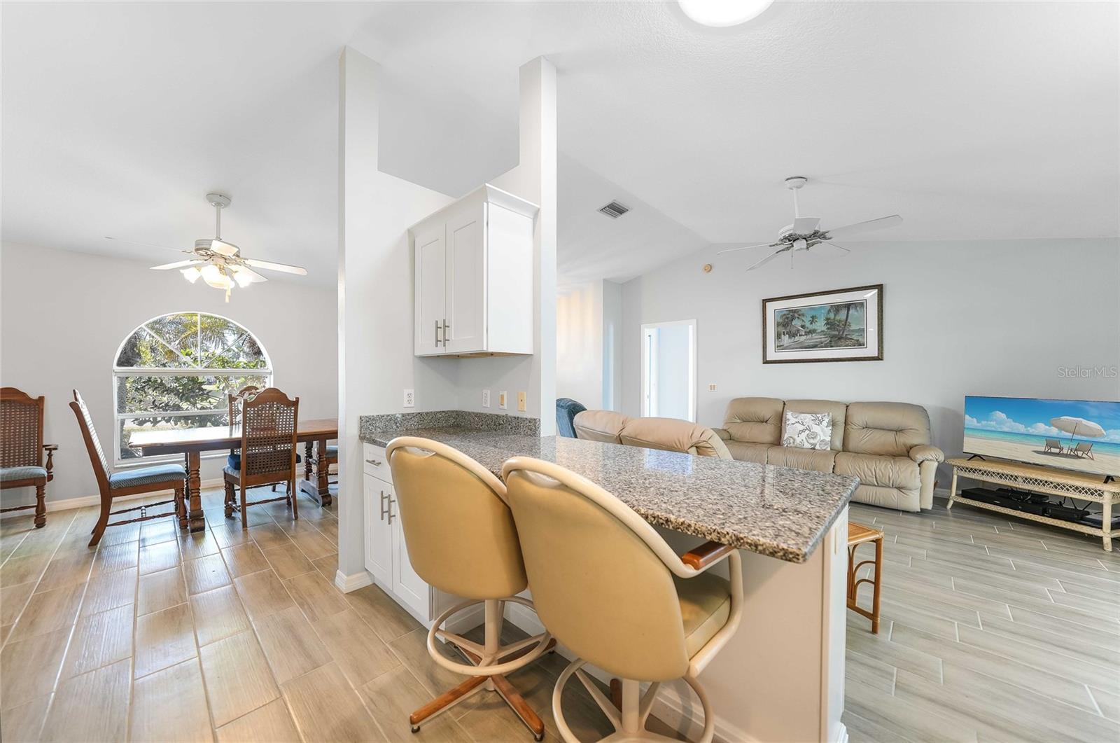 Esta casa encantadora e confortável oferece o espaço perfeito para relaxar, entreter e desfrutar do ambiente tranquilo. O Lanai, de grandes dimensões, é um verdadeiro destaque, proporcionando uma vista serena da hidrovia e habitat adjacente da vida selvagem - ideal para desenrolar ou hospedar convidados. Ao entrar, você encontrará uma espaçosa sala de estar que flui perfeitamente para a área de jantar formal. A suíte master, localizada à esquerda, tem portas de vidro deslizantes que se abrem para o pátio traseiro, trazendo muita luz natural. A cozinha é totalmente abastecida e possui um bar conveniente com bancos, juntamente com uma janela de serviço para o Lanai, perfeita para refeições casuais ou bebendo seu café da manhã enquanto aprecia a vista. Os dois quartos de hóspedes, situados no lado oposto da casa, compartilham um banheiro de hóspedes com acesso ao lanai para maior conveniência. A lavanderia está localizada na garagem, que também oferece amplo espaço para o equipamento de praia e pesca - perfeito para quem ama atividades ao ar livre. Como bônus, os moradores têm acesso a dois clubes, duas piscinas, quadras de tênis e muito mais, tornando esta casa uma escolha excepcional para relaxamento e recreação!