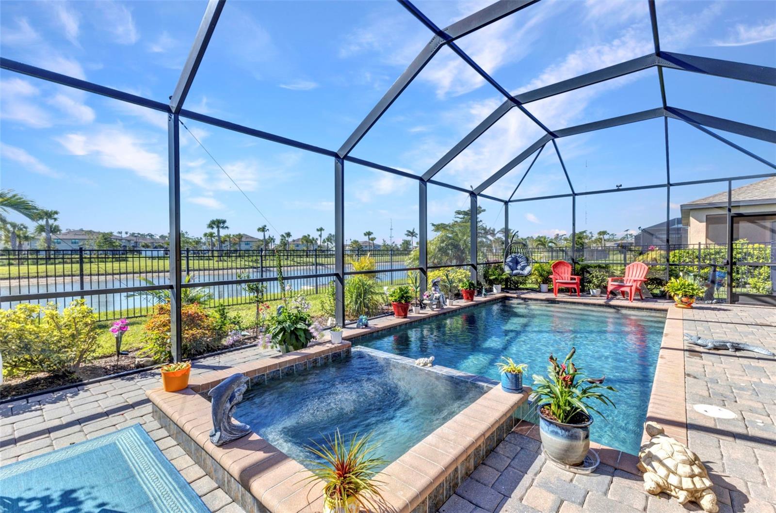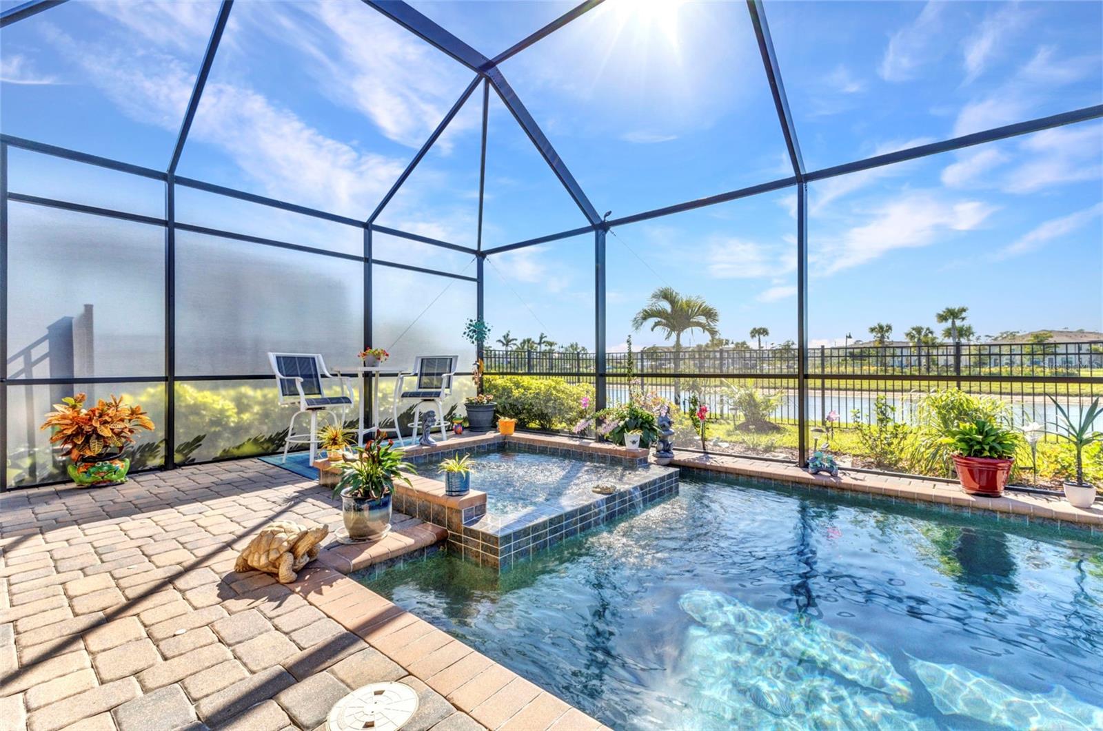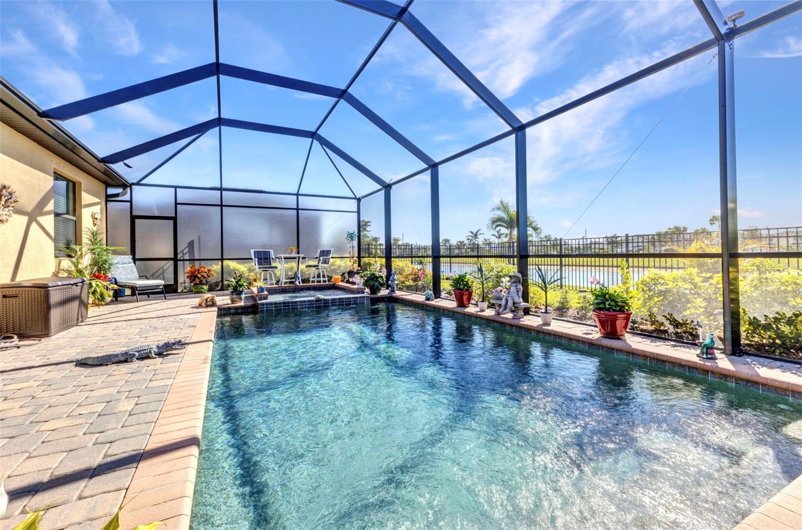 Bem -vindo a esta casa de piscina lindamente mantida, construída em 2021, localizada na altamente desejável comunidade do Porto West. Esta casa de garagem de 4 quartos, 3 banheiros e 2 carros oferece 2.027 pés quadrados de espaço de estar com uma vista serena do lago. Lá dentro, você encontrará um espaçoso layout de conceito aberto com tetos de volume, uma cozinha gourmet com bancadas em granito, uma grande ilha, backsplash de pedra, utensílios de aço inoxidável, iluminação embutida e pendente, uma despensa e uma pia de base única. O jantar e a área de estar fluem perfeitamente juntos, com pisos e controles deslizantes que levam ao lanai e à piscina. As áreas de cozinha, jantar e estar foram pintadas na hora. A suíte master possui pisos laminados, dois armários e um banho de suíte com pias duplas, um chuveiro e um armário de linho. Um segundo quarto possui piso laminado e um banho privativo com uma combinação de banheira/chuveiro, enquanto os quartos três e quatro apresentam carpete e armários embutidos. Você encontrará o terceiro banheiro entre o quarto 3 e 4. Saia do seu retiro privado no quintal, onde um lanai pizecido fornece o cenário perfeito para relaxamento e entretenimento ao ar livre. A piscina aquecida e o spa o convidam a relaxar o ano todo, enquanto o amplo gabinete rastreado mantém o espaço confortável e agradável. Esteja você hospedando um churrasco, absorvendo o sol da Flórida ou simplesmente apreciando as vistas tranquilas do lago, este oásis ao ar livre foi projetado para um prazer final. O quintal totalmente cercado acrescenta privacidade e segurança - perfeitas para animais de estimação e reuniões de família! Recursos adicionais incluem uma garagem e passarelas percorridas, persianas de furacões, água pública e esgoto, uma lavanderia com lavadora e secadora, um sistema de campainhas de anel com câmeras de segurança e um protetor de surto de casa inteira. Convenientemente localizado perto de praias, compras, restaurantes, campos de golfe e pesca de classe mundial. Esta casa pronta para baixo é uma pessoa imperdível-schedule sua exibição particular hoje!