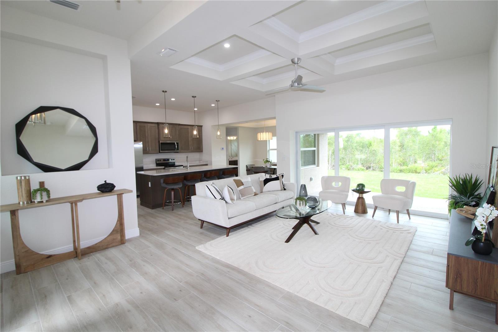 Novo casa, mudança. O modelo Turnberry DX do premiado Harbor Home Builders. Esta casa de garagem com três banheiros, de dois banheiros, de dois banheiros, possui uma entrada de 12 pés, tetos de capitalização, janelas de impacto, piso de tábua de porcelana, armários de madeira maciça com portas e gavetas de close macio, bancadas de quartzo e iluminação de designers e ventiladores. O quarto principal possui um teto de bandeja com iluminação e janela de popa, closet, um armário adicional. O banheiro principal inclui vaidades duplas e chuveiro de azulejos. O Lanai de 27 por 9 pés oferece uma parede de entretenimento com lojas e provisões para a cozinha ao ar livre. Agende uma consulta hoje para ver esta casa deslumbrante
