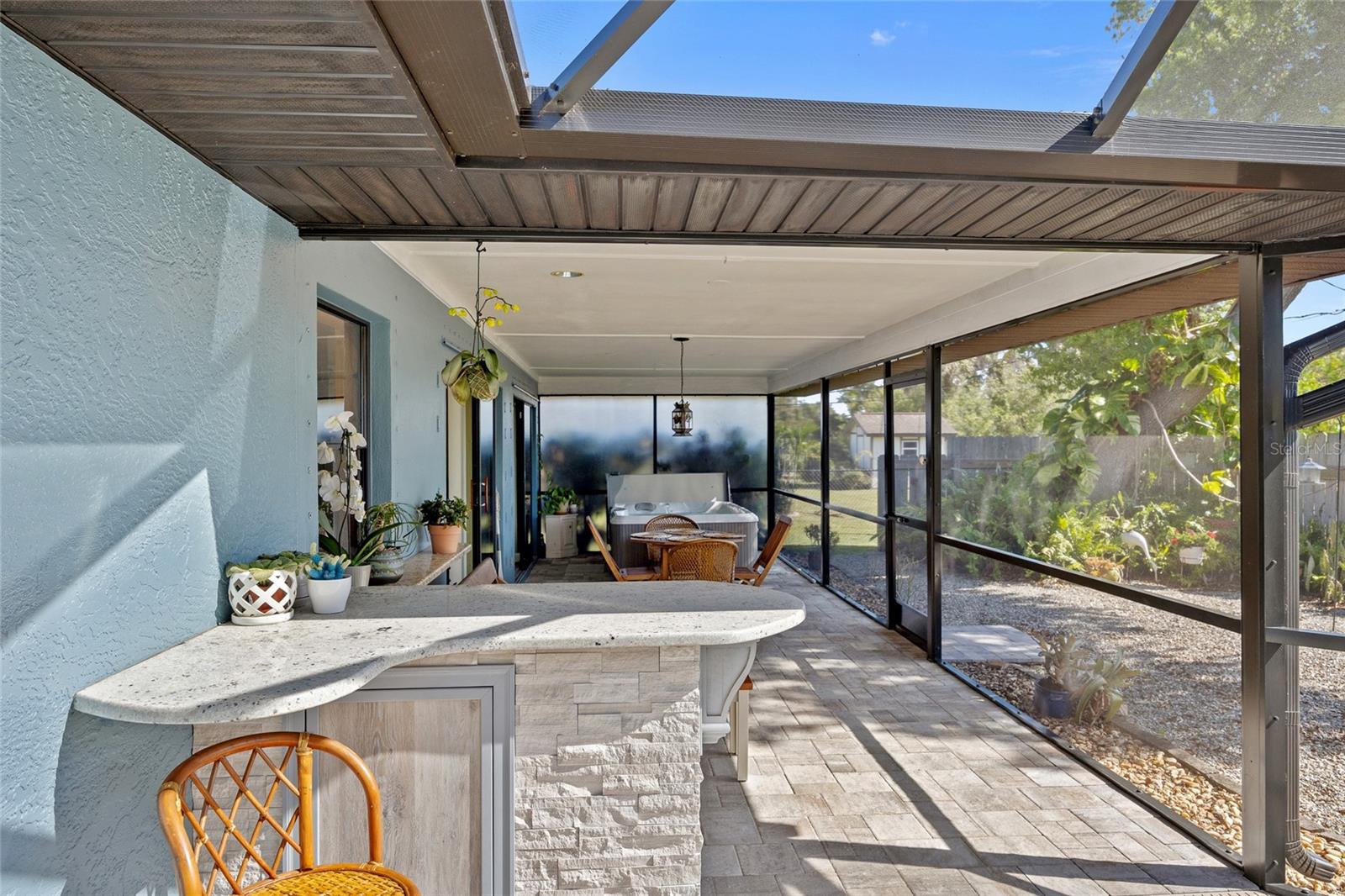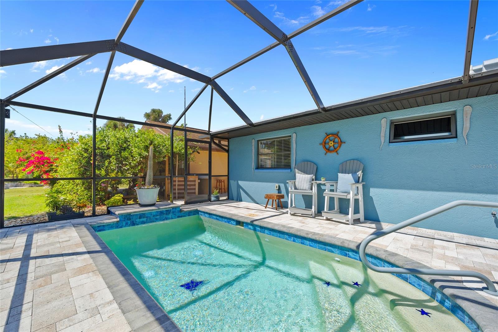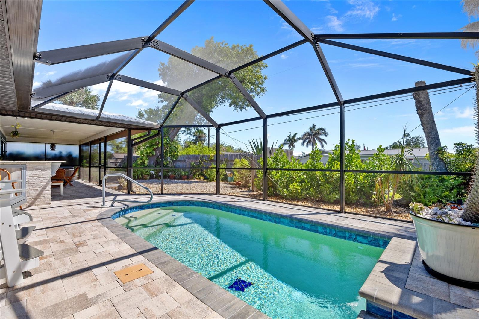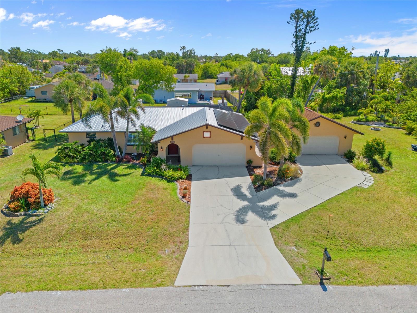 Ótima localização! Lote duplo! Excepcional 2 quartos, 2 banheiros, piscina de garagem de 2 carros, mais garagem destacada de 2 carros com 3 espaços e garagem com espaço para estacionar 6 veículos! A garagem condicionada fornece um total de 1.733 sf sob o ar. Os painéis solares de 7,6kW no telhado proporcionam redução de 50% nos custos elétricos e são pagos pelo vendedor. Verdadeiramente pronto para se mover e possui tetos altos, decoração neutra, sala de estar formal com persianas, sala de jantar com acesso deslizante a Lanai, cozinha espaçosa com balcões de granito, armários de madeira maciça, passe conveniente através da janela para Lanai e barra de café da manhã. A suíte primária oferece controle deslizante para Lanai e banho atualizado privado. Grande segundo quarto e banheiro completo separado. A área de entretenimento ao ar livre possui lanai coberto com banheira de hidromassagem, piscina de tela aquecida e quintal privado com um cenário parecido com o parque. O paisagismo maduro inclui o Heritage Oak Tree de 80 anos, 20 palmeiras de tronco cinza, lindas flores, incluindo buganvilhas e jasmim. A garagem anexada oferece 420 pés quadrados de espaço de bônus com ar-condicionado perfeito para escritório ou mancave, dando 1.733 sf sob o ar. A garagem destacada possui 725 sf de área de oficina com porta rolante mais uma garagem de 10'x20 'para estacionamento ou armazenamento extra. RV, barco ou espaço disponível ao longo da oficina lateral. Rua privada tranquila, com todas as linhas de energia subterrâneas em breve. Esta casa oferece tudo! Ótima localização, perto do Port Charlotte Beach Park, do Sunseeker Resort e do centro histórico Punta Gorda, você terá acesso fácil a refeições requintadas, compras, belos parques, premiados pesca e passeios de barco, eventos comunitários e entretenimento. Além disso, você está a uma curta distância de carro das praias da Costa do Golfo. Não perca esta oportunidade incrível! Agende sua exibição particular hoje!