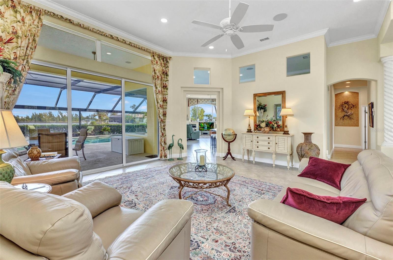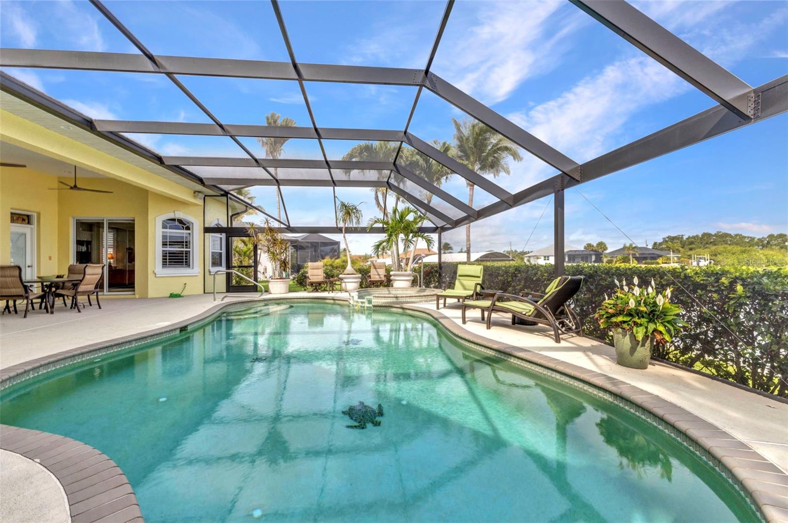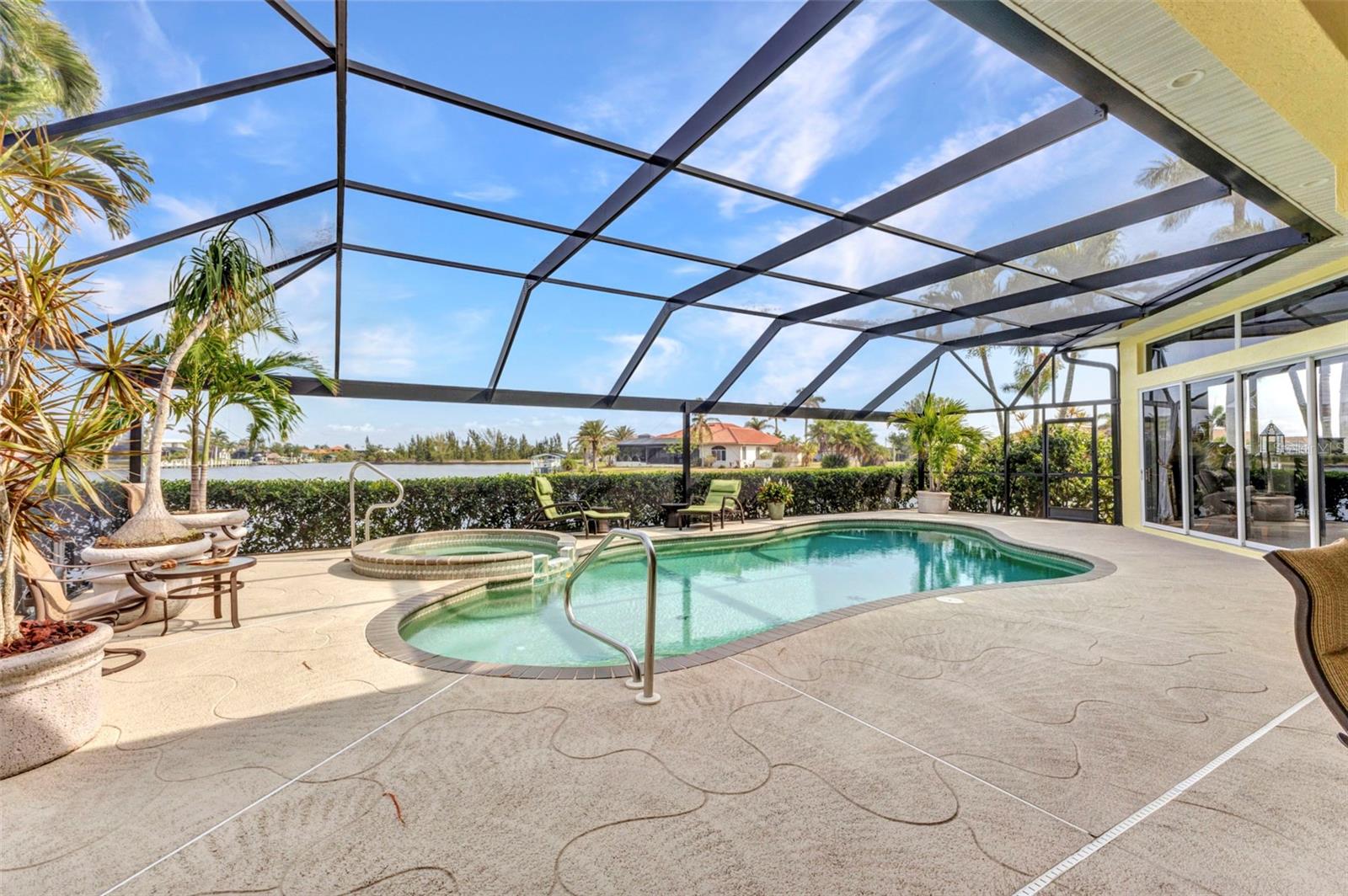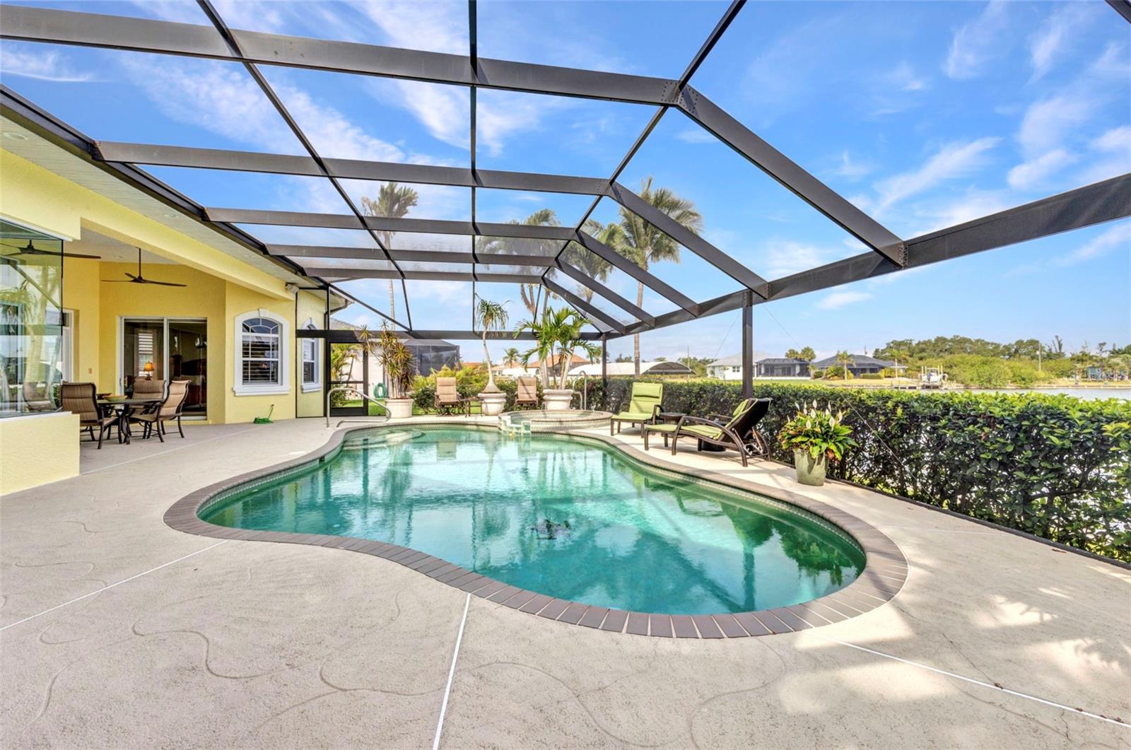 Escetacular é a única maneira de descrever a visão dos dois amplos canais que se cruzam por trás desta linda casa, formando uma enorme configuração do tipo lagoa. Aproveite os muitos guindastes de areia, osprey, garças, garças, patos etc. desfrutando da água também. Gosta de pescar? O canal está cheio de snook ou cantarilho no seu quintal! Esta propriedade personalizada era uma casa de construtores localizada em um lote duplo com 219 pés de fachada de água salgada com paredes do mar. Duas docas para suas necessidades de barco e um elevador de barco de 10.000 libras. O pátio paisagístico profissionalmente tem muitas palmas maiores bonitas, uma palmeira de Sylvester, palmeiras de coco, bougainvillea, hibisco e muito mais! Acesso rápido ao porto de Myakka River e Charlotte. A entrada da porta dupla abre você para uma planta baixa e aberta, com ótima luz natural e tetos de 12 pés. A cozinha foi totalmente remodelada e vem com bancadas de quartzo. O vidro de aquário na lanchonete oferece uma excelente vista da piscina e da hidrovia. A triagem da janela da imagem na gaiola da piscina adiciona à sua visão! O quarto principal tem um enorme closet W California prateleiras para um amplo armazenamento. Moldagem da coroa nas persianas do teto e da Bahama nas janelas são apenas alguns dos muitos toques especiais nesta casa. Há também um gerador de generac 22 kW e um tanque de 500 gal, se necessário! O teto de ladrilhos do barril foi substituído em 2023. O aquecedor de água e a bomba de piscina também são novos. Os retoques finais nesta linda casa são numerosos para mencionar aqui, mas devem ser vistos! Não demore, ligue hoje!
