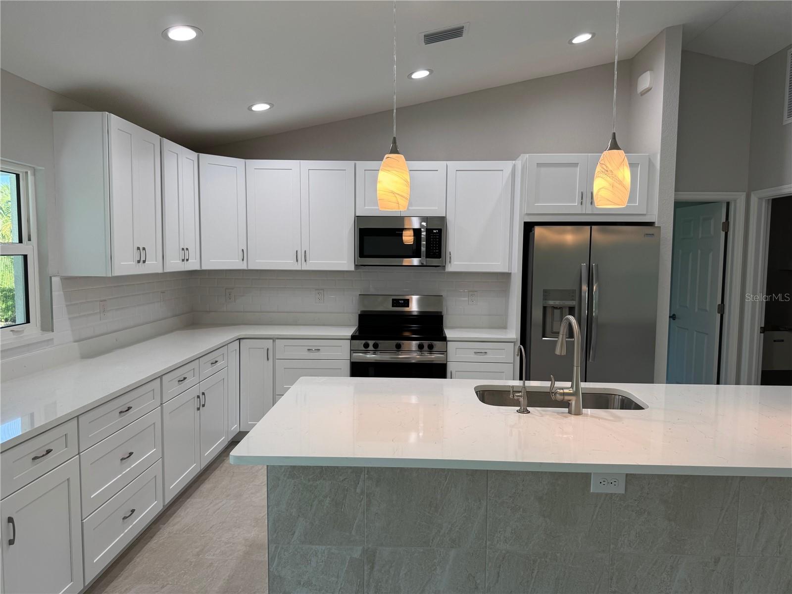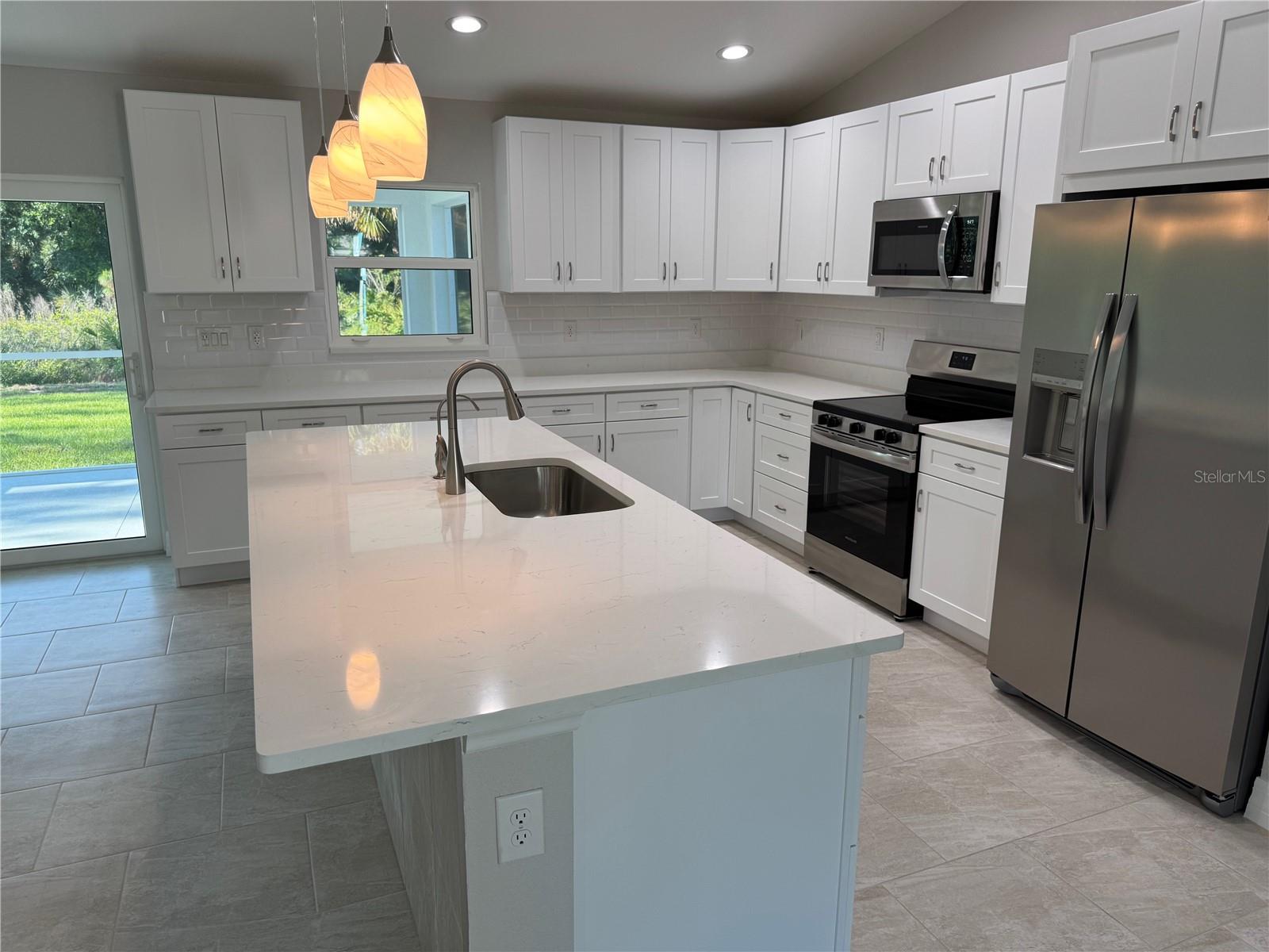Uma ou mais fotos foram praticamente encenadas. Beautiful New Construction Home Available Now! Tudo está incluído e tudo é atualizado! Começando com uma planta baixa e dividida com tetos abobadados, esta casa tem impacto de furacão, isolados, janelas com baixo E, armários de sobreposição completos, utensílios de cozinha em aço inoxidável, bancadas de pedra de qualidade e soleiras de janelas, ladrilhos de porcelana em ladrilhos, telhas de 3 anos, sistema de aspersão de 3 anos, lanai e fastes de falha de marca. Esta casa foi construída para manter baixos os custos de seguro, manutenção e utilidade. O credor preferido está oferecendo até US $ 1.500 para assistência ao custo de fechamento! Venha ver esta nova casa hoje