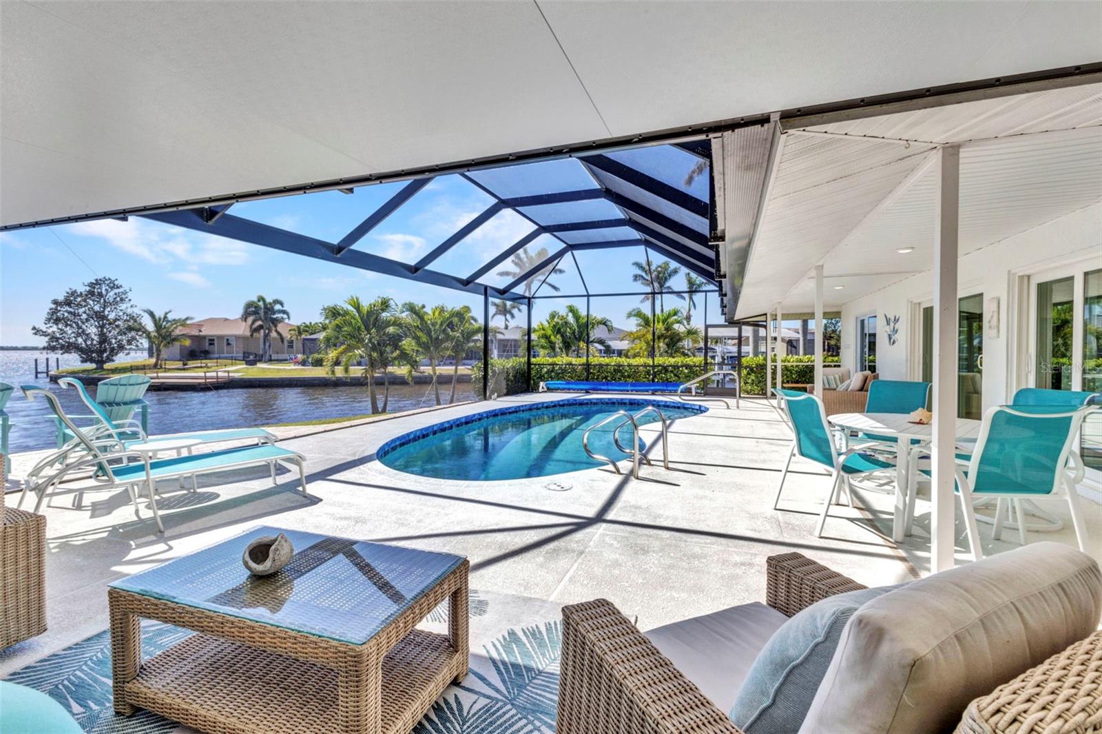 Vistas para o rio Myakka de cair o queixo deste lote de grandes dimensões em Gulf Cove! Posicionado perfeitamente em um lote de ponta de grandes dimensões com 160 pés de paredão de concreto, este elevador de barco de 2 quartos e 2 banheiros remodelados com um elevador de barco de 12.000 libras oferece algumas das vistas mais espetaculares e desonestas do rio Myakka que você encontrará em Gulf Cove. Seja reflexões nascer do sol ou pôr do sol brilhante, o pano de fundo é pura magia. Localizado no final de um beco sem saída tranquilo, esta casa brilhante e bonita foi reformada há apenas dois anos com acabamentos atemporais e atualizações atenciosas por toda parte. The open split floor plan features elegant 28" porcelain tile flooring, a soft white palette, and a seamless flow between indoor and outdoor living spaces. The kitchen is a showpiece, designed with both beauty and functionality in mind. You'll find a waterfall island with storage, sleek stone countertops, soft-close solid wood cabinetry with pull-out drawers, top-of-the-line stainless appliances, a farmhouse sink and a pantry with additional pull-outs for easy organization. Just off A área de jantar, uma estação de bebida embutida com uma geladeira de vinho e armários combinados, adiciona um toque perfeito para entregar As portas deslizantes do espaço principal levam ao amplo Lanai, onde uma piscina aquecida, um deck recentemente ressurgido e uma tela panorâmica criam um espaço no estilo resort para relaxar e apreciar essas vistas incríveis. Esteja você saboreando seu café da manhã na brisa suave ou desfrutando de um copo de vinho enquanto o céu gira ouro ao pôr do sol, o Lanai se torna seu assento na primeira fila da beleza e tranquilidade da vida à beira-mar. Logo além do gabinete de tela, uma passarela de pavimentadora e um deck Trex o guiam para o seu elevador de barco coberto de 12.000 libras, pronto para dias espontâneos de barco e cruzeiros ao pôr do sol. O Lush Tropical Landscaping envolve a casa em beleza e privacidade, fazendo com que pareça um verdadeiro retiro. Destaques adicionais incluem persianas e persianas personalizadas, janelas e portas resistentes a impactos, uma garagem de dois carros de grandes dimensões com uma área de lavanderia, pia de utilidade e uma tela retrátil para deixar entrar e ar fresco. Esta casa permaneceu seca durante tempestades recentes e está pronta para que novas lembranças sejam feitas. Os móveis são negociáveis fora do contrato, facilitando ainda mais a sua mudança. Convenientemente localizado perto de compras, restaurantes, entretenimento e algumas das praias mais bonitas do sudoeste da Flórida, esta casa é perfeita para quem procura luxo, sofisticação e vistas deslumbrantes. Não perca a oportunidade de possuir esta peça requintada do paraíso!