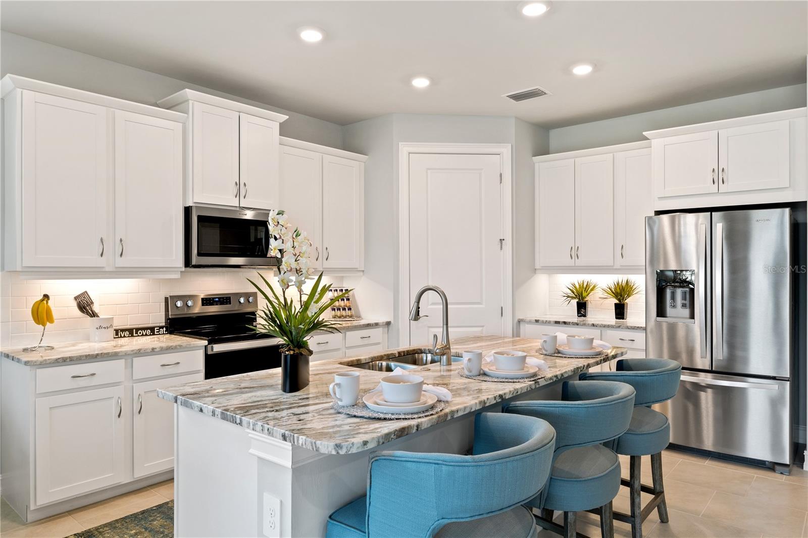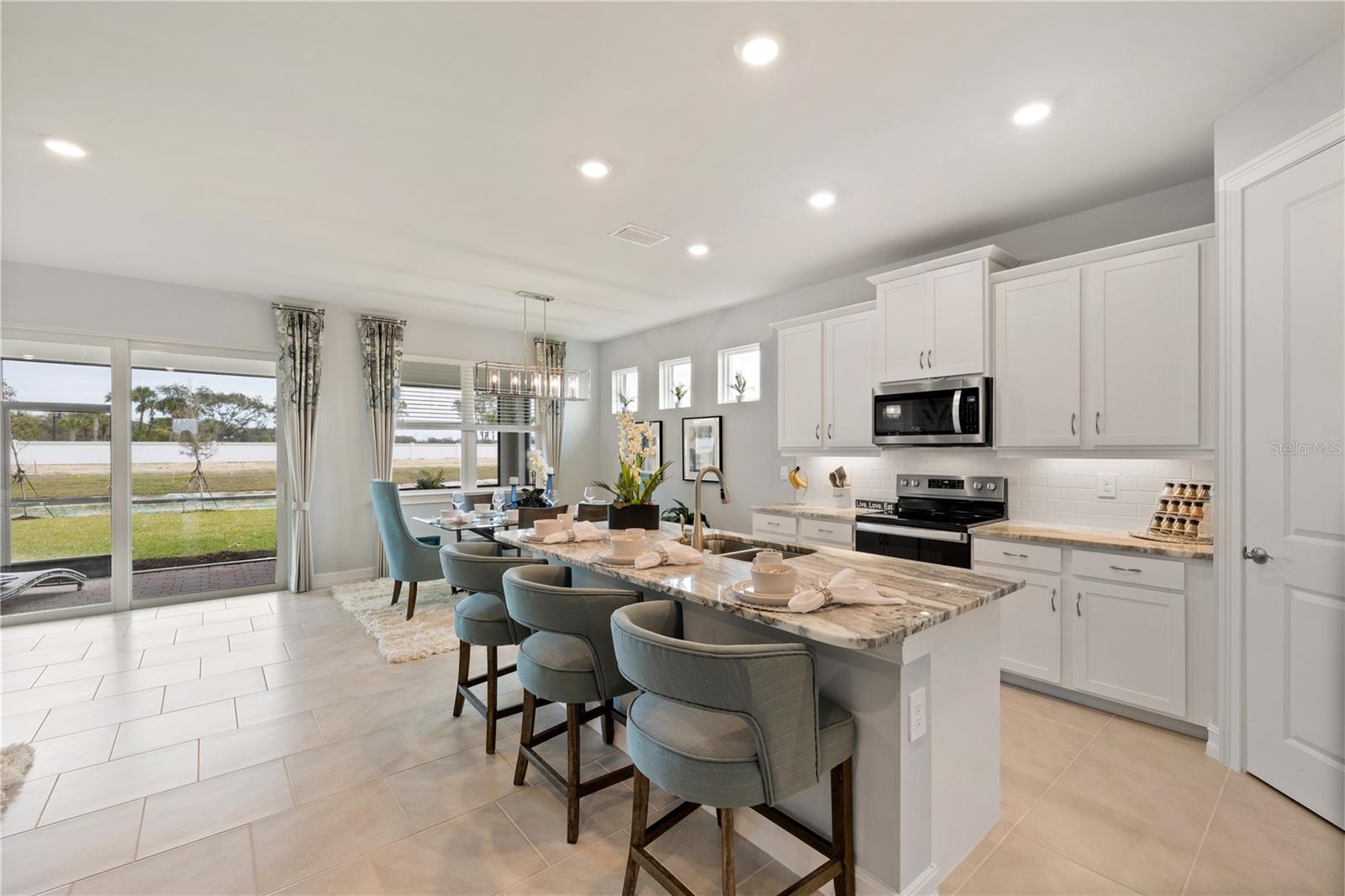 Mover- pronto! O modelo Delray (modelo real para venda). Esta casa possui um design de conceito aberto e altamente desejado. Uma porta de vidro de deslizamento duplo e uma infinidade de janelas enchem a cozinha, a grande sala e a área de jantar com o sol da Flórida. A cozinha está idealmente situada no coração da casa e é modernamente projetada com uma quantidade ideal de armários e espaço de contador e apresenta uma despensa. Um lanai de tamanho generoso, pavimentado e coberto com vista para um lote de água privado. Localizada na parte de trás da casa, a suíte proprietária bem equipada se encaixa confortavelmente em um conjunto de cama king-size e apresenta dois armários de entrada, vaidade dupla, um chuveiro desejável e um armário de água privado. Em frente à suíte do proprietário, na frente da casa, dois quartos de hóspedes compartilham um banheiro de hóspedes. Esta casa também possui uma sala flexível versátil com um armário que pode ser utilizado como um escritório, Den ou mesmo um quarto quarto. Janelas de furacão e recursos de casa inteligente Complete esta casa.