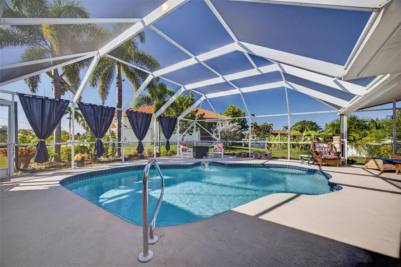 LOTE DE CANTO! ENCANTADORA CASA DE 2 QUARTOS, 2 BANHEIROS, GARAGEM PARA 1 CARRO, PISCINA oferece a combinação perfeita de conforto e conveniência. A poucos minutos do Complexo Port Charlotte Beach e do lançamento do barco com acesso às águas abertas do Porto de Charlotte. Apelação incrível do meio-fio com paisagismo maduro e uma grande varanda frontal sombreada. Um telhado mais recente equipado com painéis solares aumenta a eficiência energética, enquanto o interior bem cuidado apresenta um conceito aberto ideal para receber convidados. Cozinha espaçosa com eletrodomésticos de aço inoxidável, uma grande ilha com assentos de bar, amplos armários e luminárias atualizadas. O piso de cerâmica flui por toda a casa para facilitar a manutenção. Fora da cozinha e da área de jantar, o quarto Florida oferece vistas serenas do mar da piscina e da varanda. A suíte principal oferece acesso deslizante à piscina e à área da varanda, completa com um banheiro privativo atualizado com pias duplas e box amplo com chuveiro. Do outro lado do corredor, o quarto de hóspedes e o banheiro garantem conforto e estilo para familiares ou visitantes. Saia para o seu retiro privado. A área externa possui uma ampla varanda, metade dela coberta com sombra, proporcionando privacidade e tranquilidade ao redor da piscina. Os destaques adicionais incluem persianas contra furacões, um pátio lateral perfeito para estacionar um trailer ou barco, um parque no final da rua e uma lancha a menos de 800 metros do parque. Esta casa é o santuário ideal para quem procura um estilo de vida descontraído e SWFL. Excelente localização a poucos minutos de Charlotte Harbor e Sun Seeker Resort, restaurante Murdock e distrito comercial, parques, golfe, passeios de barco, pesca e centro histórico de Punta Gorda com restaurantes finos, artes, eventos comunitários e entretenimento. Não perca esta oportunidade! Ligue para agendar sua exibição privada hoje!