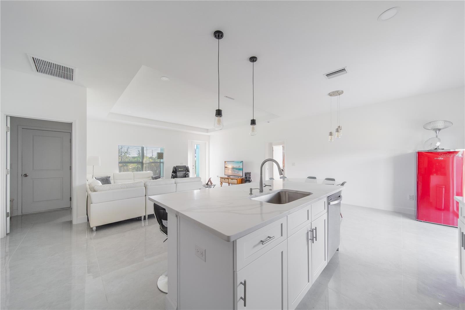 Bem-vindo à sua nova casa personalizada! Esta residência deslumbrante combina elegância moderna com design cuidadoso, oferecendo 3 quartos, 2,5 banheiros e uma espaçosa garagem para 3 carros. Entre e aproveite os tetos arejados de 10 pés na sala de estar e os tetos de 9'4" em todo o resto da casa, criando uma sensação clara e aberta. O piso de porcelanato premium flui perfeitamente por toda a casa, incluindo a varanda, varanda e banheiros, onde você também encontrará chuveiros lindamente revestidos. A cozinha e os banheiros são adornados com bancadas de quartzo premium, complementadas por eletrodomésticos de aço inoxidável Samsung, enquanto ambos os banheiros completos possuem banheiros privativos e a banheira Jack & Jill garante conforto e conveniência para a família ou convidados. Esta casa foi construída para durabilidade e tranquilidade com janelas e portas de impacto com moldura de alumínio, uma calçada de pavimentação e construção de alta elevação para maior proteção contra inundações. Destaques adicionais incluem uma tomada elétrica para um gerador na garagem, detalhes de design personalizados e uma janela na garagem para luz natural. varanda e varanda que oferecem um espaço relaxante para relaxar enquanto desfruta da segurança e qualidade desta propriedade excepcional Localizada na altamente desejável comunidade de South Gulf Cove, os residentes desfrutam de mais de 55 milhas de canais navegáveis com acesso direto ao porto de Charlotte e ao Golfo do México, uma rampa comunitária para barcos, parques de bairro, trilhas para caminhada e ciclismo e espaços recreativos, incluindo um playground e quadra de basquete. A poucos minutos de distância estão Boca Grande, Gasparilla Island e Englewood Beach, bem como campos de golfe, lojas, restaurantes e serviços médicos nas proximidades, incluindo Myakka River Elementary, L.A. Ainger Middle e Lemon Bay High também estão por perto.