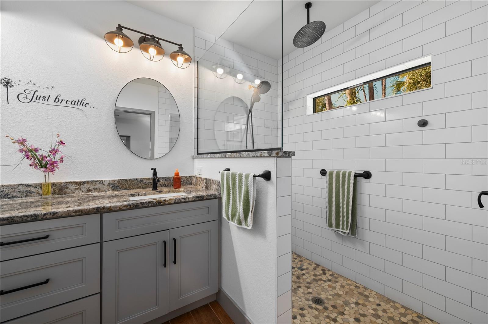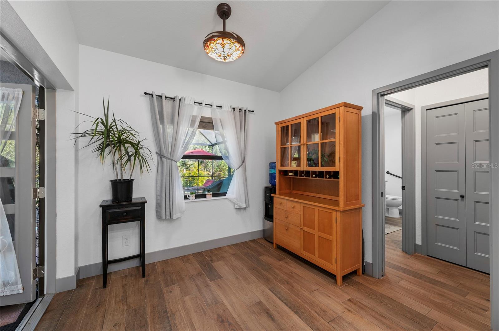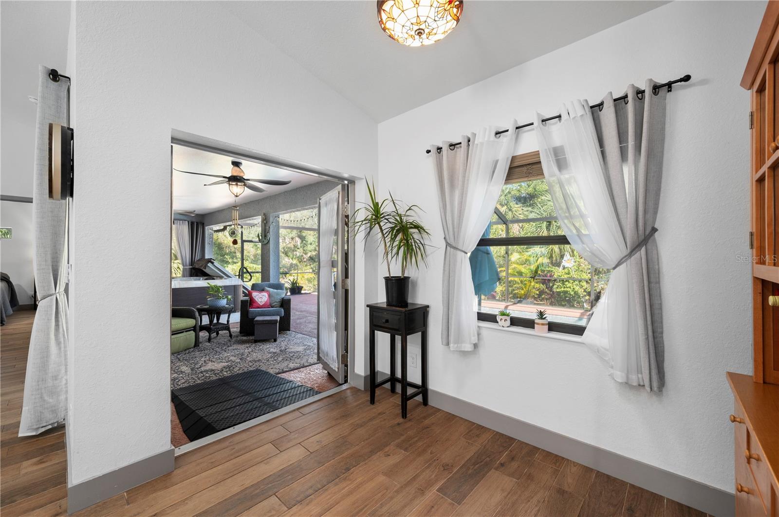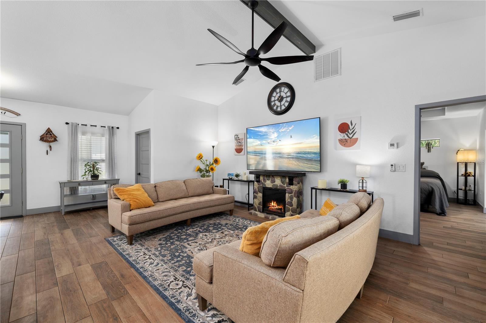 Não é necessário seguro contra inundações! Esta casa personalizada quase nova de 2022 oferece 3 quartos, 2 banheiros e uma garagem para 2 carros, 1.445 pés quadrados, com forte ênfase em materiais de qualidade e design raramente disponível com foco em ADA. A propriedade fica em um terreno privativo com paisagismo com palmeiras Areca e Calusias, e está cercada pela natureza. Dentro da entrada frontal com tela, a planta aberta flui graciosamente com todo o piso de porcelanato, teto com vigas de catedral e cozinha com um distinto balcão e bar de granito cinza com pia de fazendeiro, luminárias atualizadas, armários de design com fechamento suave e backsplash de azulejos de metrô em espinha de peixe. A despensa possui estantes extraíveis e saídas duplas, eletrodomésticos LG em inox e iluminação embutida com dimmer para completar o espaço de trabalho. Na sala principal, portas de vidro deslizantes abrem o espaço para a varanda e uma convidativa piscina de água salgada com aquecimento elétrico de 12 x 24 pés. A grande varanda coberta amplia o espaço de estar e um spa Smokey Mountain para 5 pessoas está disponível. A piscina tem degraus de um lado e uma espreguiçadeira Baja do outro, ideal para se bronzear ou relaxar. A vegetação rodeia a piscina protegida para maior privacidade. As portas francesas abrem da área da piscina para o quarto principal ou sala de jantar, e também há acesso à banheira da piscina. Ambos os banheiros têm chuveiros de azulejos, balcões de granito com pias montadas embaixo, corrimãos, portas de 36" de largura - refletindo os recursos personalizados adequados para ADA embutidos no design. O quarto principal também possui uma bandeja de teto e ventiladores atualizados são encontrados por toda parte, assim como portas de design de luxo. Um aquecedor de água sem tanque fornece eficiência, e o ar condicionado Ruud está bem conservado e na garantia. A lavadora e secadora Whirlpool permanecem na garagem, mas as rampas de entrada serão removidas. A casa também está conectada para um gerador para toda a casa, tem uma entrada extra larga e, no geral, a propriedade reflete escolhas cuidadosas, acabamentos duráveis e artesanato que favorecem o conforto e a facilidade de vida a longo prazo.
