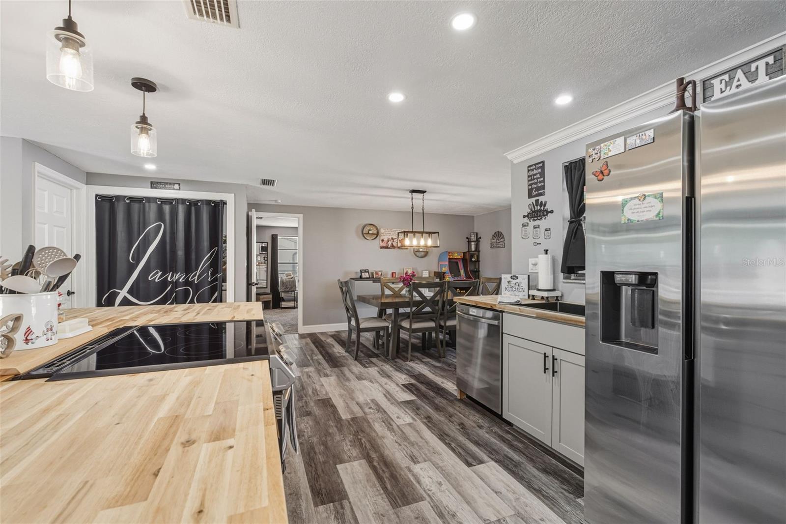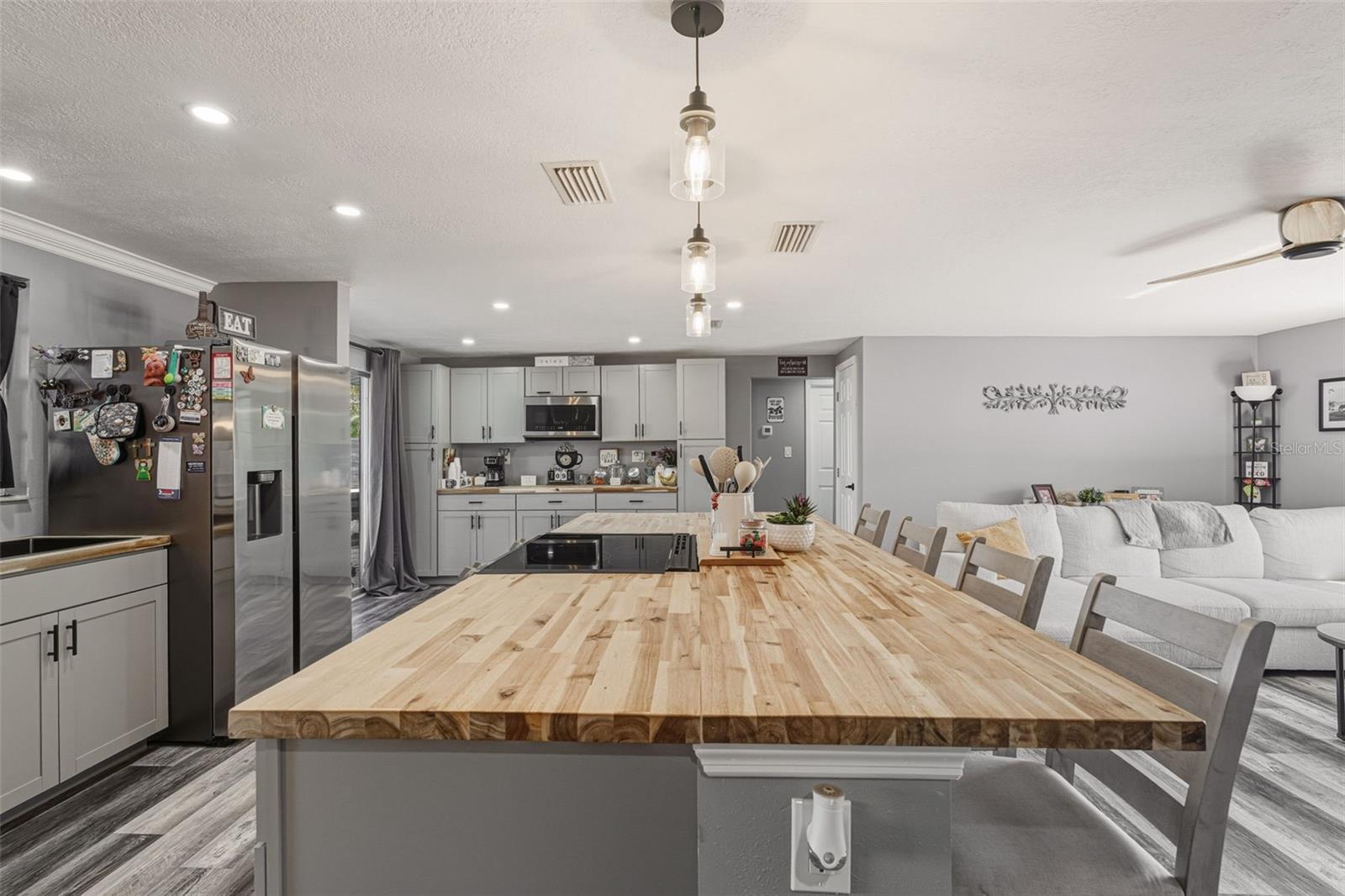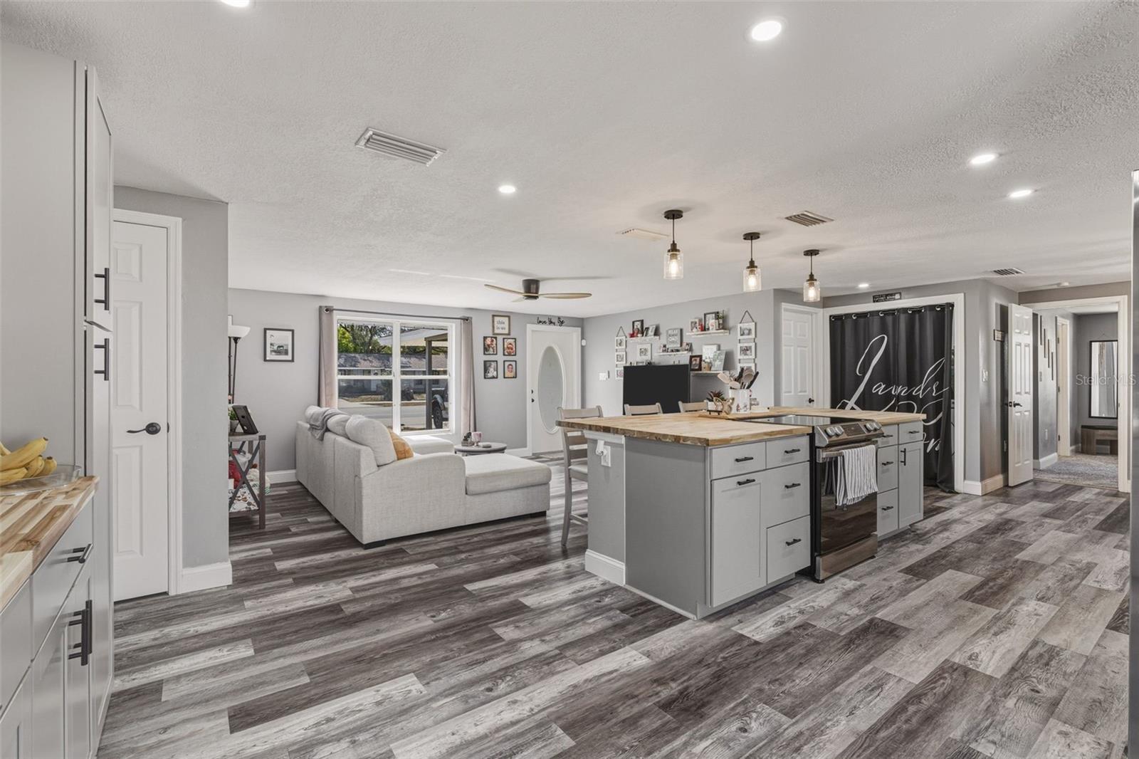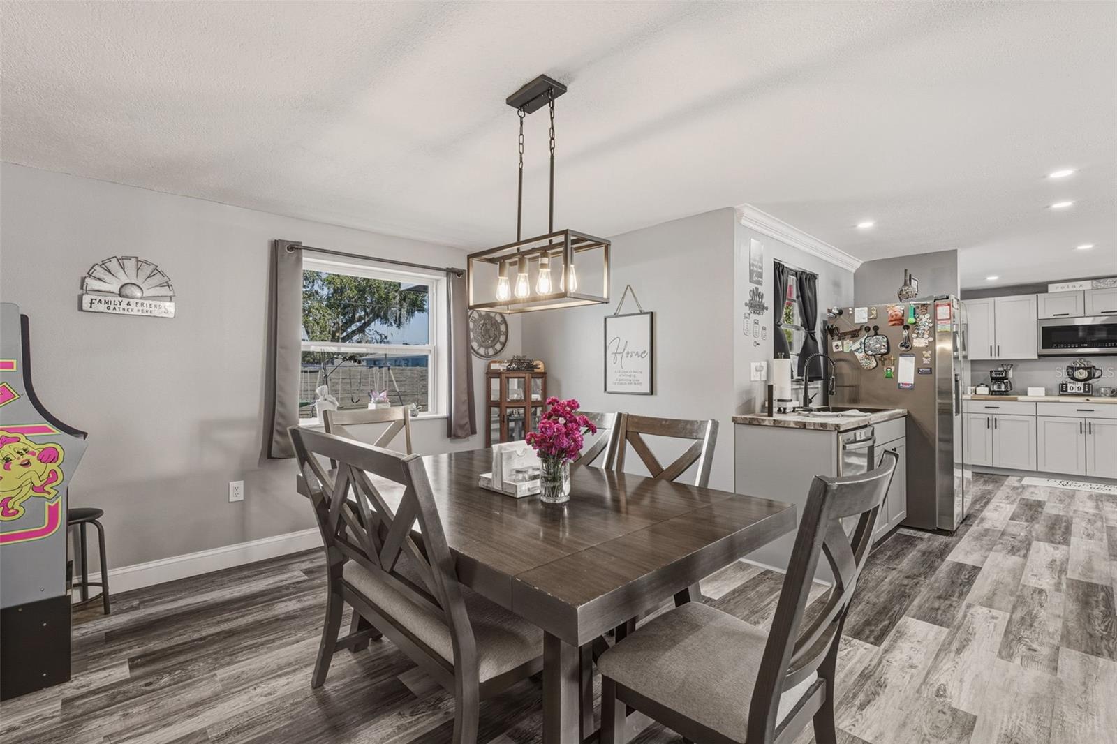 Esta bela casa de fazenda moderna MOVE IN READY possui 1.521 pés quadrados de área útil. NÃO É NECESSÁRIO SEGURO CONTRA INUNDAÇÕES, ZONEADO X. RECÉM-RENOVADO em 2024. TELHADO 2023, A/C 2018, luxuoso piso de pranchas de vinil nas áreas de estar, com estofamento Nike sob o carpete quartos. Além disso, a casa fica em um terreno de 10.000 pés quadrados com um grande quintal e uma cerca de madeira para privacidade de 6 pés. A grande ilha central da cozinha tem muito espaço para bancos de bar, o que é perfeito para entretenimento, pois é agradável e aberto com os espaços da sala de jantar e de estar. A cozinha tem amplos armários e despensa. Nenhuma desordem terá chance contra o armazenamento que esta cozinha tem! No açougue da reforma contadores foram instalados, bem como aparelhos Samsung. Quarto principal espaçoso com closet, banheiro principal com pia dupla e um assento embutido no chuveiro. Esta casa tem muitas janelas que permitem a entrada de muita luz solar natural. Grande banheiro de hóspedes com armários flutuantes e dois janelas. A lavanderia INTERIOR da sala grande inclui uma lavadora e secadora frontal. A varanda com TV incluída é perfeita para isso Estilo de vida da Flórida de desfrutar do seu pedaço do paraíso. Luzes embutidas na cozinha criam um ambiente luxuoso. Não se esqueça da garagem para dois carros que inclui uma geladeira com porta francesa. Fica perto de escolas, mas suficientemente longe do trânsito escolar. Uma linda lousa em branco que está pronta para mudar para você dar seu toque pessoal.