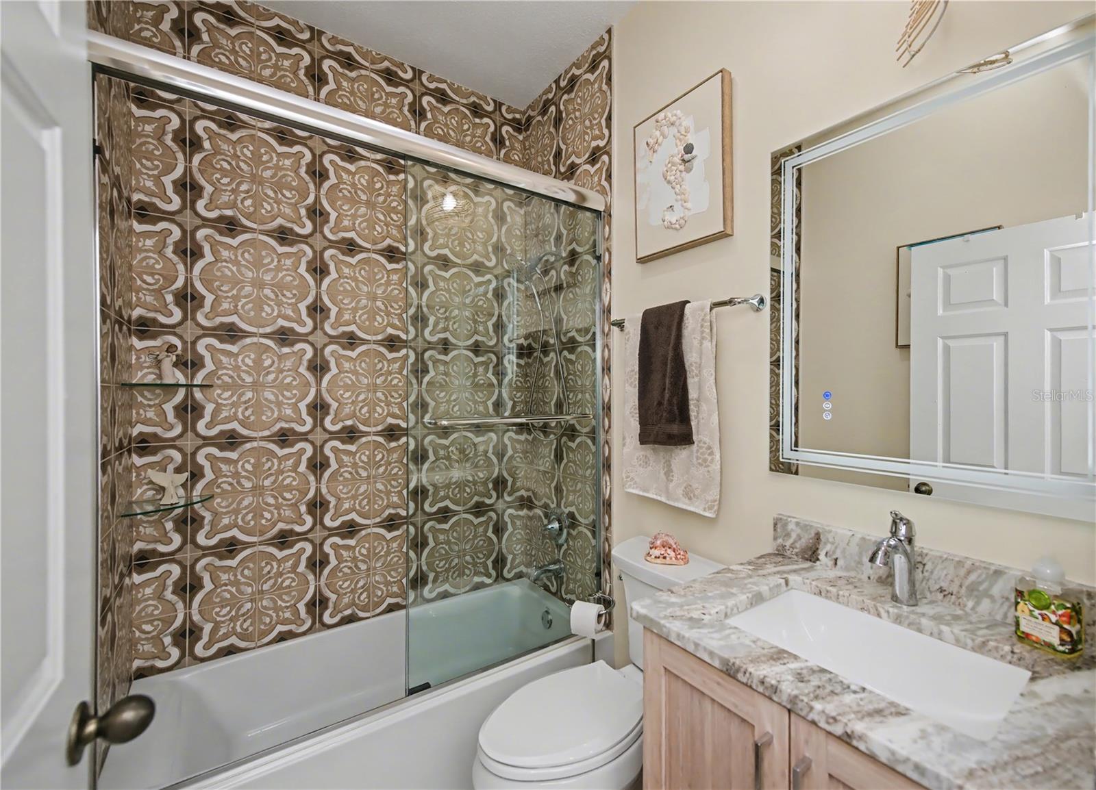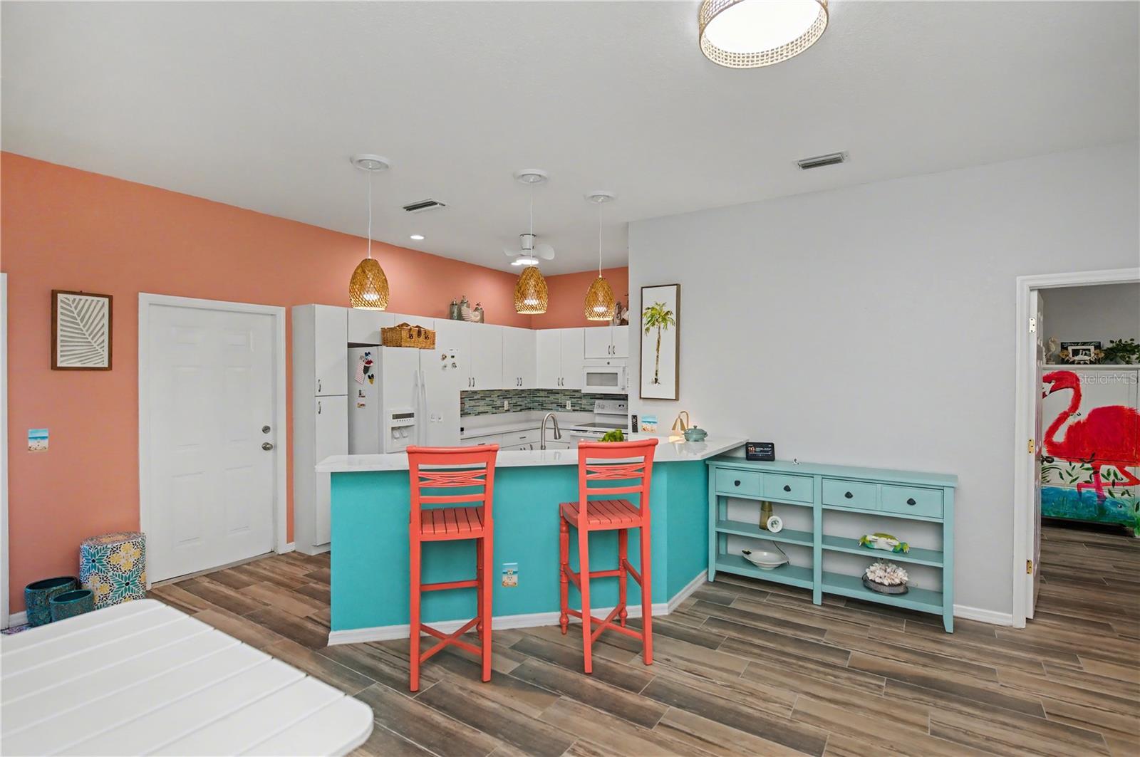 Vá direto para esta deslumbrante Villa Heritage Oak Park, repleta de melhorias e atualizações! Perfeitamente localizada a poucos passos de todas as excelentes comodidades que o condomínio oferece, esta casa lindamente aprimorada possui 2 quartos, 2 banheiros completos, uma sala e uma espaçosa garagem para 2 carros. As melhorias incluem janelas de vidro de impacto por toda parte, venezianas sanfonadas nas portas, um novo telhado (2015), pisos de porcelanato instalados em 2022, carpete mais novo na varanda frontal (2021), venezianas nas áreas principais e cortinas personalizadas por toda parte. Ventiladores de teto foram substituídos em 2023. A cozinha atualizada possui armários com fechamento suave, pia embutida, bancadas de quartzo, backsplash de vidro, iluminação suspensa de bambu e está totalmente equipada. O banheiro master oferece um novo box amplo com vidro sem moldura, pia dupla com bancada de quartzo, espelhos de LED, armário em torre com saídas internas e porta de celeiro para privacidade. O banheiro de hóspedes possui azulejos personalizados ao redor da banheira/chuveiro, uma porta de chuveiro sem moldura, uma penteadeira personalizada com bancada de quartzo e um espelho de LED. Os extras incluem aspiração central, tanque de lavanderia, lavadora e secadora de tamanho normal com prateleiras, porta de tela elétrica para ventilação, novo aquecedor de água (2020) e novo ar-condicionado (2023). Heritage Oak Park é um condomínio fechado acolhedor na área de Murdock, em Port Charlotte, situado entre majestosos carvalhos para uma atmosfera pacífica e campestre, com acesso rápido a lojas e restaurantes. As comodidades incluem clube, piscina aquecida, biblioteca, sala de bilhar, academia, shuffleboard, bocha, quadras de tênis e pickleball, trilha para caminhada ao redor do lago e um diretor de atividades planejando diversos eventos para os residentes.