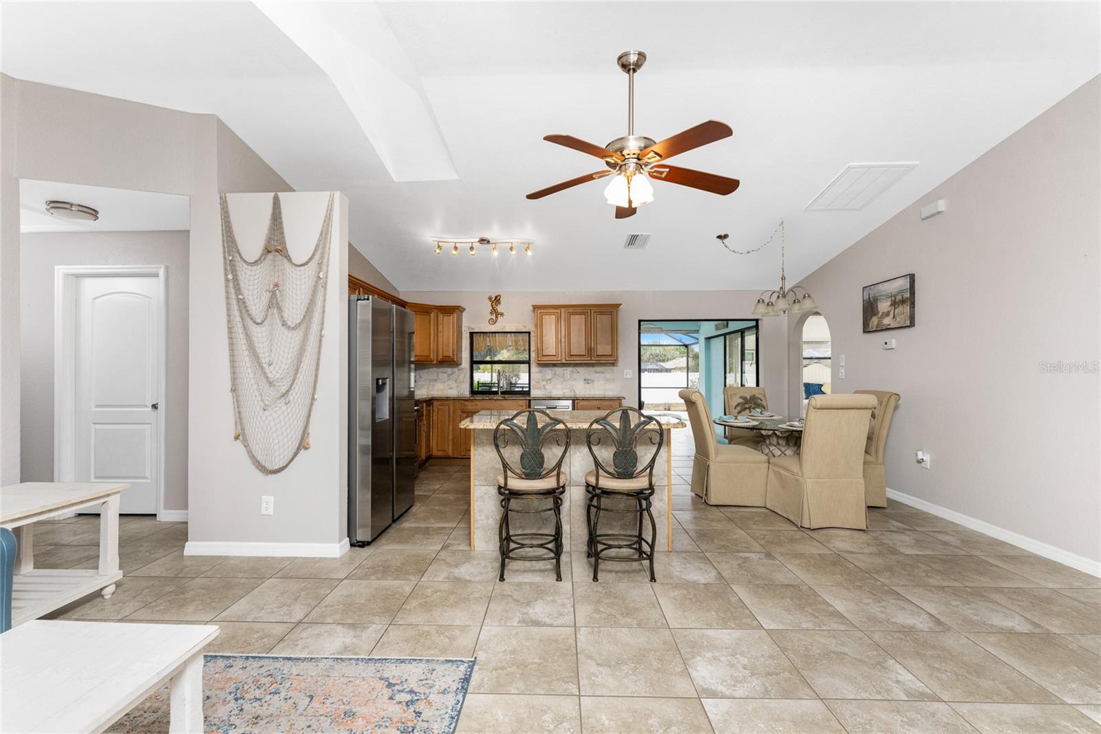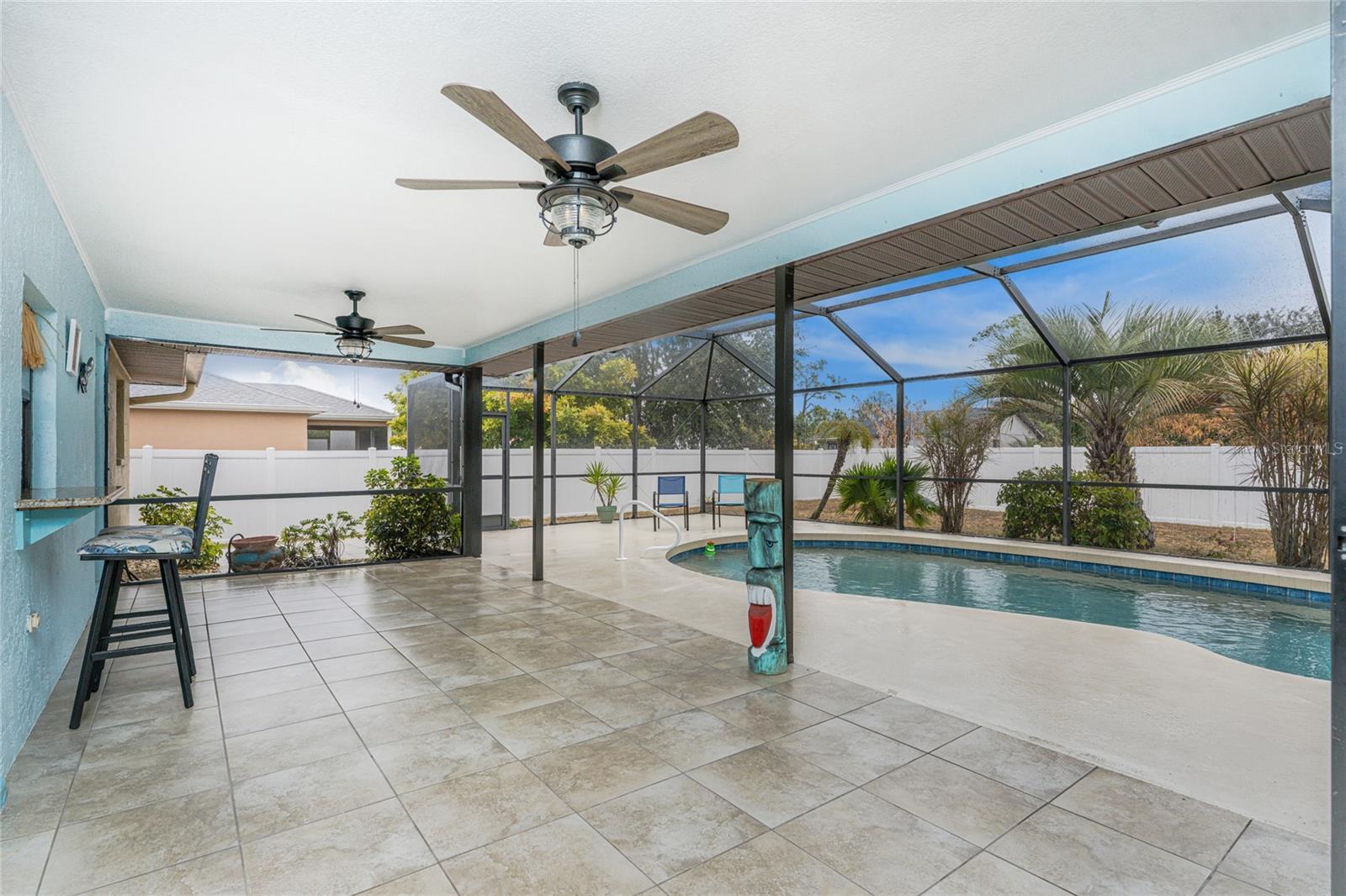Localizada em um ótimo bairro, esta casa bem conservada e pronta para morar não durará muito - o orgulho de propriedade é evidente por toda parte, com um vendedor meticuloso que cuidou desta propriedade. Esta casa de 3 quartos e 2 banheiros com garagem anexa para 2 carros oferece uma planta aberta de dois quartos com uma espaçosa sala grande, cozinha ampla com área de jantar e uma enorme varanda coberta e com tela. A poucos passos do Kiwanis Park, direto da sua garagem, aproveite o acesso a uma trilha de caminhada privada e arborizada do outro lado da rua. Luminosa e luminosa, com grandes janelas e clarabóia, a cozinha bem equipada possui bancadas em granito, armários de madeira, eletrodomésticos de aço inoxidável, ilha central com balcão para café da manhã e armazenamento adicional e backsplash. Portas de vidro deslizantes estendem a área de estar até a varanda com vista para a piscina, além de uma janela de passagem conveniente da varanda até a cozinha. A espaçosa suíte principal inclui acesso à varanda, closet e banheiro privativo com armários de madeira, balcões de granito e box amplo, enquanto dois quartos de hóspedes compartilham um banheiro de hóspedes com armários de madeira, balcões de granito e uma combinação de banheira/chuveiro que também serve como banheira de piscina. As características adicionais incluem piso de cerâmica em todas as áreas de estar, portas em arco, iluminação de trilhos, clarabóia na Grande Sala, entrada frontal com tela, piscina subterrânea com recapeamento recente, grande quintal cercado e extensão de deck de concreto recentemente adicionada. Idealmente localizado a poucos minutos de lojas, restaurantes, cuidados médicos, parques à beira-mar, rampas para barcos e Charlotte Sports Park. As principais atualizações incluem A / C e fossa séptica (2013), novo telhado (2022) com terceiro prego adicionado para economia de seguro, gaiola de piscina (2017), pintura interna e externa fresca, porta de garagem com classificação de impacto, clarabóia contra impacto de furacão, novas janelas frontais, novo tanque de água quente, todas as novas persianas, novas calhas no lado oeste da casa, novos eletrodomésticos de aço inoxidável, novo backsplash de cozinha e novos pavimentos - reserve sua exibição agora porque esta casa não vai durar muito.