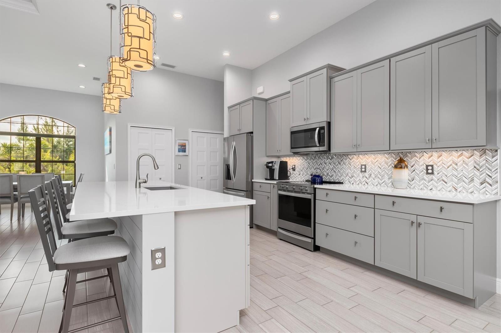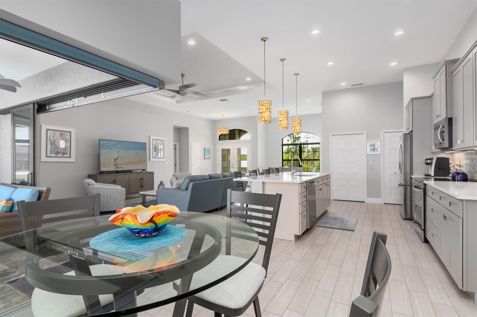 Melhoria de preços! Vendedor motivado! Não procure mais ... você encontrou sua casa para sempre e está sendo vendida em chave mobiliada! Esta impressionante piscina à beira -mar/spa está localizada em South Gulf Cove. A casa era personalizada em 2020 e praticamente ainda é nova. Por que esperar para construir sabendo que este 258 pés quadrados, piscina/spa para casa com 3 quartos e 3 banheiros é realmente uma casa pronta para casa! Esta casa com maestria é aprimorada por acabamentos sofisticados, tetos de bandeja crescentes, eslideradores de canto zero, pisos de ladrilhos de tábuas de madeira em toda a casa, lindas tons de silhuetas de Hunter Douglas automatizadas, amplo armazenamento e azulejo da moda e pica-pau na cozinha e banheiros. Ao entrar pelas elegantes portas duplas, você ficará impressionado com a abertura da grande sala, cozinha e áreas de jantar. Como você verá, as portas de canto zero de bolso fornecem uma conexão perfeita entre as áreas internas e externas. Esse sistema transforma completamente a grande sala e fornece acesso desobstruído ao ar livre e à vista de água clara da área do canal e da piscina/spa. A grande sala está aberta para a moderna cozinha costeira. Armários cinzentos atemporais, slash de fundo complementar, bancadas de quartzo e utensílios de aço inoxidável mostram opções de design impecáveis (ou seja, prumo direto para o Keurig). A expansiva ilha da cozinha oferece amplo espaço para preparar refeições ou serve como um ponto focal para entreter familiares e amigos. O quarto principal nesta planta dividida é espaçosa, possui armários espetaculares e acesso à área da piscina. O banheiro privativo é espaçoso e apresenta vaidades duplas divididas, balcões de quartzo, área de vaidade e um chuveiro personalizado semelhante a um spa. O quarto dois é considerado um primário duplo com banheiro privativo, armário embutido e acesso privado à área de Lanai e piscina. O quarto três é aberto e arejado, com muito espaço no armário. O banheiro três tem um chuveiro com azulejos da moda e vaidades duplas. Ao sair do seu caminho, você notará a enorme área de Lanai, piscina e spa. Esse espaço foi realmente projetado para entreter ou simplesmente um lugar incrível para relaxar e relaxar. Aproveite o dia em sua piscina de água salgada atualizada com prateleira solar e cachoeiras e naquelas noites mais frias mergulham no spa enquanto assistem ao pôr do sol. Além disso, o aquecedor infravermelho na área de Lanai o manterá quentinho em dias mais frios. Desça até o canal e observe que a propriedade possui um pátio de pavimentação dupla e paredão de concreto de 80 pés. Certamente será um refúgio tranquilo para distrair as demandas da vida cotidiana ou um ótimo local para barco, pescar ou apenas entreter. Você deseja considerar que o teto de metal, as janelas/portas de impacto e as telas Kevlar retráteis para o Lanai como a melhor proteção de longo prazo para esta casa. A cobertura de metal tem uma vida útil mais alta, menor manutenção e é mais eficiente em termos de energia. Além disso, para eficiência de energia em casa, há um isolamento adicional nas áreas do sótão e rastreamento. Programe sua exibição particular hoje para experimentar a Flórida que vive no seu melhor!