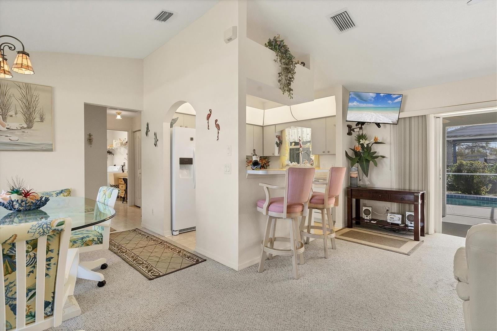 Descubra a casa dos seus sonhos na pitoresca comunidade ribeirinha de Gulf Cove! Esta casa de piscina lindamente mantida e mobiliada, está em três lotes espaçosos e apresenta uma convidativa planta baixa aberta com três quartos, dois banheiros e uma garagem para dois carros. A grande sala brilhante e arejada possui controles deslizantes de bolso que se abrem para a extensa piscina Lanai, enchendo o espaço com luz natural. A cozinha bem equipada inclui um bar de café da manhã e uma conveniente janela de passagem para o Lanai, perfeita para entretenimento. A piscina aquecida desfruta de uma exposição desejável no sudoeste, e o espaço ao ar livre é completo com um chuveiro ao ar livre para maior conveniência. A suíte master oferece um grande closet e acesso direto ao Lanai, enquanto o layout do quarto dividido fornece privacidade para os hóspedes. Uma garagem mais recente de 26 'x 35' com eletricidade adiciona um potencial incrível de armazenamento ou oficina. Desfrute do acesso à rampa de barcos comunitários, onde você pode lançar seu barco e cruzar para o porto e o Golfo. Além disso, esta casa não está em uma zona de inundação e apresenta uma nova e mais recente persianas de telhado e furacões para a paz de espírito. Por apenas US $ 75/ano, você pode ingressar nos proprietários opcionais da Gulf Cove Association para acesso ao parque e playground e, por mais US $ 75/ano, você pode obter um adesivo para a rampa de barcos particulares. Não perca esta rara oportunidade de possuir uma fatia do paraíso!