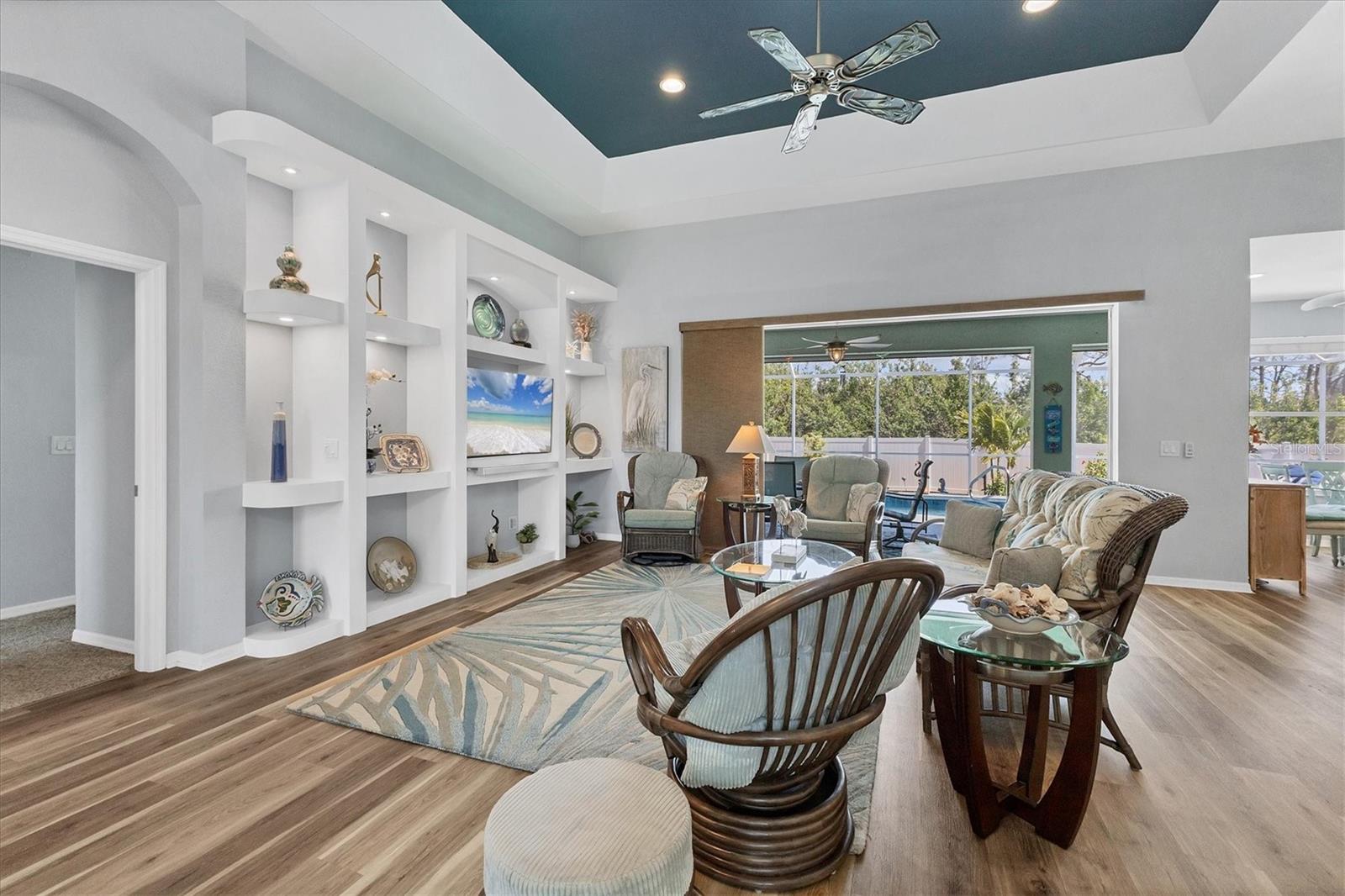 Linda - Limpa - Light & Bright - Piscina em casa! Esta é uma casa imperdível; É lindo e os vendedores são motivados. *** Esta encantadora casa de 3 quartos de 3 quartos de 2014 está em um lote de canto de grandes dimensões que é lindamente paisagístico e mantido. A entrada frontal é um uau com uma linda porta dupla de furacão e pátio espaçoso rastreado! Entre na grande sala leve e brilhante com tetos de 12 'e uma porta de vidro deslizante com várias formas que abre quase toda a parede. Sinta -se aconchegante e seguro com janelas e portas de impacto na frente da casa, a tela elétrica para baixo para o pátio traseiro e persianas para o resto. A casa possui um telhado de 2022, 2024 transportador AC, 2024 piscina ressurgida com deck de piscina revestida com epóxi e piso de garagem revestida com epóxi. A cozinha e o banheiro primário são lindamente atualizados com balcões de pedra e armários de madeira. A suíte primária possui um closet de tamanho agradável e um grande banheiro privativo, com chuveiro romano de entrada dupla com um aquecedor de água sem tanque designado. Os 2 quartos de hóspedes são grandes o suficiente para camas king size! Você tem uma sala de bônus adicional / covil, que é super confortável como uma sala de estar extra, escritório ou até uma sala de jantar. A cozinha possui um grande bar de café da manhã e área de lanchonete com vista para a piscina. A triagem na piscina de água salgada é aquecida solar e elétrica. Aproveite a privacidade do seu cercado em quintal com plantas tropicais e árvores frutíferas. Localização super tranquila, 10 minutos para o golfe, a mercearia e 20 minutos para a praia. Aproveite esta bela casa de piscina na popular comunidade à beira -mar de South Gulf Cove, com quilômetros de vias navegáveis levando ao porto de Charlotte e ao Golfo. Ligue para ver hoje!