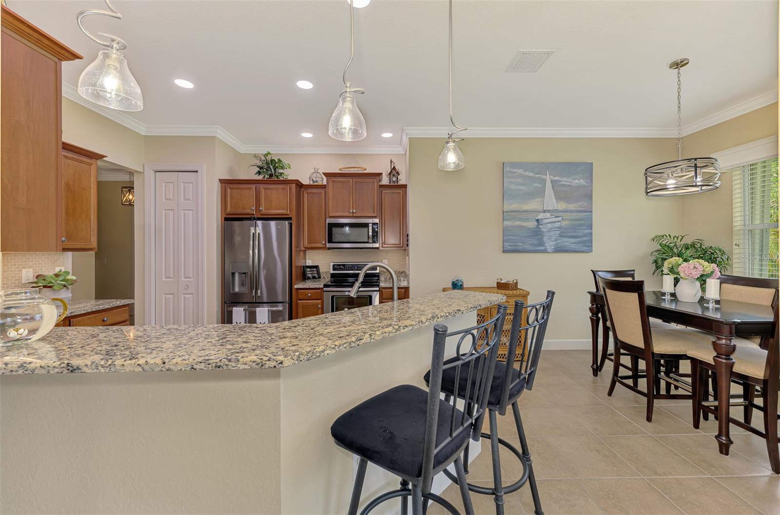 Não precisa procurar mais - sua casa de sonho da Flórida Carefree aguarda! Posicionado perfeitamente perto do final de um beco sem saída tranquilo, esta villa de 2 quartos, de 2 quartos, está aninhada em um lote privado e exuberante paisagístico, com vistas serenas de uma reserva cênica. A partir do momento em que você chegar, você será cativado pelo seu apelo convidativo e um cenário de jardim. Entre para descobrir um interior naturalmente brilhante e elegante, com molduras de coroa em todos os quartos, pisos de ladrilhos diagonais elegantes nas principais áreas de estar e piso de vinil de luxo recém -instalado nos quartos. A cozinha atualizada impressiona com armários de qualidade adornados com moldagem por coroa, bancadas em granito, um backsplash de ladrilhos de bom gosto e aparelhos de aço inoxidável. A espaçosa suíte primária é um verdadeiro retiro, oferecendo um grande armário e um banho de suíte, completo com pias duplas, uma banheira de imersão e chuveiro. Aprimoramentos interiores adicionais incluem iluminação de designers, ventiladores e utensílios modernos, tratamentos de janelas elegantes por toda parte e a tranquilidade adicional das persianas motorizadas e de acordeão, além de armazenamento integrado adicionado na garagem. Desfrute de uma vida no estilo resort todos os dias: localizada em Riverwood, uma comunidade fechada e de 1.300 acres e premiados no condado de Charlotte, os moradores gostam de caminhar e andar de bicicleta por ruas exuberantes e arborizadas e natureza abundante. As comodidades abundam, incluindo um campo de golfe par 72 de primeira classificação (classificado entre os 50 melhores cursos dos EUA pelo Advisor de Golfe), um centro de fitness de última geração, uma piscina em estilo resort com faixas de colo e uma extremidade rasa, uma banheira de hidromassagem relaxante. Como uma comunidade verde vencedora do Audubon Award, Riverwood também oferece um santuário natural para a vida selvagem da Flórida. Os recursos adicionais incluem um parque para cães, RV no local e armazenamento de barcos e acesso a um clube de praia privado na Manasota Key (associação com base na disponibilidade). Localização privilegiada: idealmente situada entre Sarasota e Fort Myers, na Costa do Golfo, da Flórida, você está a poucos minutos da instalação de treinamento de primavera de Tampa Bay Rays, pesca de classe mundial, passeios de barco, restaurantes, compras e as praias de tirar o sudoeste da Flórida. Não perca! Visite hoje e experimente o estilo de vida, o conforto e o charme que esta vila excepcional tem a oferecer - e esteja preparada para se apaixonar.