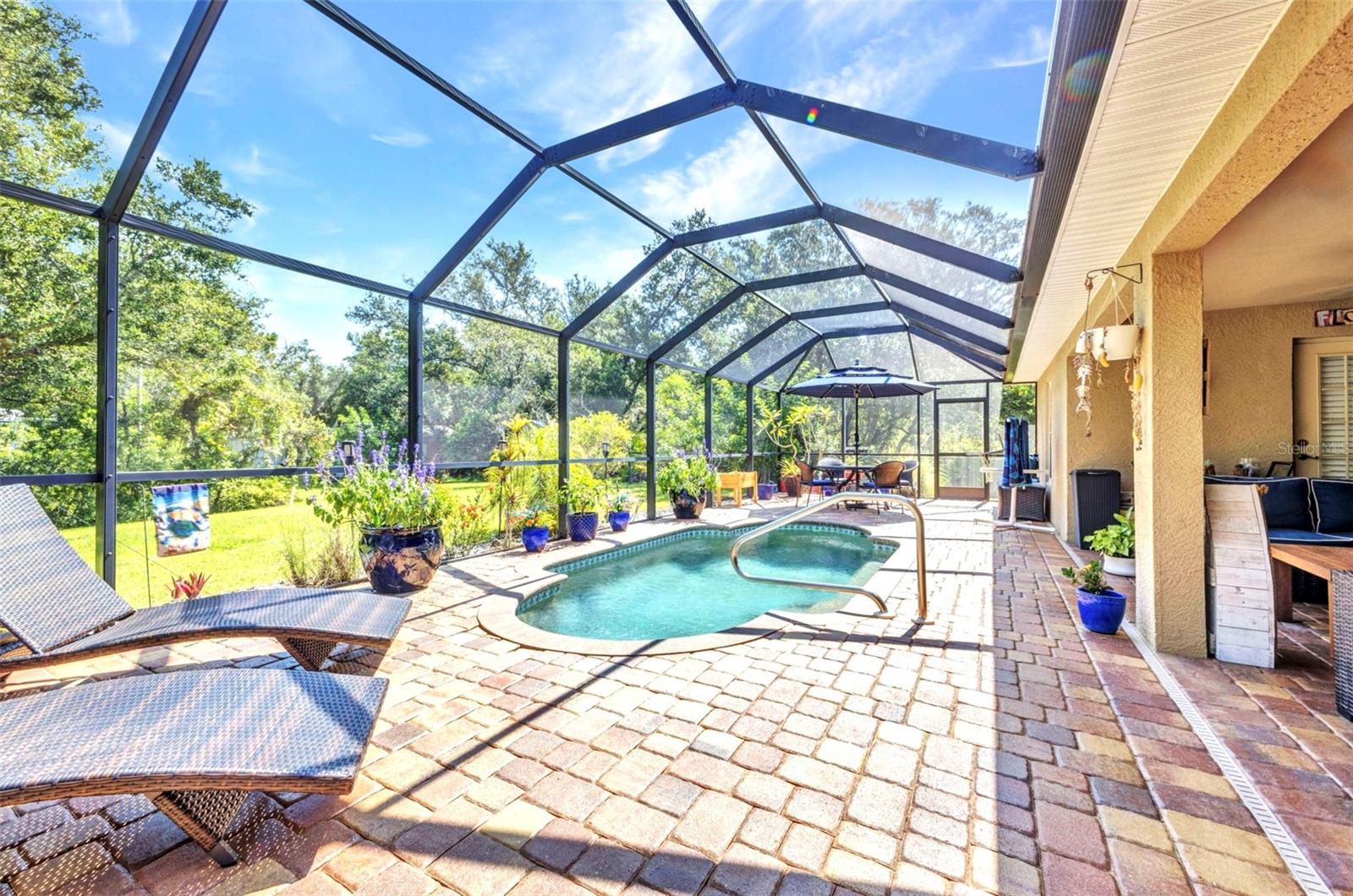 Procurando uma piscina lindamente atualizada em casa com terra e privacidade extras? Esta casa imaculada de 3 quartos, mais Den/Office, aninhada em três lotes, totalizando 0,69 acres, verifica todas as caixas! Cercado por natureza exuberante, esta propriedade oferece espaço, serenidade e atualizações modernas por toda parte. Você vai adorar o novo telhado (2024), o impacto Windows (2023), um sistema de irrigação inteligente (2026) e o sistema de filtração de água atualizado - tudo o que proporciona tranquilidade e valor agregado. Entre na acolhedora varanda da frente de 19x8, acentuada pelas mesmas pavimentadoras elegantes que continuam ao redor da piscina de água salgada aquecida (nova em 2013), criando uma experiência de vida ao ar livre e completa e completa. O Lanai traseiro é um retiro privado, com uma grande área coberta com acesso da sala de estar, suíte primária e escritório/den, levando a um pátio tranquilo com tampa de pérgola, cercado por paisagismo semelhante ao parque-perfeito para relaxar ou divertir. No interior, a planta piso de quarto dividido oferece privacidade para todos, com o Den se convertendo facilmente em um quarto quarto, se necessário. O coração da casa possui tetos da catedral e um layout aberto que flui da área de jantar formal para a sala de estar, recanto do café da manhã e cozinha espaçosa com uma barra de café da manhã e um armário de despensa. Uma lareira elétrica com compensação de shiplap acrescenta charme e calor à área de estar principal. Desfrute de pisos de madeira fácil de cuidar-sem carpete em qualquer lugar! Além disso, o sistema de painel solar pago (instalado em 2020) mantém as contas elétricas impressionantemente baixas (com média de apenas US $ 45/mês). Os recursos adicionais incluem uma garagem de 2 carros e dois galpões de armazenamento (16x10 e 12x20)-ambos com serviço elétrico, fornecendo mais de 400 pés quadrados de espaço de armazenamento ou workshop adicionado. Esta casa realmente oferece tudo - espaço, estilo, atualizações e eficiência - tudo em um ambiente pacífico e natural. Não perca!