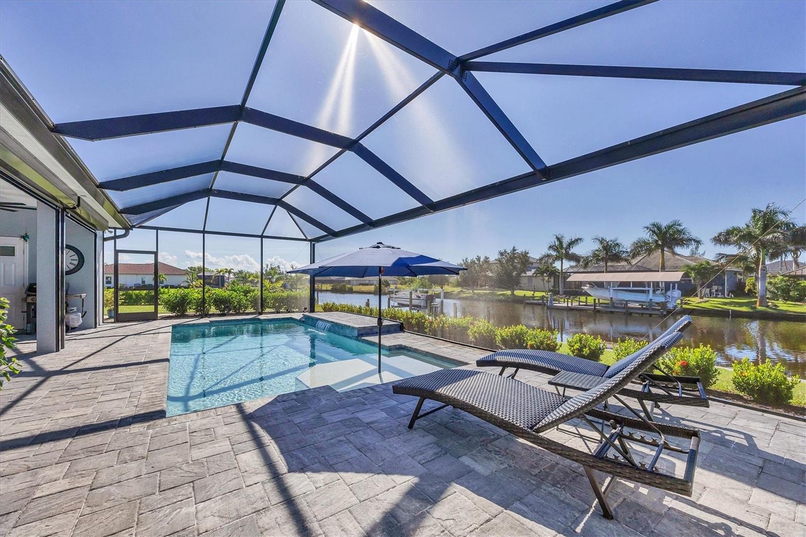 Lote duplo à beira-mar com 160 pés de paredão, doca composta de 40 pés, elevador de barco de 10.000 lb, galpão, piscina aquecida, preenchedores de janelas/rolagem elétrica de impacto, personalizados e totalmente mobiliados! Bem-vindo ao seu retiro dos sonhos na procurada Comunidade de Bandezas de South Gulf Cove! Esta casa de 3 quartos e 3 quartos, em 2,5 banheiros, fica em um raro lote duplo, combinando elegância, conforto e funcionalidade. A partir do momento em que você chega, você é recebido por paisagismo exuberante e grama fresca que enquadra lindamente a impressionante fachada de propriedade de 160 pés. Passe pela porta da frente e seja recebido por tetos abobadados, expansiva portas de vidro deslizantes de 9 pés e um espaço aberto com uma lareira aconchegante, tudo contra vistas serenas à beira-mar. A cozinha do chef foi projetada para beleza e função, oferecendo balcões de pedra, armários de close macio personalizados, utensílios de aço inoxidável, uma grande ilha com armários de ponta dupla e uma despensa. A sala de jantar tem vista para as grandes janelas de imagens e se abre perfeitamente para a área da piscina através de controles deslizantes, tornando divertido sem esforço. A planta baixa garante privacidade para todos. A suíte primária é um retiro pacífico, com uma grande janela com vista para a água, controles deslizantes privados para a piscina e um banho de spa com um chuveiro de ladrilho deslumbrante, vaidades duplas e um espaçoso closet. Dois quartos adicionais estão cheios de luz natural e compartilham um banheiro de hóspedes bem equipado. Um escritório dedicado, lavanderia terminada e garagem de grandes dimensões adicionam conveniência à vida cotidiana. Lá fora, você encontrará um verdadeiro paraíso da Flórida. O deck da piscina pálida apresenta uma piscina aquecida com uma prateleira solar e um guarda -chuva, uma fonte e amplo espaço para relaxar ou divertir. Um meio banho ao lado da piscina torna a vida ao ar livre ainda mais fácil. O lote secundário apresenta um galpão impecável de 12x16 com uma rampa, enquanto uma calçada privada leva à doca de 8x40, completa com água, elétrica e um elevador de barco de 10.000 libras. Essa configuração é ideal para desfrutar de quilômetros de canais com acesso rápido ao porto de Charlotte, ao Golfo do México e além. Localizada a poucos minutos das calçadas, um parque e belas trilhas para caminhada, esta casa é fácil de pescar em classe mundial, praias deslumbrantes, campos de golfe primitivos, compras e refeições. Seja como residência primária, fuga sazonal ou investimento em turnos, esta casa à beira-mar é a mistura perfeita de luxo e estilo de vida.