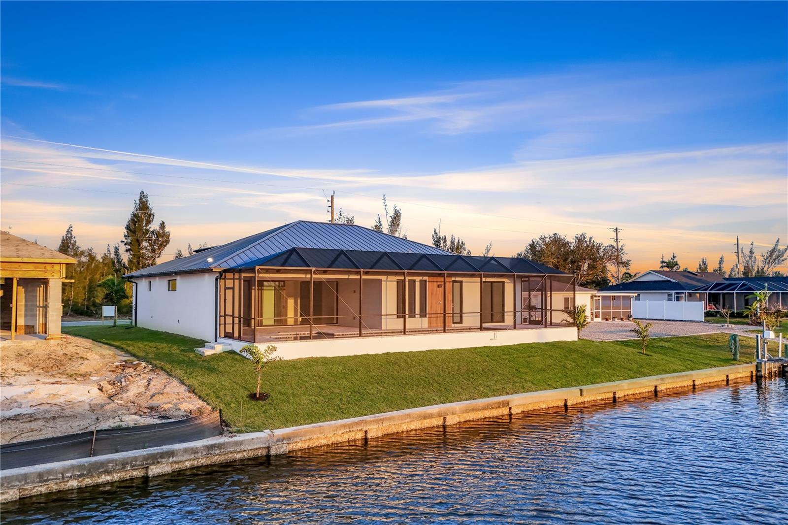 2025 CASA NOVA, à espera do seu primeiro dono. O construtor não poupou despesas nesta deslumbrante CASA COM PISCINA À BEIRA-MAR com acesso ao Golfo. Este incrível 2.446 pés quadrados. luxuosa casa, possui 4 quartos, mais 1 escritório com portas duplas de vidro, 3 banheiros completos e uma incrível cozinha externa totalmente equipada com todos os eletrodomésticos de última geração. A piscina tem vista para o canal, onde você pode atracar seu barco ao longo do paredão de 25 metros. O fácil acesso ao mar aberto e ao Golfo será uma vantagem para todos os amantes da navegação. Há muito espaço na área fechada da piscina externa para receber convidados. A piscina dispõe de área de estar de spa, chuveiro ao ar livre e iluminação LED para piscina. A planta aberta oferece um espaço majestoso e luxuoso, adornado com um enorme piso de porcelanato. A Grande Sala possui teto alto em caixotões com iluminação LED, TV plana Samsung de 86 polegadas e lareira elétrica moderna. Iluminação em faixa de LED na entrada para um toque de sofisticação. A cozinha é o paraíso dos chefs com todos os eletrodomésticos Whirlpool de última geração. Armários com fechamento automático em estilo europeu contrastam com as elegantes bancadas de quartzo. Para sua tranquilidade, esta casa possui telhado de metal e janelas e portas de impacto. Procurando um lugar perfeito para chamar de lar? Esta casa pronta para morar espera por você na tão desejável comunidade de South Gulf Cove.