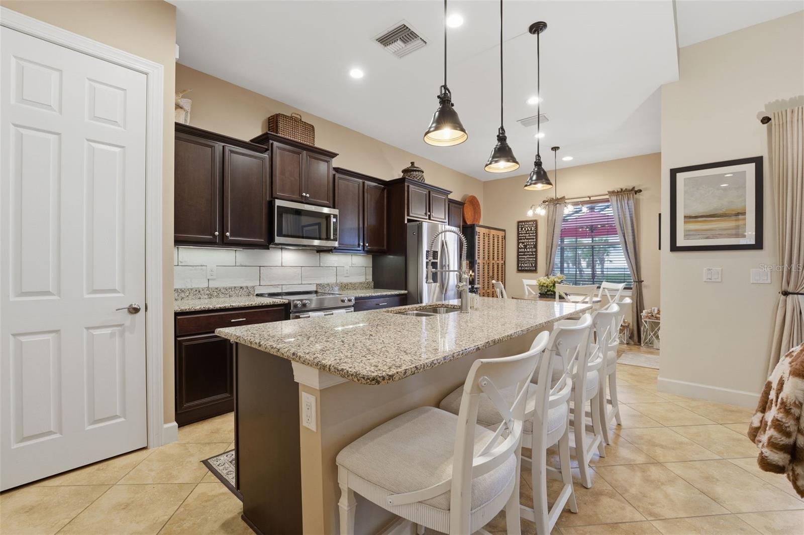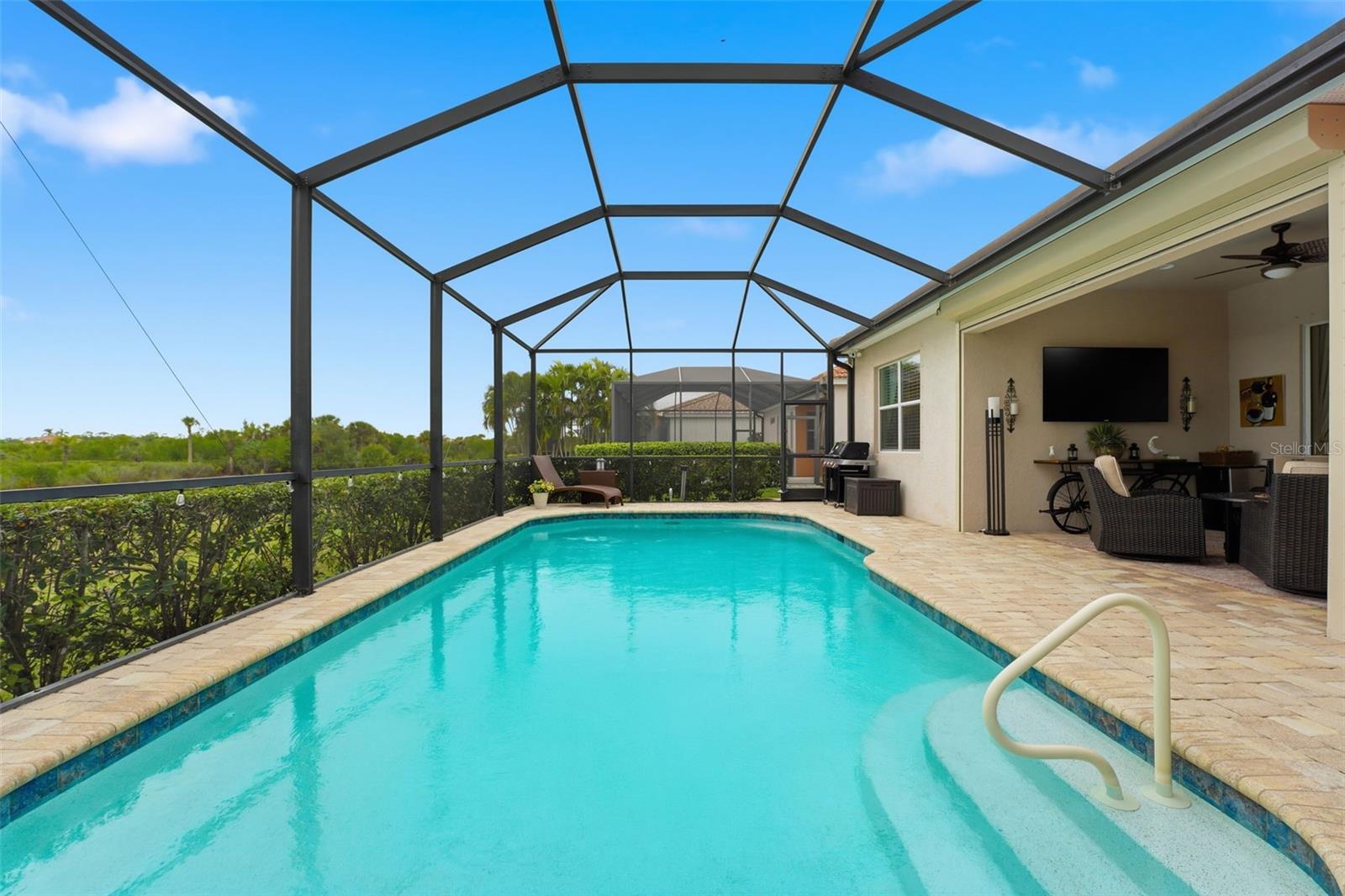 CASA ÚNICA À BEIRA-RIO COM MELHOR PREÇO em RIVERWOOD — verdadeiramente uma joia do rio Myakka. Desfrute de vistas panorâmicas deslumbrantes do rio e do pôr do sol inesquecível da Flórida nesta popular casa Vanderbilt de 3 quartos e Den, nova, bem conservada e pouco usada, projetada para abraçar a vida ao ar livre. A varanda ampliada oferece várias áreas de estar, perfeitas para relaxar ou se divertir ao lado da piscina aquecida. Com aquecimento eléctrico, pode desfrutar da piscina durante todo o ano. Entre em uma planta baixa do Great Room cuidadosamente projetada, onde estilo e conforto se misturam perfeitamente. O elegante porcelanato diagonal flui com carpete nos quartos de hóspedes. A cozinha possui uma ilha ampla, armários de madeira ricos, backsplash elegante de azulejos, bancadas de granito com borda arredondada e eletrodomésticos atualizados. Os tetos em caixotões na sala familiar e na suíte principal acrescentam charme arquitetônico, enquanto os tratamentos de janela de design, as luminárias e os interiores recém-pintados criam uma aparência refinada. A suíte principal inclui chuveiro amplo e closet, com acabamentos premium encontrados em toda a casa. A brisa da tarde vem do rio Myakka, e as venezianas, incluindo uma veneziana com controle remoto na varanda, proporcionam tranquilidade. Pacote de móveis de qualidade e carrinho de golfe topo de linha também estão disponíveis. Peça detalhes ao agente. Morar em Riverwood significa acesso a comodidades excepcionais: piscina Jr. Olympic e banheira de hidromassagem, academia de ginástica de última geração, quadras de pickleball e tênis Har-Tru, aulas de ginástica e atividades sociais vibrantes. Como uma premiada comunidade Audubon Green, Riverwood oferece um ambiente natural pitoresco e abundante vida selvagem na Flórida, além de um R.O.M.P. Dog Park e Riverwood Golf Club, um campo de campeonato Par 72. A poucos minutos de lojas, restaurantes, passeios de barco, pesca e das praias imaculadas do Golfo do México, este notável retiro à beira-rio oferece o melhor da vida na Flórida. Não perca esta rara oportunidade! Ligue para uma exibição hoje,