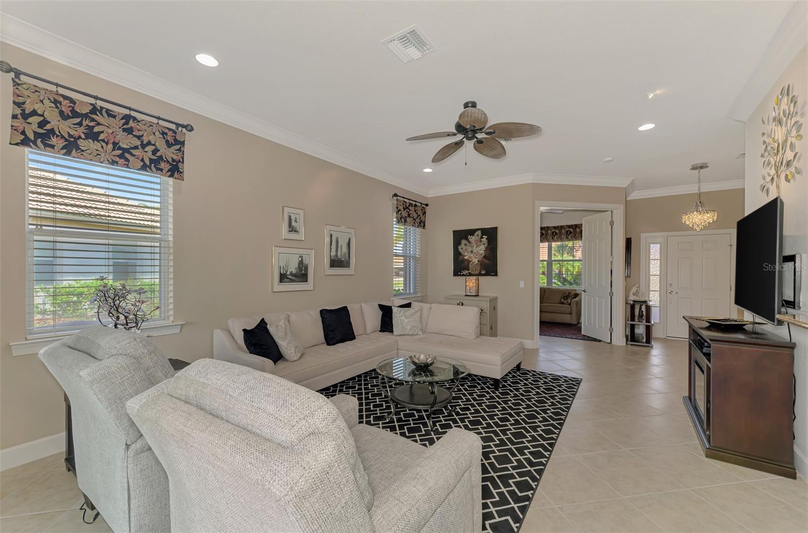 DESCUBRA O CHARME COSTEIRO, O CONFORTO E A DIVERSÃO AO AR LIVRE ENSOLARADO NA FLÓRIDA VIVENDO NO SEU MELHOR nesta villa lindamente atualizada de 2 quartos + sala e 2 banheiros com piscina de água salgada e garagem para 2 carros, situada no muito procurado condomínio fechado de Riverwood. Entre para ver tetos altos de 3 metros, portas internas de 2,5 metros e acabamentos elegantes por toda parte. Desfrute do piso cerâmico nas principais áreas de estar e no escritório, complementado por madeira projetada na suíte principal e carpete aconchegante no quarto de hóspedes. A espaçosa sala de estar cria uma atmosfera ideal para entretenimento ou relaxamento, enquanto o versátil escritório funciona perfeitamente como escritório, biblioteca, sala de artesanato ou espaço adicional para hóspedes. Os detalhes aprimorados incluem rodapés de 5" e sancas por toda parte. O coração da casa é a cozinha deslumbrante, completa com eletrodomésticos de aço inoxidável, bancadas de granito e armários de madeira, incluindo armários superiores de 36" com sancas. Um armário despensa oferece excelente armazenamento, e a sala de jantar adjacente oferece um local encantador para desfrutar de refeições com vista para a varanda e para a piscina. Retire-se para a generosa suíte principal, seu santuário privado, com um amplo closet e um sereno banheiro privativo tipo spa com pias duplas de granito e box amplo. O convidativo quarto de hóspedes fica ao lado de um banheiro completo com bancada de granito e combinação banheira/chuveiro. Abra as portas de vidro para o seu próprio oásis tropical. O quintal privado oferece vistas panorâmicas da reserva com a desejável EXPOSIÇÃO DO SUL, com o sol brilhando em um deck de pavimentação exibindo a piscina de água salgada cintilante, completa com uma fonte e uma refrescante mesa de sinuca - tudo fechado dentro de uma gaiola protegida para diversão durante todo o ano. Atualizações e recursos adicionais: • Novo AC • Novo tanque de água quente • Persianas motorizadas na porta da frente e na varanda, e persianas sanfonadas em todas as janelas externas. Como residente de Riverwood, você desfrutará de comodidades de classe mundial, incluindo um campo de golfe profissional par 72, academia de ginástica de última geração, piscina estilo resort, pickleball e quadras de tênis Har-Tru. Associações opcionais podem estar disponíveis para o exclusivo Private Beach Club em Manasota Key. Idealmente localizada a poucos minutos de restaurantes requintados, lojas, passeios de barco e das famosas praias do Golfo, esta casa oferece o melhor do luxo e do estilo de vida da Flórida. Não perca esta oportunidade excepcional – agende sua exibição privada hoje mesmo!