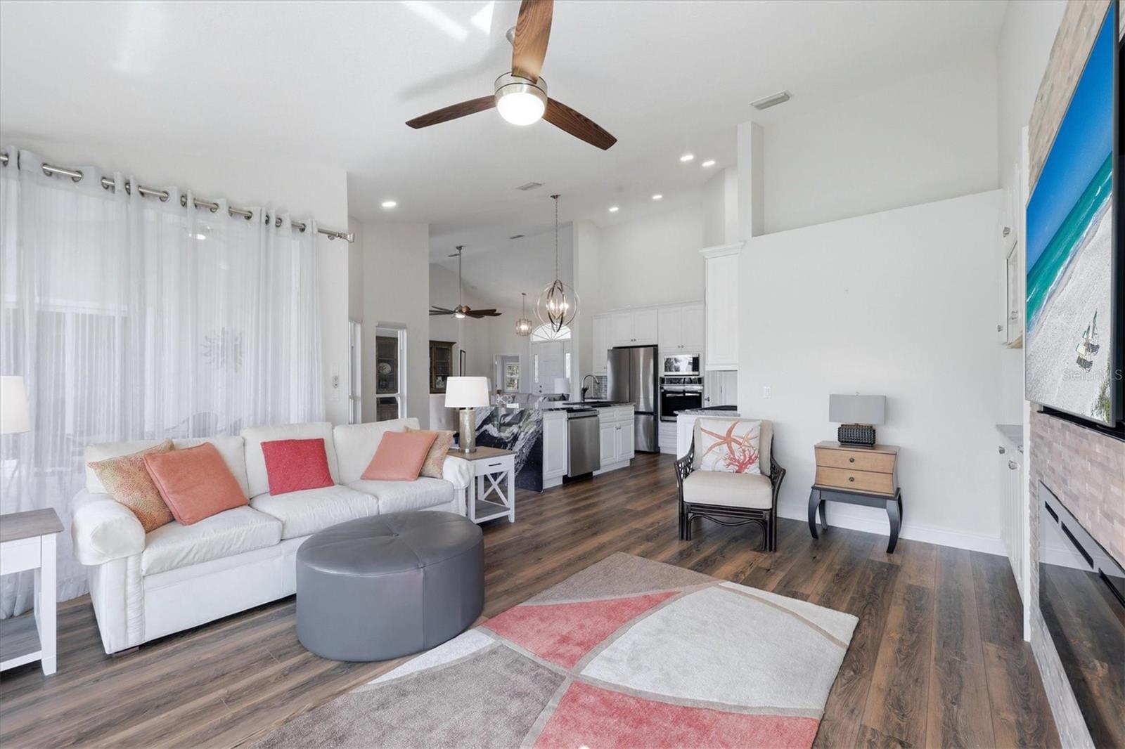 ESTA CASA EXCEPCIONAL, PRONTA PARA MOVIMENTO, TOTALMENTE MOBILIADA E BONITAMENTE DECORADA OFERECE EXCELENTE APELO DE MEIO-FILHO, idealmente situada em um lote premium com paisagismo maduro, a apenas uma curta distância das comodidades de primeira classe de Riverwood. A partir do momento de sua chegada, a propriedade exala charme e elegância, apresentando uma garagem lateral, uma grande entrada em arco e tetos altos que melhoram a sensação de espaço da casa. Esta desejável residência personalizada oferece suítes de dois quartos e um escritório/escritório, localizada no condomínio fechado em estilo resort de Riverwood, na tranquila e pitoresca subdivisão de Stonebridge. Projetada para conforto e entretenimento, a planta aberta e iluminada apresenta tetos de alto volume. A cozinha renovada é o sonho de um chef, com uma ilha personalizada, armários de madeira maciça de 42 ", bancadas de granito, backsplash de azulejos bem equipados, balcão de café da manhã, despensa, fogão de indução de aço inoxidável e eletrodomésticos de luxo LG e Bosch. O luxuoso piso de pranchas de vinil flui perfeitamente por todos os quartos. A lavanderia atualizada inclui bancadas de quartzo, uma lavadora e secadora, um pia de aço inoxidável de grandes dimensões e amplo armazenamento. A suíte principal totalmente remodelada oferece um closet espaçoso e um banheiro privativo lindamente atualizado, enquanto o quarto de hóspedes possui seu próprio banheiro privativo - perfeito para receber familiares ou convidados. Saia para a serena varanda coberta/quarto da Flórida, ideal para manhãs tranquilas ou noites relaxantes, todos com vista para a bela fachada de água. Uma pintura interior e exterior fresca e tratamentos de janela personalizados, incluindo persianas motorizadas e de plantação. Riverwood é um condomínio fechado de golfe em estilo resort que oferece uma variedade de comodidades, incluindo resort e piscinas, academia, tênis, pickleball, croquet, bocha, estúdio de arte, biblioteca e parque para cães. praias, passeios de barco, restaurantes, compras e atrações culturais Agende hoje mesmo sua exibição privada e experimente o que há de melhor no estilo de vida da Flórida.