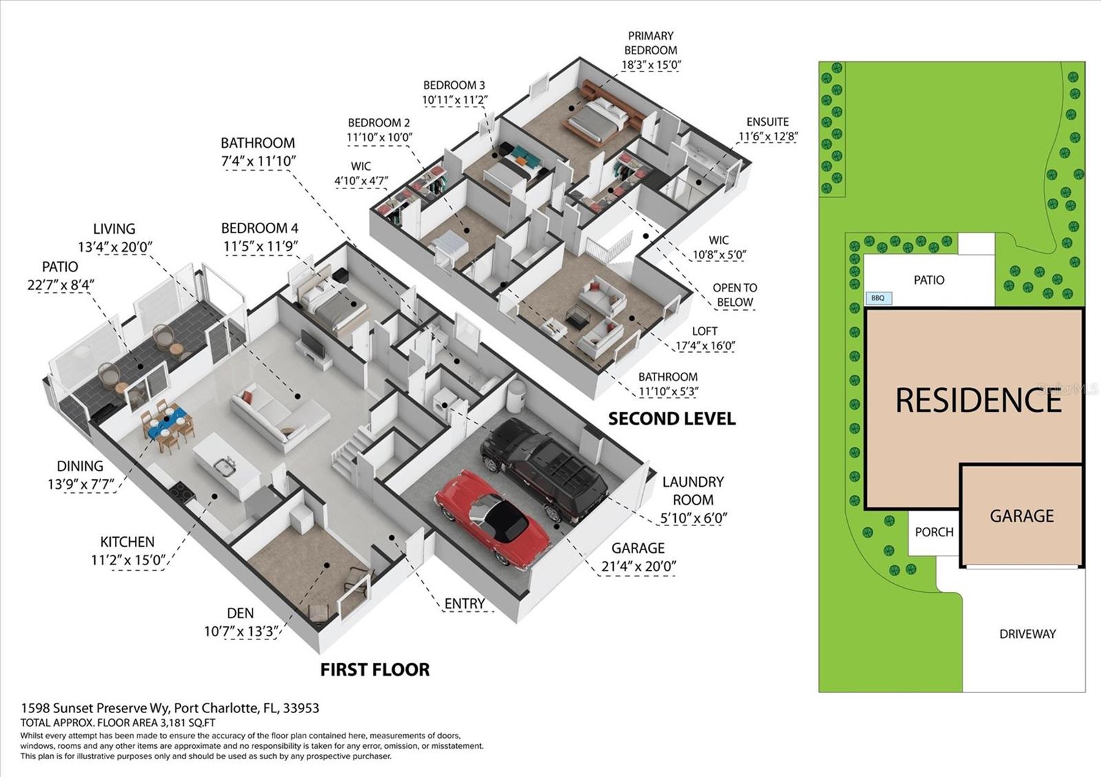 BEM-VINDO A CASA no Sunset Preserve Way, onde você pode apreciar o pitoresco pôr do sol da costa do Golfo em sua varanda todas as noites por um valor imbatível! Se você precisa de espaço para seus próprios familiares, para os hóspedes ficarem - ou AMBOS - esta planta Amalfi de 4 quartos e 3 banheiros da Lennar possui mais de 2.500 pés quadrados de área de estar e foi cuidadosamente projetada para toda a família desfrutar! Construída em 2023, esta casa foi atualizada com tudo o que você precisa e mantida meticulosamente pelos proprietários. É realmente como comprar uma casa nova - com todos os retoques finais já feitos para você! O primeiro andar é o sonho de qualquer artista. Sua cozinha branca e cintilante fica ao lado da sala de estar, para que o chef da família não perca a conversa, o grande jogo ou a noite de cinema enquanto prepara todos os lanches. Uma ilha enorme com bancadas de granito reluzentes e um balcão de café da manhã separa os dois espaços, tornando-o o local perfeito para servir aperitivos, descarregar sacolas de compras ou fazer lição de casa. Uma sala de jantar/sala de estar formal E uma cozinha para refeições oferecem opções para utilizar os espaços como você preferir! Como se não bastasse, o primeiro andar também abriga um quarto completo e um banheiro completo, tornando-o um local perfeito para receber hóspedes de fora da cidade, familiares ou ideal para uso multigeracional em tempo integral! O segundo andar está idealmente afastado dos hóspedes para a família do proprietário dormir, viver e relaxar. No andar de cima, você encontrará uma enorme sala de bônus/área de loft para uma sala de jogos, área de mídia/jogos ou até mesmo uma sala de cinema completa (completa com a máquina de pipoca) para noites de cinema em família. Você passará por dois quartos de hóspedes com closets, um banheiro no corredor com pias DUPLAS e banheira/chuveiro atrás de uma porta separada, no caminho para a espaçosa suíte do proprietário. Este espaço é o seu retiro noturno, com um enorme closet, pias duplas no banheiro, chuveiro e armário de roupa de cama. Este piso foi realmente projetado para fornecer a todos em sua família seu próprio espaço, mas ainda assim reuni-los para criar memórias por muitos anos. Atualizações notáveis incluem: persianas e cortinas internas, luminárias, ventiladores de teto com controles remotos, amaciante de água para toda a casa, filtro RO sob a pia da cozinha, sistema de segurança (todos os equipamentos para transportar, o comprador pode ter contrato próprio com ADT para ativar), paisagismo personalizado e iluminação externa, cerca de ferro forjado para um quintal privado, pisos de epóxi na garagem, porta de garagem com isolamento de valor "R", TVs montadas na varanda e na área de ginástica na garagem (ambas transmitem). Se você deseja um estilo de vida ativo, a comunidade planejada de West Port oferece tudo: um playground comunitário em sua própria rua, passeios noturnos pelo Centennial Park, mergulhando na Centennial Pool e encontrando amigos no centro comunitário (opcional para participar). O paisagismo está incluído em suas taxas BAIXAS de HOA para uma vida sem manutenção! Você tem inúmeras opções de compras e restaurantes no Cocoplum Village Shops, (3,6 milhas), no Port Charlotte Town Center (3 milhas) ou até mesmo no centro de Wellen Park, que fica a menos de 20 minutos de carro. Esteja no meio de tudo isso por um preço incrível, morando a apenas 30 minutos do Aeroporto de Punta Gorda E das belas praias do Golfo da Flórida. Existem muito poucas opções de possuir este piso em qualquer lugar da nossa região - e NÃO por esse preço! Com a combinação perfeita de PLANTA CERTA, LOCALIZAÇÃO CONVENIENTE e VALOR IMBATÍVEL - esta casa oferece tudo que você precisa para se mudar e começar a viver seus sonhos na Flórida.