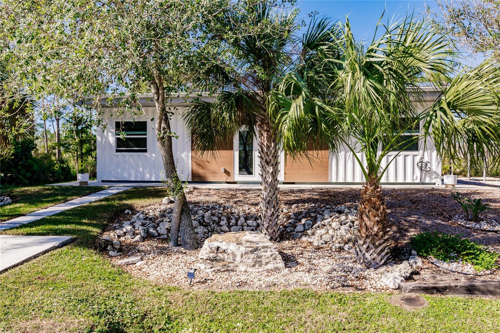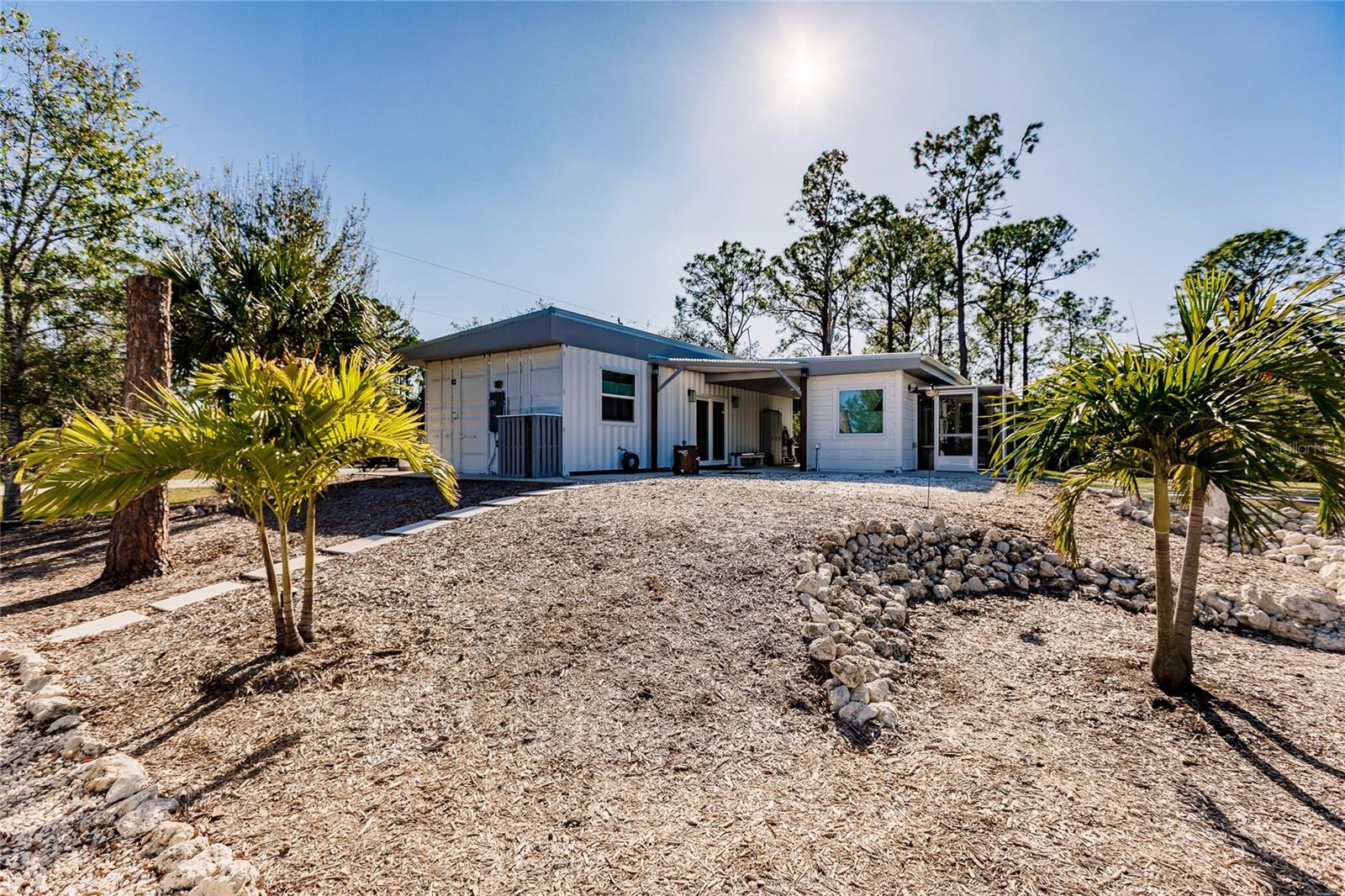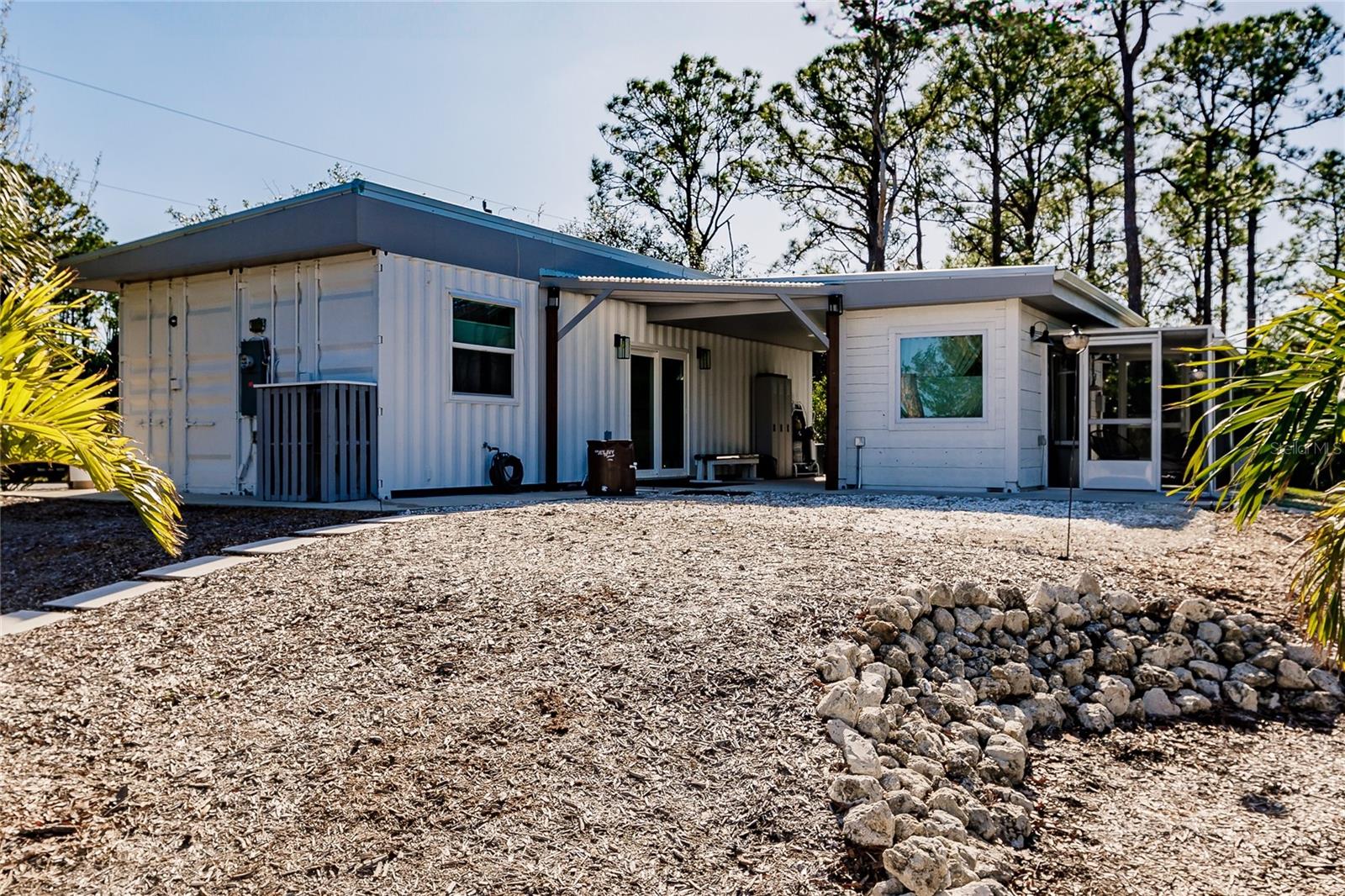 Um raro conceito minimalista num local sereno. Esta casa contêiner moderna, durável e com baixo consumo de energia fica perfeitamente situada em quase 1/2 acre de apoio à deslumbrante Reserva Myakka. Oferecendo uma mistura perfeita de vida moderna e imersão na natureza. O design minimalista da casa, combinado com grandes janelas e portas de vidro de impacto, convida a entrada de luz natural, mantendo uma estreita ligação com o exterior. O bangalô nos fundos com banheiro completo e kitchenette é ideal como suíte Master, guest house, home office ou Airbnb. A combinação do metal e da madeira confere a esta casa um ar industrial contemporâneo, perfeito para quem aprecia a estética urbana num ambiente natural. Aproveite o seu café da manhã enquanto aprecia a vista dos belos pinheiros, pássaros, borboletas e os sons orgânicos da floresta. A ampla área de estacionamento oferece muito espaço para todos os seus veículos aquáticos, campistas, motocicletas e carros. Fazendo fronteira com os condados de Charlotte e Sarasota, você está a poucos minutos de todas as conveniências de compras, praias, caminhadas, I-75 e do recém-construído Cool Today Park, onde você pode desfrutar de um jogo de bola com o treinamento de primavera do Atlanta Braves. Com a sua elegância simples e ambiente natural, esta casa é um retiro tranquilo para quem procura mergulhar na natureza. Uma casa que resiste ao teste do tempo, construída e projetada para suportar o clima rigoroso da Flórida, um investimento em qualidade duradoura e tranquilidade. Venha e testemunhe por si mesmo.