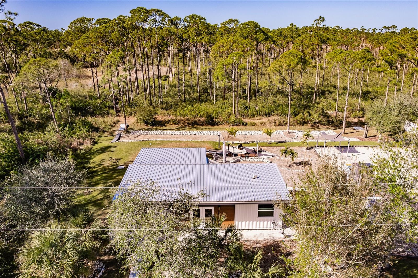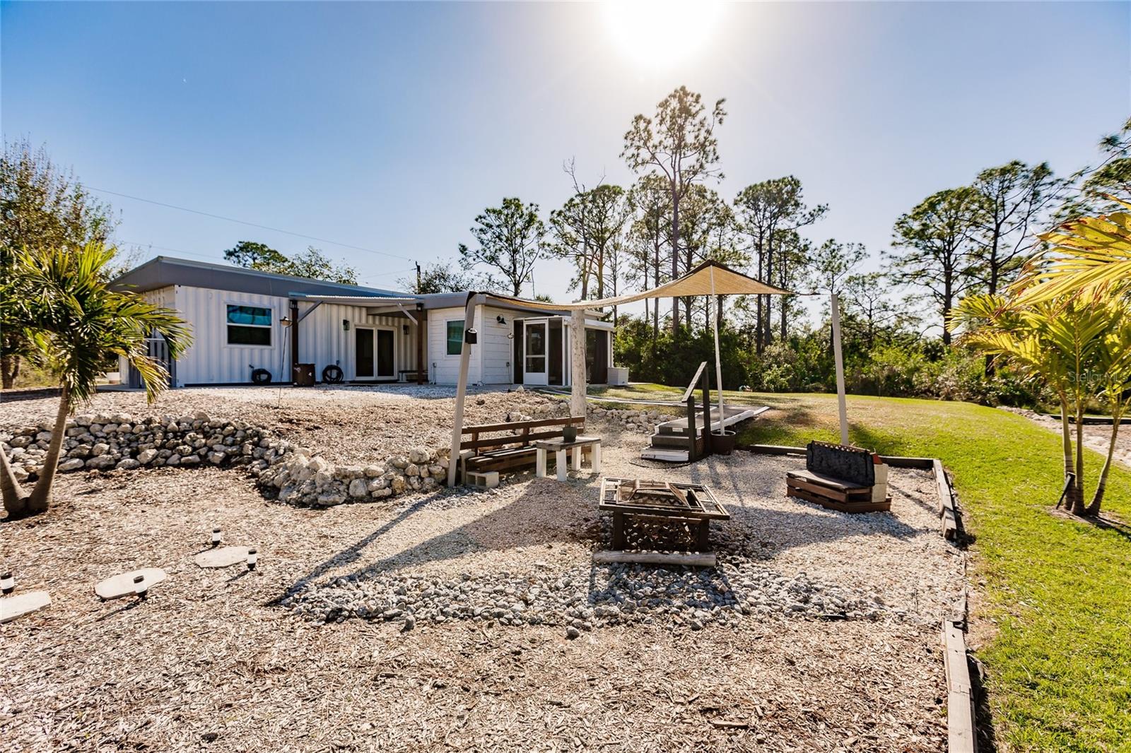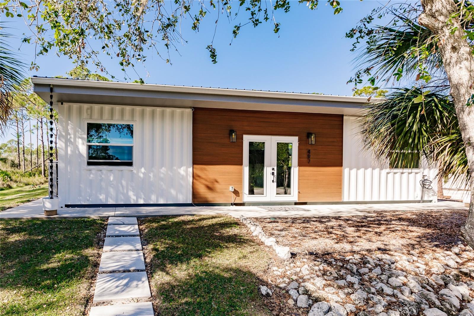 Um raro conceito minimalista num local sereno. Esta casa contêiner moderna, durável e com baixo consumo de energia fica perfeitamente situada em quase 1/2 acre de apoio à deslumbrante Reserva Myakka. Oferecendo uma mistura perfeita de vida moderna e imersão na natureza. O design minimalista da casa, combinado com grandes janelas e portas de vidro de impacto, convida a entrada de luz natural, mantendo uma estreita ligação com o exterior. O bangalô nos fundos com banheiro completo e kitchenette é ideal como suíte Master, guest house, home office ou Airbnb. A combinação do metal e da madeira confere a esta casa um ar industrial contemporâneo, perfeito para quem aprecia a estética urbana num ambiente natural. Aproveite o seu café da manhã enquanto aprecia a vista dos belos pinheiros, pássaros, borboletas e os sons orgânicos da floresta. A ampla área de estacionamento oferece muito espaço para todos os seus veículos aquáticos, campistas, motocicletas e carros. Fazendo fronteira com os condados de Charlotte e Sarasota, você está a poucos minutos de todas as conveniências de compras, praias, caminhadas, I-75 e do recém-construído Cool Today Park, onde você pode desfrutar de um jogo de bola com o treinamento de primavera do Atlanta Braves. Com a sua elegância simples e ambiente natural, esta casa é um retiro tranquilo para quem procura mergulhar na natureza. Uma casa que resiste ao teste do tempo, construída e projetada para suportar o clima rigoroso da Flórida, um investimento em qualidade duradoura e tranquilidade. Venha e testemunhe por si mesmo.