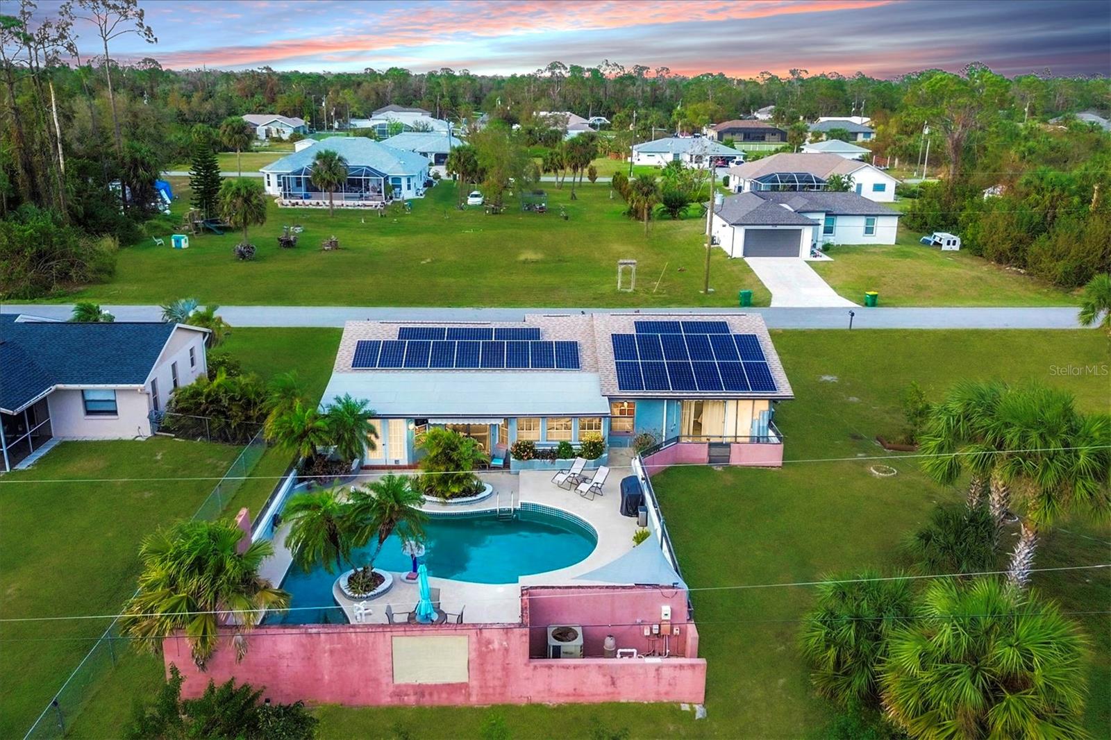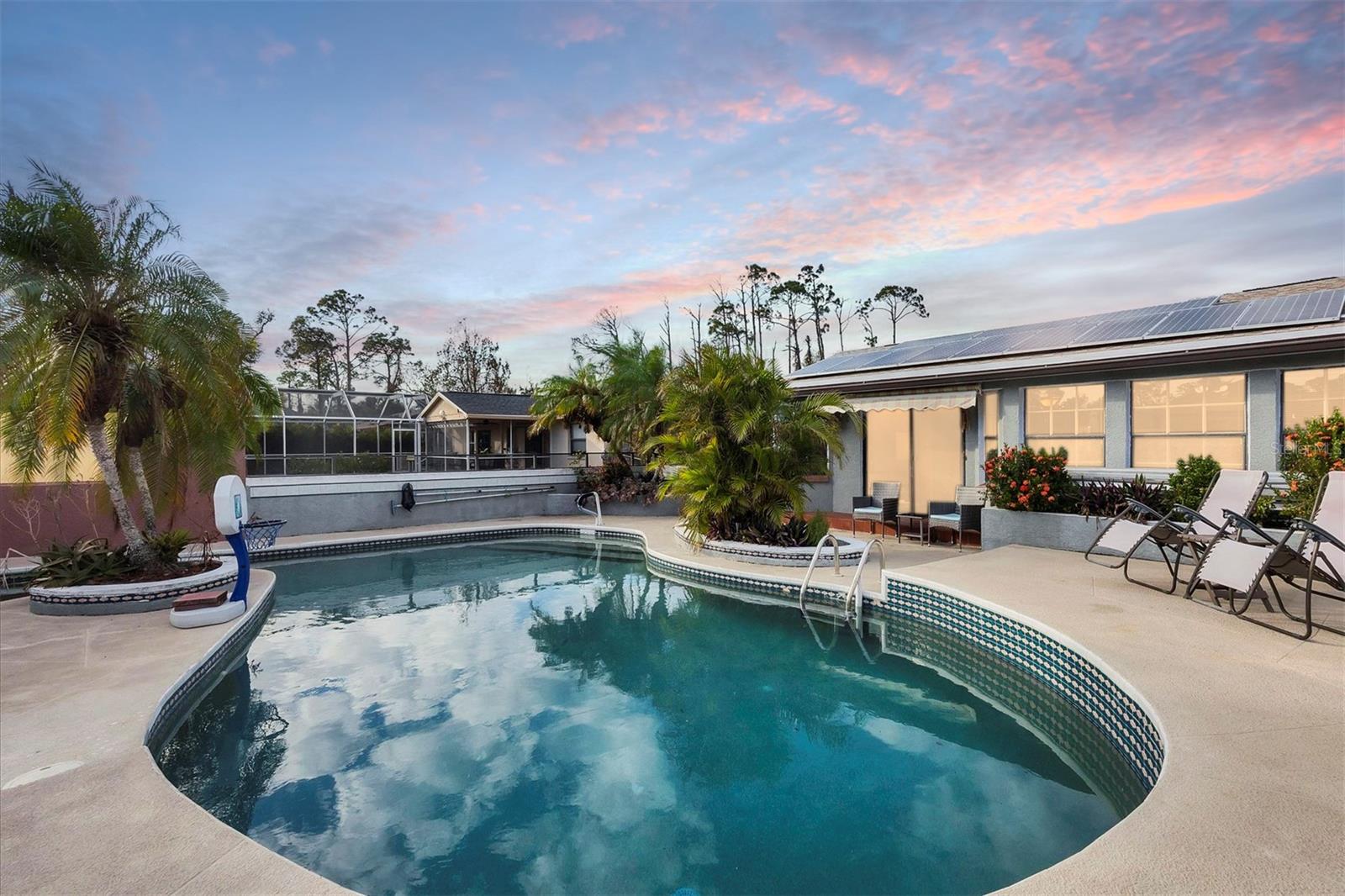 Bem -vindo à 15099 Community Ave, seu retiro ideal de Port Charlotte! Esta casa de água salgada de água salgada unifamiliar de 3 quartos e 2 banheiros mantinha com 3 quartos é alimentada por energia solar e a energia solar é paga. A conta média mensal de eletricidade varia de US $ 64 a US $ 150/ mês, dependendo da temporada. A casa fica em um lote duplo expansivo, pouco menos de meio hectare, oferecendo liberdade e flexibilidade sem taxas de HOA ou CDD. Entre e experimente o layout arejado de quartos divididos, destacada por uma espaçosa cozinha com uma barra de café da manhã, geladeira mais recente e fogão. A suíte master é um verdadeiro santuário com elegantes pisos de madeira, uma área de estar aconchegante e uma entrada privada para a área da piscina. Inclui um closet e o banho de suíte oferece um armário de linho, uma vaidade e um chuveiro. Cada quarto adicional fornece toques exclusivos: o segundo quarto inclui um closet e o terceiro abre através de controles deslizantes para a área da piscina. A área externa é um verdadeiro oásis. A piscina de água salgada, ressurgida com uma nova bomba, é uma luxuosa configuração de 21.000 galões perfeita para o prazer durante todo o ano. Os dosséis retráteis instalados em 2021 oferecem sombra sobre o deck da piscina para aqueles dias quentes. Os painéis solares adicionados em 2022 que são totalmente pagos, alimentam toda a casa, tornando essa propriedade tão eficiente em termos de energia quanto bonita. A casa também possui um novo telhado (2023), um aquecedor de água quente de 3 anos, um novo sistema de A/C em folha e uma garagem de um carro de grande porte. Um sistema de vigilância bem posicionado fornece tranquilidade, e o grande espaço de lot duplo significa muito espaço para adicionar seu toque pessoal. Tudo isso, além da conveniência de compras próximas, praias, campos de golfe e opções de barco. Não perca a chance de possuir esta jóia única que combina conforto, eficiência e um local fantástico!