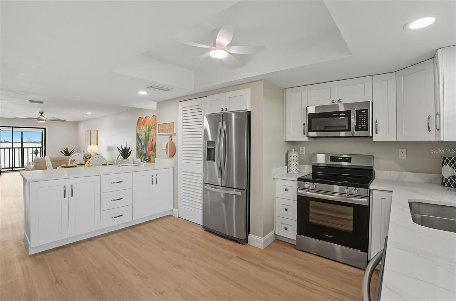 Condomínio deslumbrante à beira -mar com vistas de tirar o fôlego de Charlotte Harbor! Entre nessa residência completamente reformada e seja cativada pelas espetaculares vistas da água no momento em que você entra. Cada detalhe foi atualizado cuidadosamente, criando um retiro novo, moderno e de inspiração costeira. A cozinha reprojetada oferece um layout de conceito aberto com bancadas de quartzo, armários personalizados, utensílios de aço inoxidável e uma lavadora/secadora empilhável conveniente. O piso de tábua de vinil de luxo flui perfeitamente, adicionando estilo e durabilidade. A espaçosa suíte primária apresenta um banho de suíte com bancadas de mármore e acabamentos elegantes, enquanto o quarto de hóspedes desfruta de acesso direto ao segundo banho atualizado com bancadas de quartzo. Relaxe na varanda privada e aprecie as vistas deslumbrantes do porto - perfeitas para o café da manhã ou o pôr do sol à noite. Dois armários de armazenamento adicionam conveniência, enquanto atualizações recentes, incluindo um novo sistema Trane HVAC, novo aquecedor de água quente e o telhado de 2022 garantem a paz de espírito. Com seu piso plano aberto, acabamentos de alta qualidade e cenário imbatível à beira-mar, este condomínio é a mistura perfeita de conforto e estilo. Não perca esta oportunidade - Escreva sua exibição particular hoje!