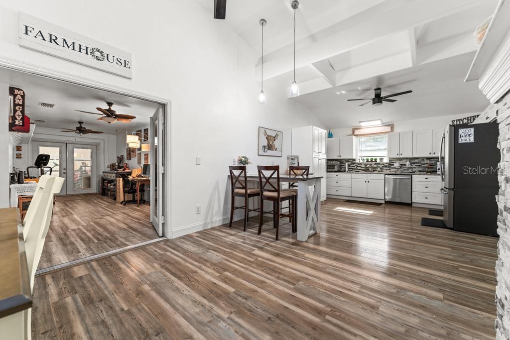 Descubra esta joia escondida da mecânica com garagens grandes situadas no cobiçado bairro de Harbor Oaks - uma propriedade verdadeiramente imperdível! Totalmente renovada em 2018, esta casa combina o charme clássico com atualizações modernas. A sala de estar formal, com uma lareira aconchegante, conecta-se perfeitamente à sala de jantar, toda sob tetos altos com vigas falsas elegantes que acrescentam uma sensação de abertura e grandeza. A cozinha é o sonho de um chef, equipada com eletrodomésticos de aço inoxidável, bancadas de granito, backsplash de azulejos e uma conveniente barra de café da manhã. Com amplo armário e balcão, é perfeito para receber familiares e amigos. As portas francesas levam à convidativa sala familiar, enquanto uma escada leva você ao santuário do segundo andar. A ampla suíte master, localizada no segundo andar, é um verdadeiro retiro. Inclui área de estar, espaço de escritório, closet e portas francesas que abrem para uma varanda privativa. O luxuoso banheiro privativo possui pias duplas divididas, penteadeira, banheira de hidromassagem, chuveiro separado, sauna e até cama de bronzeamento. As conexões de lavadora/secadora também estão convenientemente localizadas na suíte master. Os quartos 2 e 3, juntamente com 2 casas de banho, estão situados no primeiro andar. A casa foi projetada com muitas opções de armazenamento e oferece vários recantos aconchegantes para relaxar e descontrair. A garagem para quatro carros oferece amplo espaço para veículos e armazenamento, e com quase um quarto de acre de terreno, há muito espaço para equipamentos recreativos e brinquedos. Localizado a poucos minutos do Centro Espacial Kennedy, você terá assentos na primeira fila para todos os lançamentos de foguetes. Desfrute de pesca ou explore Ponce Inlet e a Intracoastal Waterway nas proximidades de barco. os entusiastas da observação de pássaros vão adorar os avistamentos frequentes de águias-pescadoras, falcões, águias e outras aves aquáticas. Convenientemente perto de lojas e restaurantes, e a uma curta distância de carro das praias de New Smyrna e Daytona - esta casa realmente tem tudo. Não perca esta oportunidade incrível – agende sua exibição privada hoje mesmo, antes que acabe!