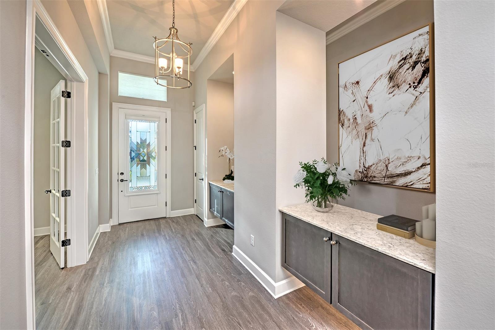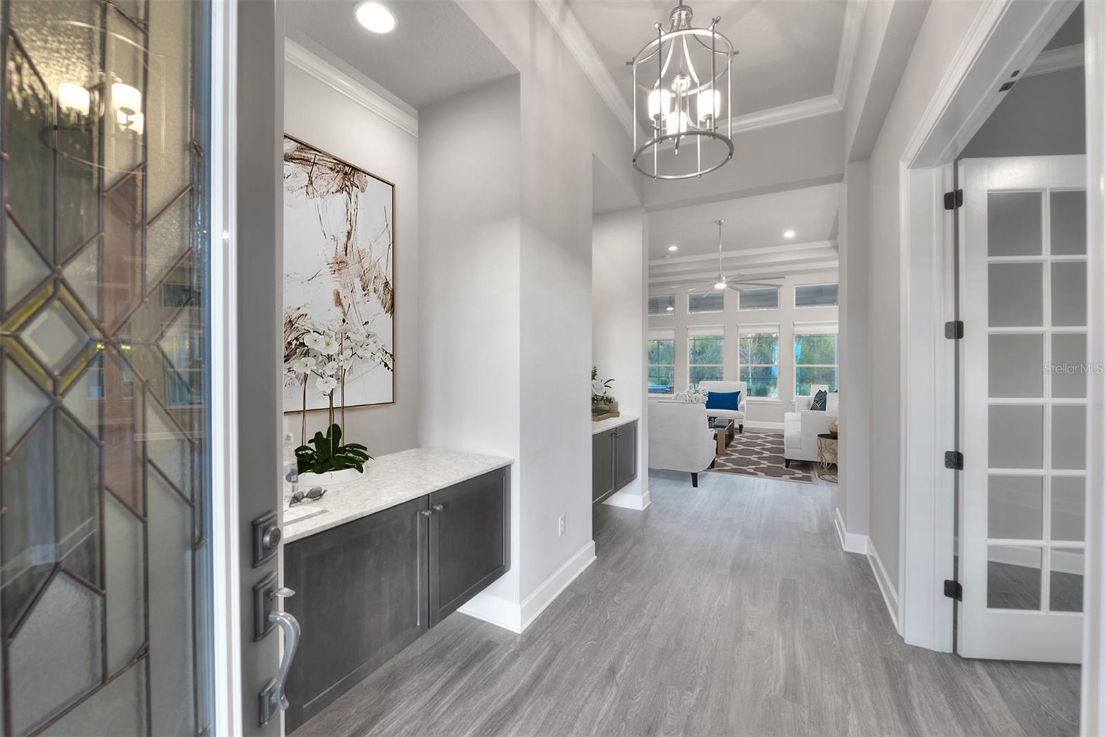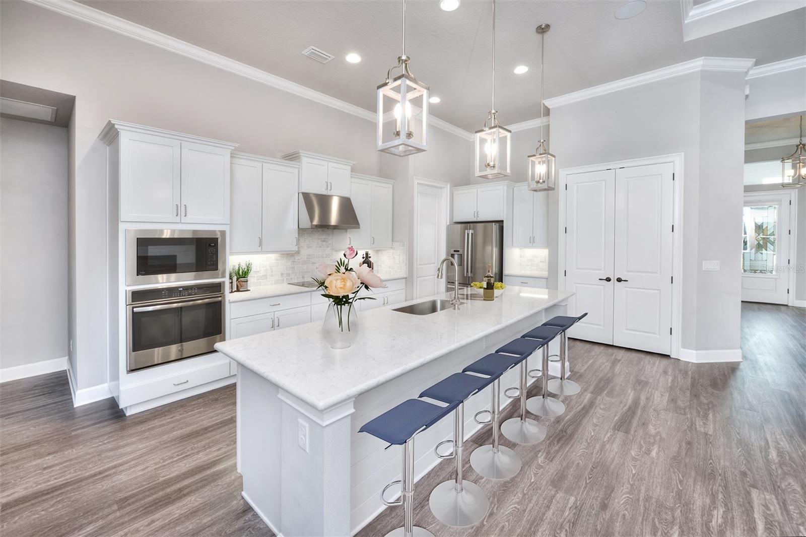 Sob ofertas de backup que aceitam contratos. Uma ou mais fotos foram praticamente encenadas. Casa requintada de um andar com recursos luxuosos e comodidades privadas do tipo resort. Esta casa excepcional de um andar e de 3 carros combina perfeitamente acabamentos sofisticados com uma sensação de conforto e sofisticação. O layout de conceito aberto, meticulosamente projetado e nomeado, apresenta quatro quartos espaçosos, escritório (5º quarto) e três banheiros e meio. A grande sala é destacada por uma parede com sotaque de navio, completa com uma lareira que cria um ambiente acolhedor e uma ampla parede de janelas que convidam luz natural para preencher o espaço. No coração da casa, a cozinha do chef oferece uma abundância de armários personalizados, uma grande ilha central, bancadas de quartzo e utensílios de aço inoxidável premium - criando um espaço ideal para reuniões familiares e empreendimentos culinários. A sala de jantar adjacente oferece uma transição perfeita para entretenimento. A luxuosa suíte do proprietário é banhada em luz natural e mostra um intrincado teto duplo, com portas duplas que se abrem para um banho de spa. A impressionante banheira de imersão oval, iluminada por um lustre deslumbrante e emoldurada por uma parede de características de azulejo em cachoeira, serve como o ponto focal da sala. O banho também inclui um espaçoso chuveiro personalizado, vaidades duplas, um armário de água separado e um impressionante closet que leva diretamente para a lavanderia convenientemente localizada. Em toda a casa, o piso de ponta flui perfeitamente de sala em sala, sem transições, melhorando a sensação coesa e luxuosa do espaço. Fibras e cabo são instalados, garantindo a conectividade moderna por toda parte. Projetado com entretenimento em mente, o Lanai é um extraordinário espaço ao ar livre, com uma cozinha ao ar livre de classe marinha completa com uma grelha, queimador lateral, exaustor com ventiladores duplos, geladeira, pia com descarte e amplo espaço de contador. Relaxe no ambiente sereno ao ar livre enquanto desfruta da cachoeira em cascata do spa aquecido, que flui para a piscina abaixo. Todo o espaço é aprimorado pela iluminação controlada remota, um chuveiro ao ar livre e plantações altas de paisagismo que oferecem privacidade e reclusão. A casa volta a uma reserva pacífica, aumentando ainda mais o ambiente tranquilo. Destaques adicionais incluem pisos duráveis de garagem com revestimento epóxi, aquecedor de água híbrido, Grundfos recirculando a bomba de água quente instantânea, alto-falantes de teto para o som surround na sala de estar e no sistema de armazenamento de teto de 8 'de garagem. Additional features to be added the week of August 2nd include a new whole house water filtration & water softener system plus a new 77” LG flat screen TV. The home is also equipped with Eufy floodlights, IP cameras, and automated controlled lighting in the halls, bathrooms, and garage for added convenience and security. A private well, installed during construction, serves the home's automated irrigation system and can also be utilized for other outdoor needs. This is truly Um retiro privado, semelhante ao resort, uma combinação incomparável de elegância, funcionalidade e conforto Pontos de atualizações adicionais estão disponíveis. O Spruce Creek Fly-In Country Club oferece associações abertas ao público, você não precisa ser um residente da comunidade para participar. Desfrute de acesso a excepcionais de golfe, refeições e comodidades sociais em uma das comunidades mais exclusivas do AirPark privadas do país. Observação: alguns móveis em fotos foram praticamente encenados.
