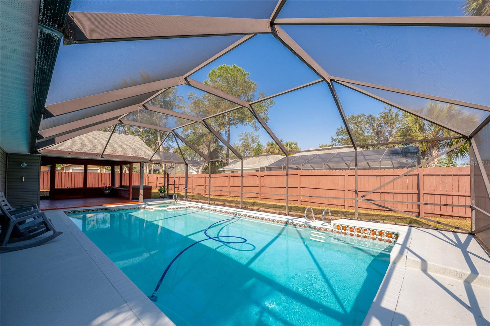 Piscina em casa em Port Orange! Bem -vindo a esta bela casa de 3 quartos, 2 banheiros, aninhada na pacífica comunidade Lone Oaks. Novo telhado com oferta aceitável. A planta baixa e o layout do conceito aberto oferece um design espaçoso e convidativo, perfeito para uma vida e entretenimento confortáveis, com pisos de superfície sólidos para facilitar o atendimento. A grande sala de estar apresenta tetos abobadados e clarabóias que banham a sala sob luz solar natural. A aconchegante lareira a lenha oferece um espaço convidativo para relaxamento e reuniões. A planta aberta conecta perfeitamente a sala de estar à cozinha, onde você encontrará armários brancos nítidos, bancadas em granito e um pacote completo de aparelhos de aço inoxidável. O quarto primário generoso oferecendo um closet e um banheiro completo com vaidade de pia dupla, banheira de jardim relaxante e chuveiro ... continuação. Dois quartos adicionais, ambos com armários, oferecem amplo espaço para a família, os hóspedes ou um escritório em casa. Saia do espaçoso pátio com vista para a piscina cintilante, convidando você a se refrescar e relaxar durante os dias quentes de verão e a banheira de hidromassagem é o lugar perfeito para relaxar após um longo dia de trabalho ou brincar. O quintal totalmente cercado garante privacidade e segurança, tornando -o ideal para animais de estimação ou brincadeiras. Situado no coração de Port Orange, esta casa fica a poucos minutos das praias intracosais e intocadas e uma variedade vibrante de opções de refeições, compras e entretenimento. Aproveite o melhor da Flórida que vive com tudo o que você precisa na sua porta. Não perca a oportunidade de possuir esta excepcional em casa. Todas as informações registradas no MLS devem ser precisas, mas não podem ser garantidas.