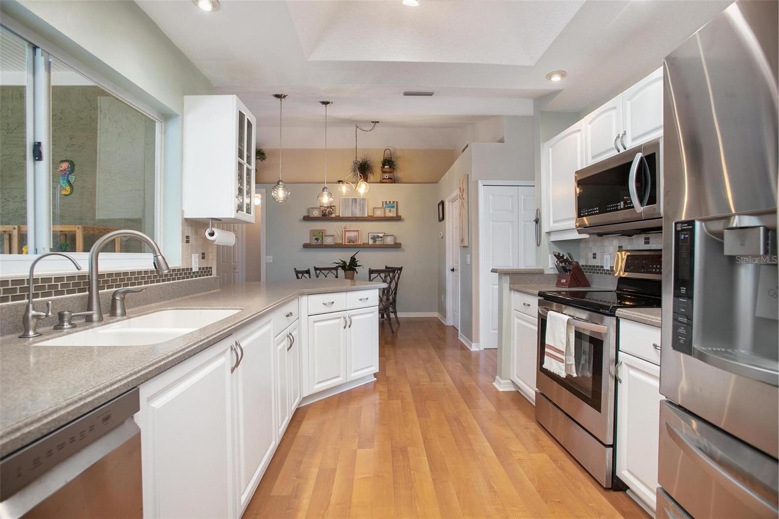 Bem-vindo a esta casa de tijolos de 3 quartos e dois quartos, aninhada no bairro de West Countryside. Oferecendo 1.850 pés quadrados de espaço de vida cuidadosamente projetado, esta residência possui tetos altos, uma planta baixa desejável e atualizações de bom gosto por toda parte. À medida que você se aproxima, você será recebido por um exterior paisagístico com bom gosto e uma nova redução de concreto (2024), definindo o tom para o cuidado e a atenção dada a esta casa. No interior, um fluxo contínuo conecta as áreas de cozinha, vida e jantar, ideais para entretenimento ou conforto diário. A cozinha possui utensílios de aço inoxidável, tetos de bandeja, amplo espaço no armário e uma vista para o lindamente paisagismo quintal. A espaçosa suíte primária oferece um grande armário e um banheiro privativo com bom gosto, com uma vaidade de pia dupla, banheira de imersão e chuveiro encerrado de vidro. A sala possui um controle deslizante expansivo que preenche o espaço com luz natural e abre para um oásis de pátio traseiro selecionado (novo gabinete de tela 2023). Destaques adicionais incluem um telhado de 2019 com uma garantia de 10 anos transferível, lavanderia interna e um aquecedor de água quente com menos de um ano de idade. Saia para desfrutar de um quintal generoso completo com áreas de pátio decorado, uma fogueira de pedra, paisagismo de palmeiras e um lago tranquilo - todos cercados por cercas de caixa de sombra de madeira para privacidade. Um galpão de armazenamento também está incluído para maior conveniência. Localizado em um lote de tamanho confortável em uma comunidade pacífica e bem estabelecida, esta casa verifica todas as caixas para estilo, função e valor. Agende sua exibição particular hoje!