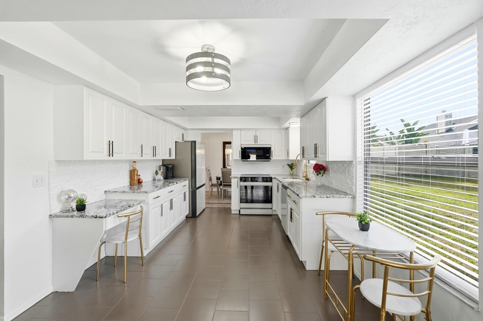 Esta casa atualizada está situada em um beco sem saída em um bairro estabelecido de Port Orange. A propriedade encontra-se totalmente vedada, proporcionando espaço exterior definido e separação dos lotes vizinhos. As atualizações interiores estão presentes em toda a casa. A área de estar principal inclui lareira e se conecta aos espaços de estar e jantar adjacentes. Ambas as casas de banho foram atualizadas com acabamentos contemporâneos. A cozinha conta com eletrodomésticos atualizados, amplos armários e arrumação funcional, oferecendo um layout prático para o uso diário. O quarto principal inclui banheiro privativo com banheira de hidromassagem. Uma varanda frontal com tela oferece espaço externo coberto adicional, e o quintal oferece amplo espaço para vida ao ar livre ou melhorias futuras, incluindo o potencial para uma piscina, sujeito às regulamentações locais. Atualizações adicionais incluem um novo telhado. A casa está convenientemente localizada perto de escolas, parques, lojas, restaurantes e principais rodovias, proporcionando acesso a comodidades e serviços locais.