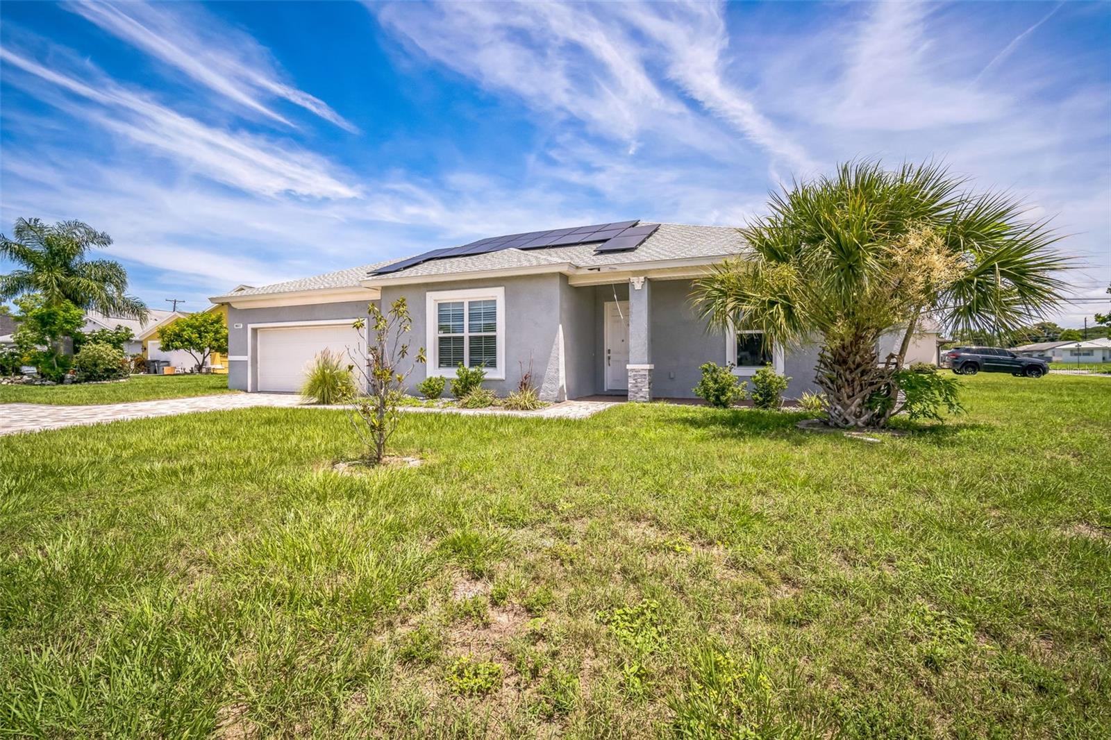 Bem -vindo à sua casa de sonho na encantadora comunidade Jasmine Lakes! Esta impressionante residência de um andar de 4 quartos e 2 banheiros fica em um espaçoso lote de canto de 0,20 acres, oferecendo 2.095 pés quadrados de espaço de estar lindamente decorado, ideal para famílias, entretenimento e vida na Flórida. Os principais recursos incluem um design de conceito aberto que conecta perfeitamente as áreas de estar, refeições e cozinhas, perfeitas para reuniões e facilidade diária. Cozinha gourmet equipada com utensílios de aço inoxidável, bancadas em granito e armários elegantes. Retiro de suíte master com pias duplas, uma banheira de imersão separada e um chuveiro. Nenhuma taxa de HOA ou CDD é igual a mais economia e liberdade. Boost de eficiência energética com um sistema solar instalado, reduzindo os custos de serviços públicos. Os pisos de ladrilhos cerâmicos de baixa manutenção fornecem uma paleta neutra pronta para seus toques pessoais. A garagem anexa de 2 carros e estacionamento de garagem por conveniência. Varanha traseira cercada e tela, ideal para divertir ou desfrutar de um tempo ao ar livre tranquilo. Destaques adicionais incluídos, construídos em 2020 com bloco robusto e estuque, um local de canto que oferece mais espaço e charme. Comunidades comunitárias: calçadas, vistas para a água, sem taxas restritivas e acesso conveniente aos EUA-19, vinculando você a compras, restaurantes, centros médicos, entretenimento, Jasmine Lakes Plaza, parques e serviços essenciais em poucos minutos.