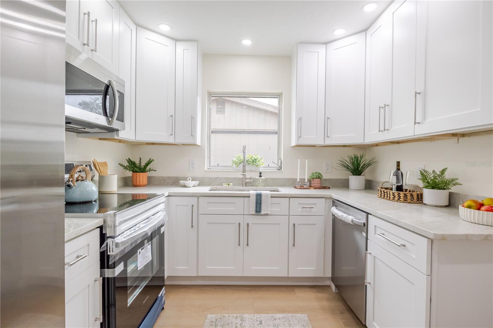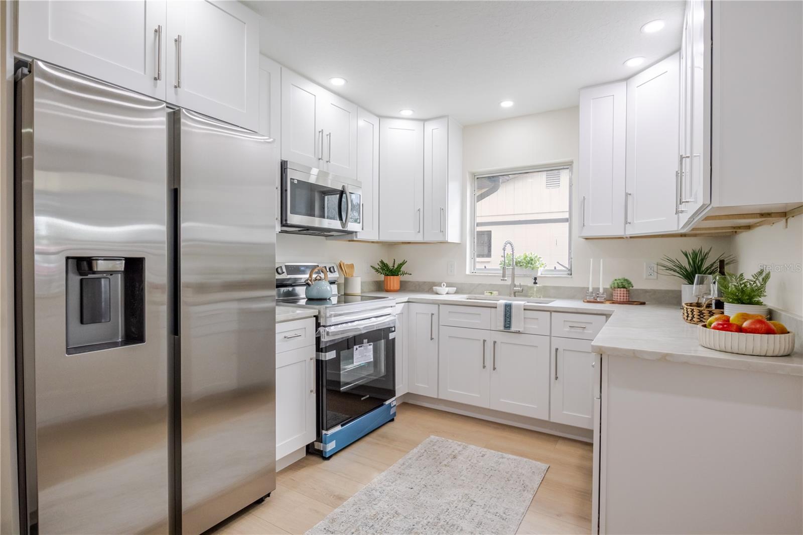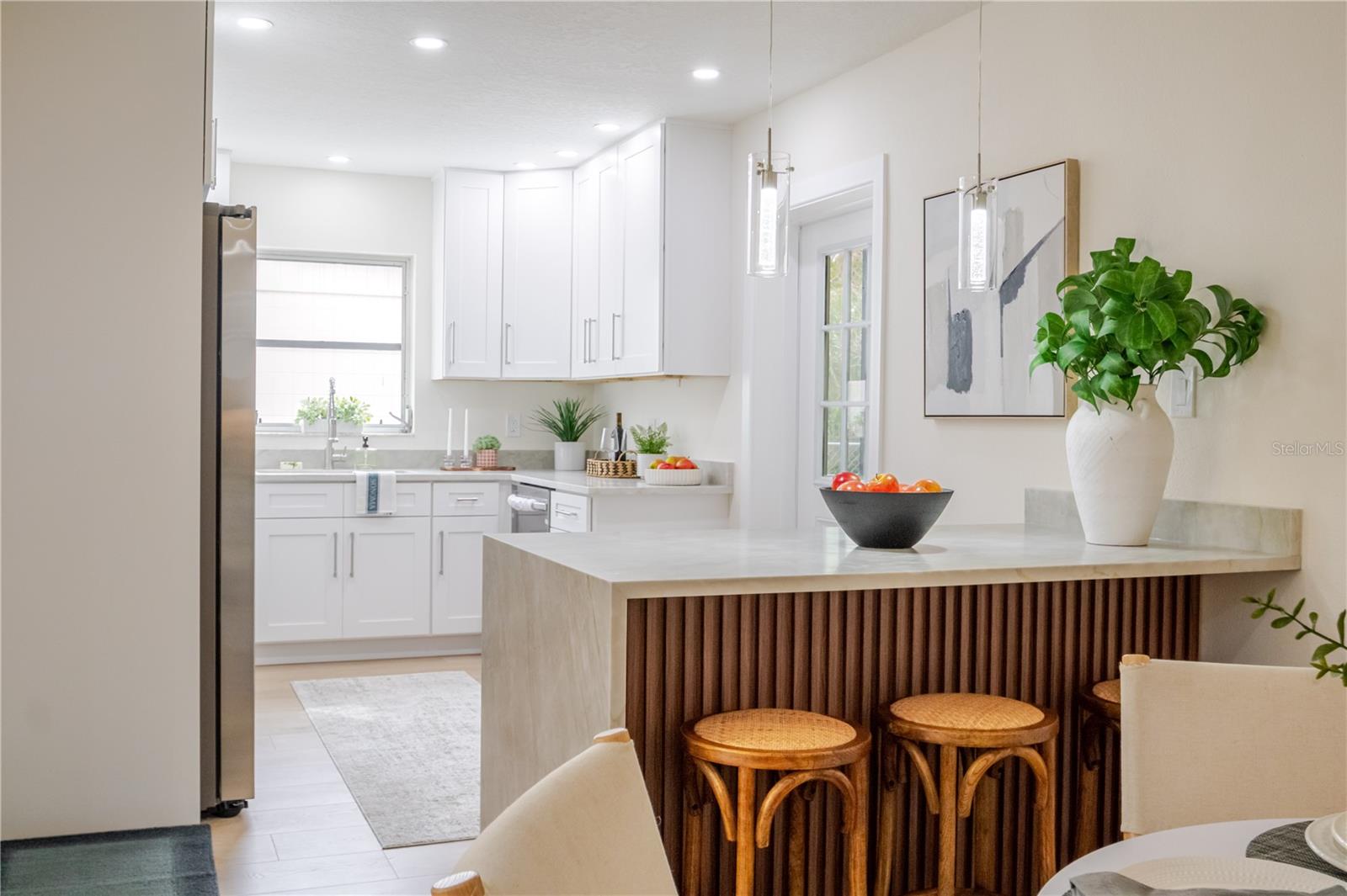Bem-vindo a esta casa lindamente renovada de 3 quartos, 2 banheiros e piscina de 1.214 pés quadrados na muito procurada área de Port Richey - sem zona de inundação, com telhado de 2025 e sistema AC de 2017. Entre para descobrir um layout claro e convidativo, projetado para conforto e entretenimento no dia a dia. O interior apresenta uma nova camada de tinta por dentro e por fora e um novo piso de pranchas de vinil de luxo por toda parte, criando uma aparência limpa e coesa em todos os quartos. A cozinha apresenta armários shaker brancos contemporâneos, bancadas de quartzo branco fresco, um conjunto completo de novos eletrodomésticos de aço inoxidável e uma península com um aconchegante balcão para café da manhã. Ambos os banheiros apresentam designs modernos de azulejos, penteadeiras elegantes com tampos de quartzo e encanamentos e luminárias elegantes. Nos fundos, uma grande piscina protegida e um pátio espaçoso criam o cenário perfeito para relaxar ou se divertir. A garagem para dois carros oferece armazenamento generoso e conexões convenientes para lavadora e secadora. Idealmente localizado a poucos minutos de lojas, restaurantes e entretenimento, com fácil acesso à US-19 e à Suncoast Parkway para um deslocamento rápido até Tampa ou às praias. Esta casa combina estilo moderno com funcionalidade cotidiana - pronta para ser desfrutada pelo próximo proprietário.