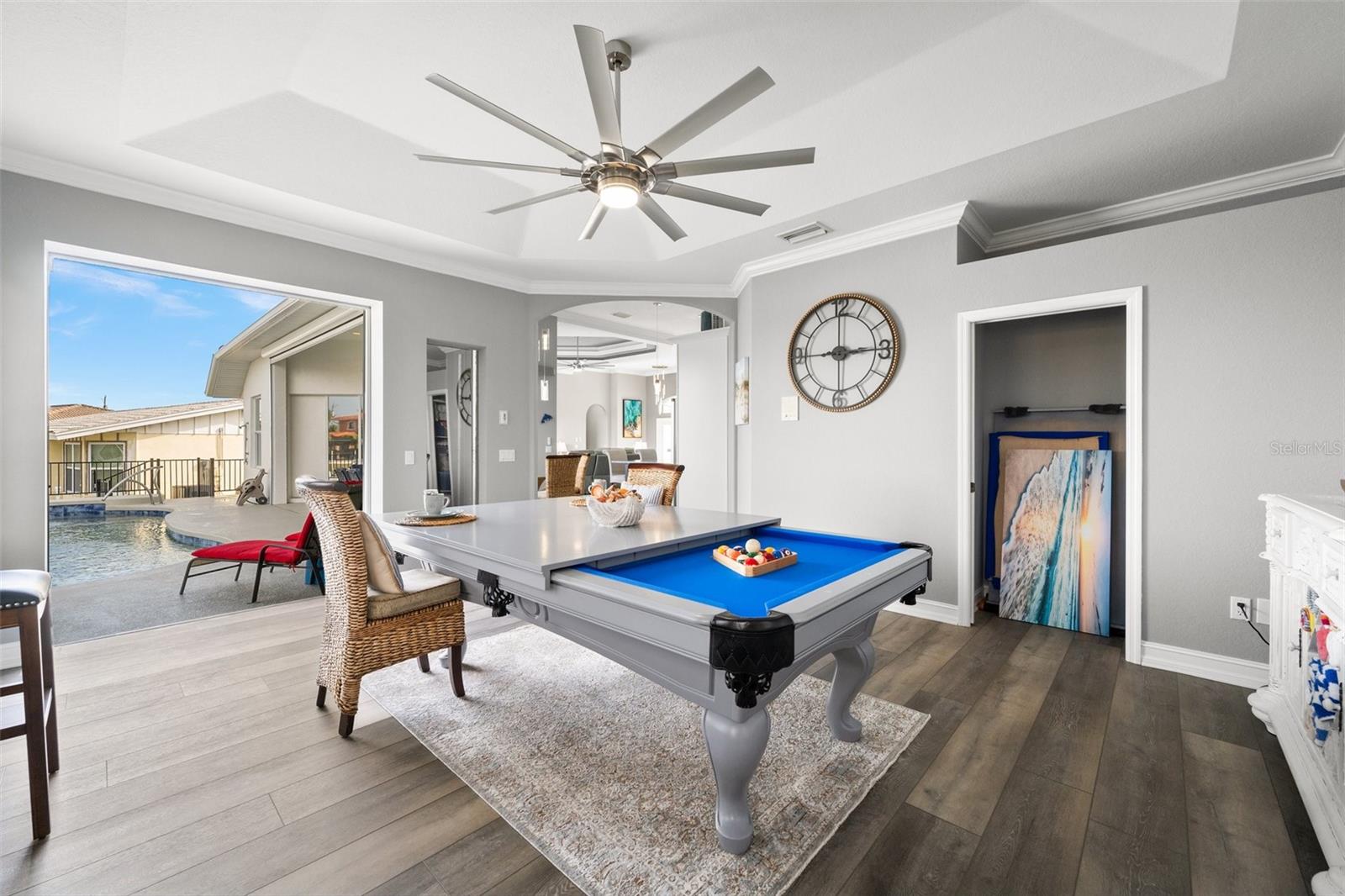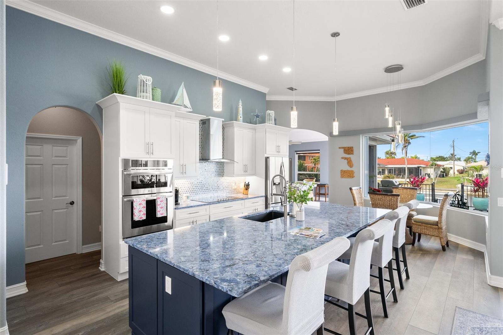 Que melhor maneira de começar e terminar o seu dia do que ouvir os sons suaves da água dançando sobre a piscina e o spa enquanto desfruta de vistas amplas de água e canal. Esta bela casa de acesso ao golfo de 3 quartos e 2 banheiros foi extensivamente remodelada, oferecendo acabamentos extraordinários e tremenda atenção aos detalhes. Em uma elevação mais alta, esta casa sempre permaneceu seca em todas as tempestades. Para os entusiastas do passeio de barco, esta casa possui uma doca de concreto com elevador motorizado de 10.000 barcos, água e elétrica, e é apenas um curto passeio de barco de 10 minutos até o porto de Charlotte! Ao caminhar pelas deslumbrantes portas de vidro duplo, você recebeu tetos de volume, moldagem por coroa, entradas arqueadas e belo piso LVP. O coração da casa é a cozinha gourmet, com uma ilha de quartzita 11x5. Cooktop, backsplash de ladrilhos luxuosos, refrigerador de bebidas, novos aparelhos, iluminação contemporânea e canto do café da manhã com uma janela de canto perfeita com vista para o lanai e todo o comprimento do canal. O conceito aberto flui sem esforço para a sala de estar com tetos de bandeja iluminados e uma parede de 12 pés de portas deslizantes de bolso abrindo para o equilíbrio perfeito da vida interna/externa. Você tem o melhor dos dois mundos, com uma tela retrátil motorizada de 30 pés que permite desfrutar de refeições ao ar livre com confortos internos. A sala de bônus é espaçosa e um local perfeito para entretenimento, com acesso ao Lanai. A suíte primária é impressionante, com uma grande área de estar com controles deslizantes de bolso na área da piscina, tratamentos de janelas personalizadas e dois armários espaçosos. O generoso banho semelhante ao spa apresenta uma caminhada personalizada com chuveiro com impressionante e elegante azulejo de vidro de espinha de peixe, uma banheira independente, vaidades duplas e amplo espaço no armário. A privacidade não será um problema com a planta baixa. Os quartos são espaçosos e apresentam novos carpetes. Você ficará impressionado com a mistura perfeita de espaço interno/externo de todos os quartos, com vistas claras das acolhedas piscinas e spa de água salgada, com iluminação de intellibrite, uma bela característica de água de golfinhos e o exuberante pátio paisagístico com cerca de ferro. Existem tantas características novas e atualizadas em toda a casa, incluindo um telhado mais recente (2023), piso de garagem epóxi, tinta fresca por dentro e por fora, encanamento manabloc, piso de vinil de luxo, novo A/C (2025) e muito mais. Esta é realmente uma casa e localização dos sonhos, com proximidade com o porto, dois campos de golfe, novo pickleball plex no bairro, além do iate clube, vila de pescadores, praias e tudo o que Punta Gorda e SWFL têm a oferecer.