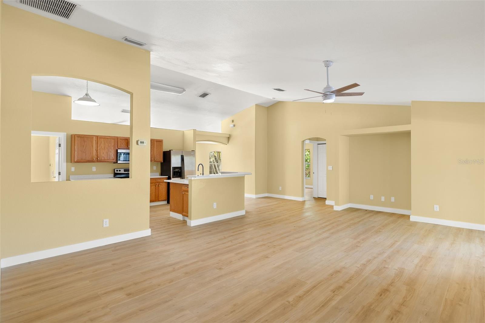 Atualizado de 3 quartos, Den, piscina/spa de dois banheiros com incrível pátio paisagístico e gerador de casa inteira com tanque enterrado! Esta casa lindamente mantida apresenta uma nova tinta no interior, o novo piso laminado e os generosos de caldo e os acabamentos modernos. Novos ventiladores de teto com kits leves em toda a casa. Belas novas balcões de quartzo tops grandes cozinha aberta com muitos armários para armazenamento e pacote de aparelhos de aço inoxidável, é um ótimo lugar para entreter familiares e amigos. A cozinha tem grande despensa para armazenamento. As portas de vidro deslizantes levam a grande sob a treliça Lanai, olhando a triagem em piscina e spa personalizados, um ótimo lugar para desfrutar do clima. O quintal tropical e privado possui 2 grandes galpões para armazenamento adicional ou para fazer uma ótima oficina. Convenientemente localizado perto da Kings Highway e da I-75, perto de fazer compras, restaurantes e entretenimento.