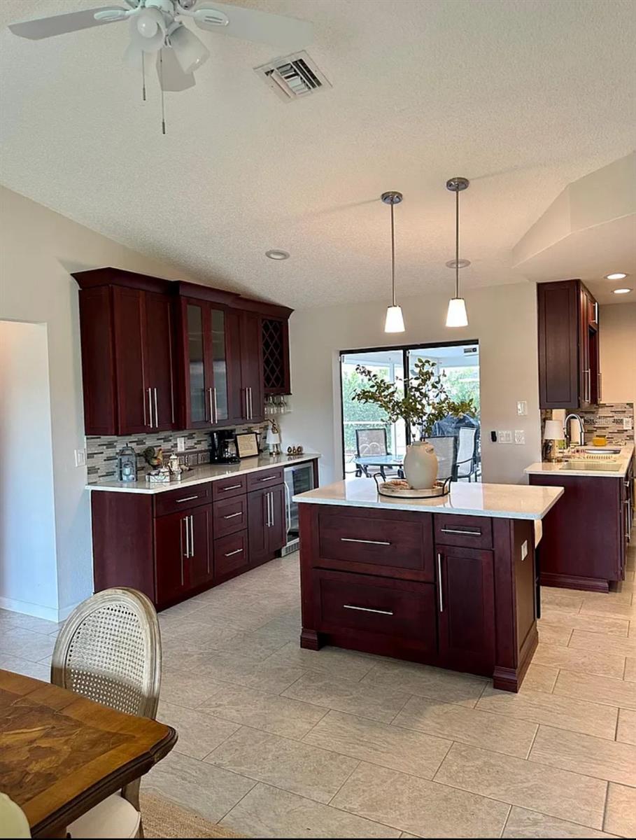 Charming 3 Br, 2 Ba Home em Deep Creek Deep de Punta Gorda, empoleirado com a elevação mais alta (19 pés), a apenas 5 minutos de refeições à beira-mar, compras, pesca e passeios de barco, ou uma unidade de 50+drives até praias arenosas de Gasparilla Island, Engllewood, Venice-Without inundado. Perfeitamente localizado perto da I-75 para viagens rápidas, esta casa oferece segurança e proximidade com as melhores atrações do sudoeste da Flórida. Com tetos altos, pisos e um layout convidativo, a casa se concentra em uma piscina deslumbrante, visível de quase todos os quartos. O mestre privado EN-Suite inclui um banheiro completo com chuveiro, pias duplas, armário de linho e closet. Dois quartos espaçosos do tamanho de uma queda com armários compartilham um banheiro com uma banheira e acesso à piscina. Totalmente chave em chave, com mobiliário de aloha dixie e peças de qualidade vintage de ponta, a casa possui cozinha e eletrodomésticos atualizados, bancadas em granito, uma ilha de cozinha, geladeira de vinho, muito espaço para armários e despensa e uma grande lavanderia com lavadora/secadora. Desfrute de ventiladores de teto iluminados e TVs inteligentes da Samsung na sala da família, na área de jantar e em todos os quartos. As atualizações incluem um novo aquecedor de piscina 2025, janelas de impacto por furacões e uma grande garagem para dois carros. O expansivo Lanai oferece amplo espaço para móveis de pátio, perfeito para desfrutar da área de piscina exibida. Deep Creek é uma comunidade vibrante e em crescimento, com um novo Centro Médico Adventhealth, vizinhos amigáveis, locais de culto diversos e um animado no centro da cidade. Desfrute de pescar, passear de barco, golfe, ótimas escolas e clima quente nesta mistura perfeita de acesso costeiro e segurança interior.