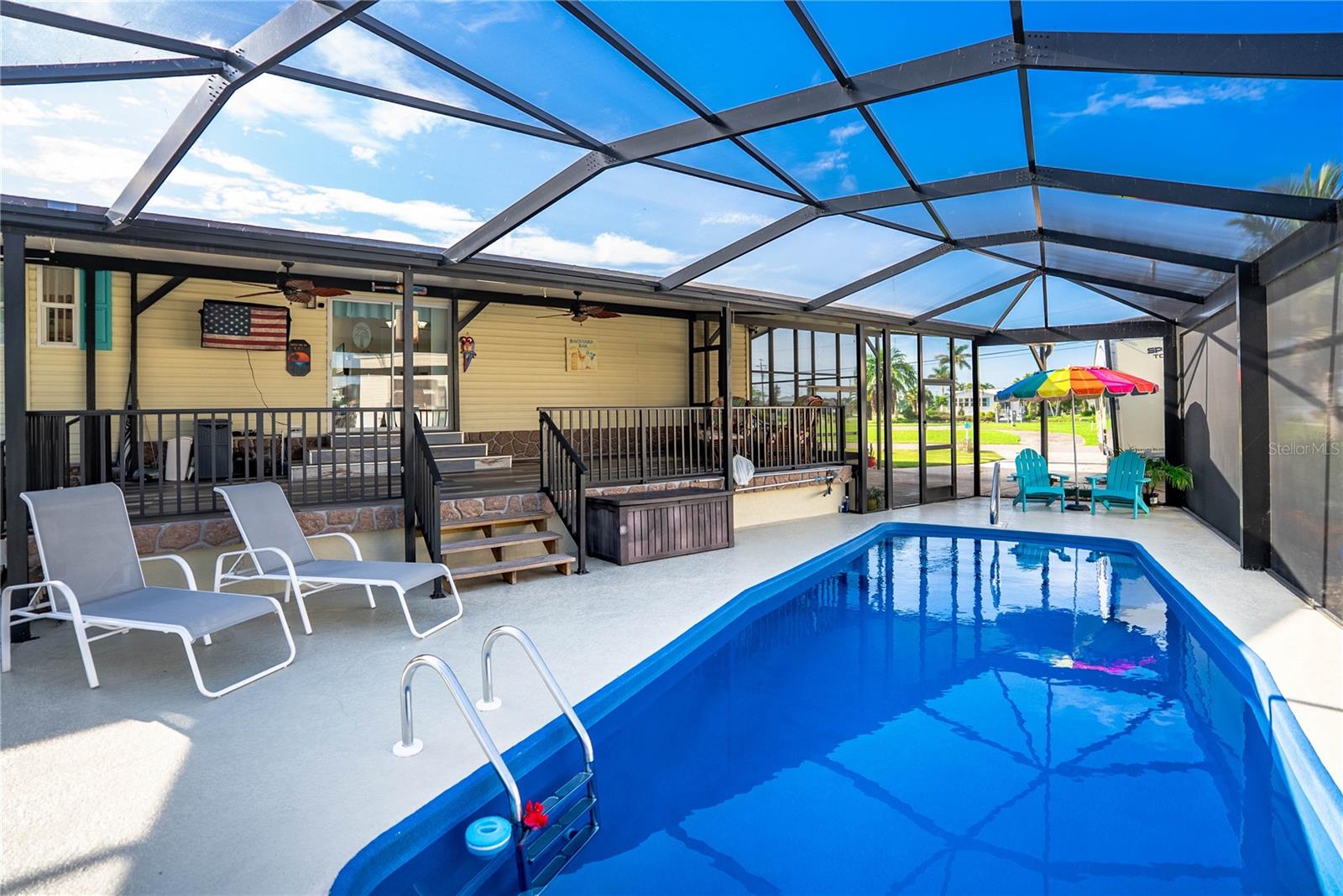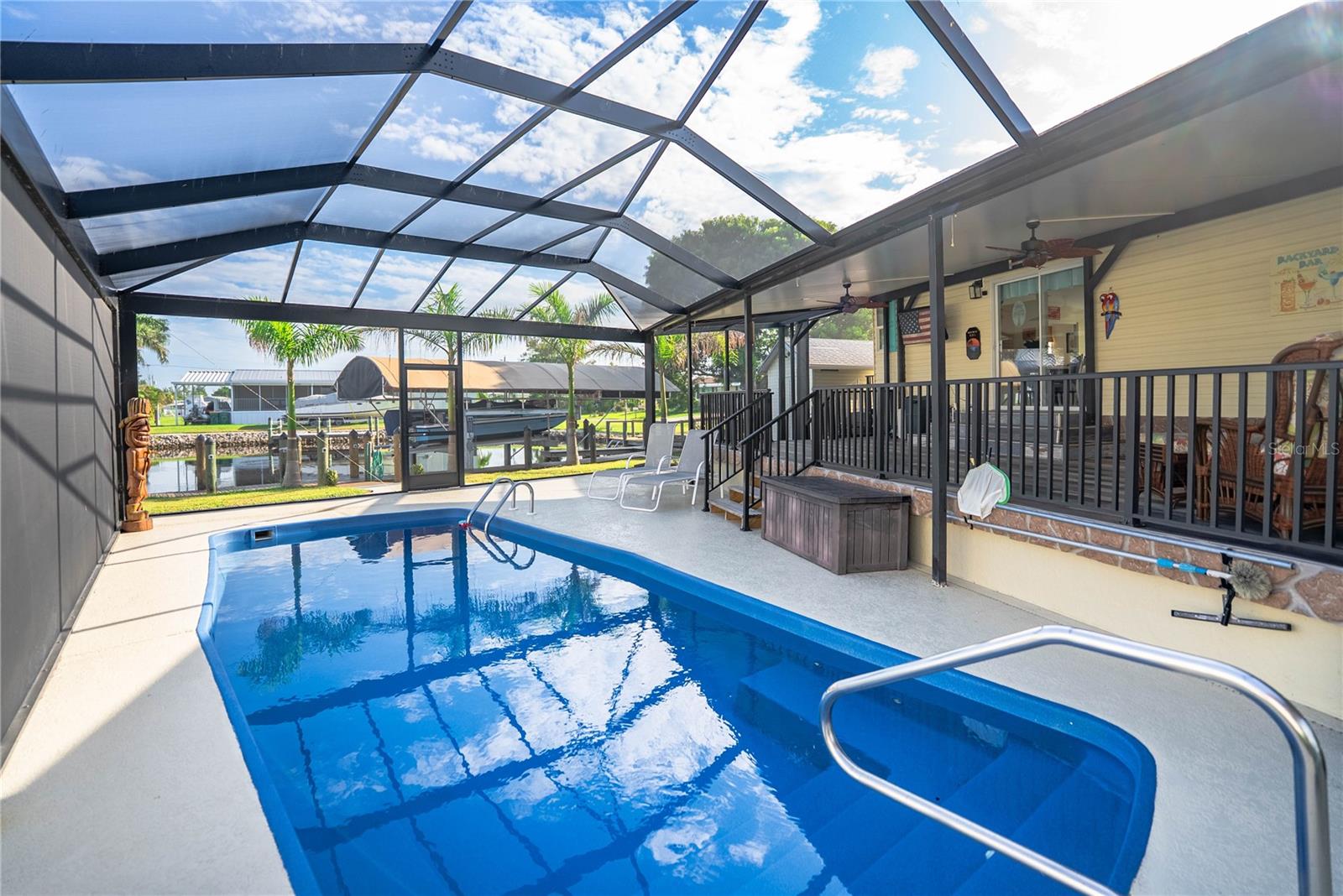 Esta casa à orla de acesso à vela está aninhada na tranquila área do Charlotte Park em um canal de água salgada na bela Punta Gorda. Deck grande composto e gabinete de tela cheia sob treliça abrange o baralho e a piscina. Esta casa de 2 camas de 2 banheiros vem com uma garagem isolada de 1200 pés quadrados e um edifício de armazenamento de 10'x12 '. Garagem e armazenamento são conectados para 120V e 240V elétricos. A garagem acomoda 30, 50 e 60 amp, incluindo uma conexão para um trailer. O Home tem uma conexão para um gerador se o novo comprador optar por adicionar um. Home possui novo PAEL A/ C, novo painel elétrico de 200 amp e insulatação de espuma de célula de célula fechada de 5 "embaixo da casa. Duas docas e um elevador de barco de 12.000 libras que inclui novos motores, cabos, interruptores e caixa elétrica. Pool recapente. Mile para o Riviera Grill- O restaurante à beira-mar do bairro!