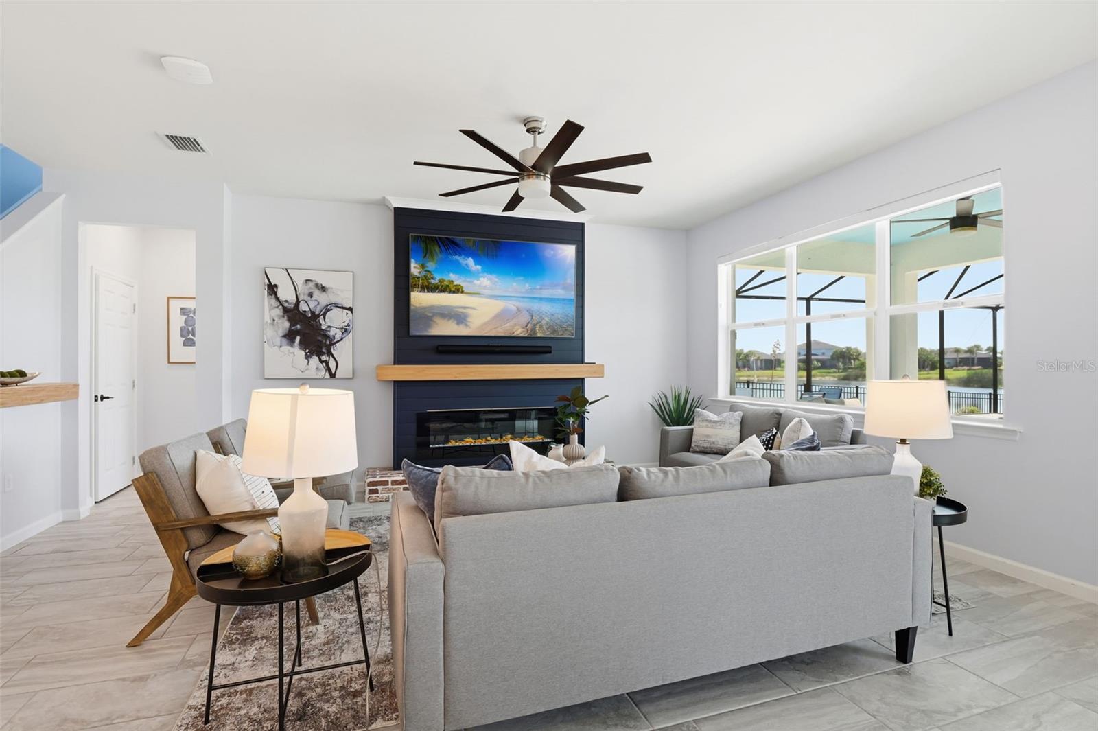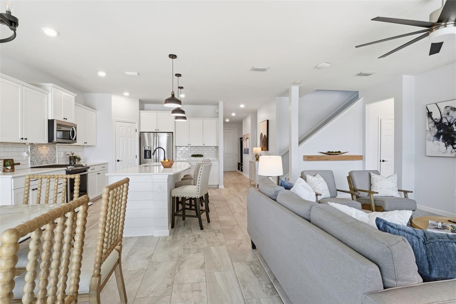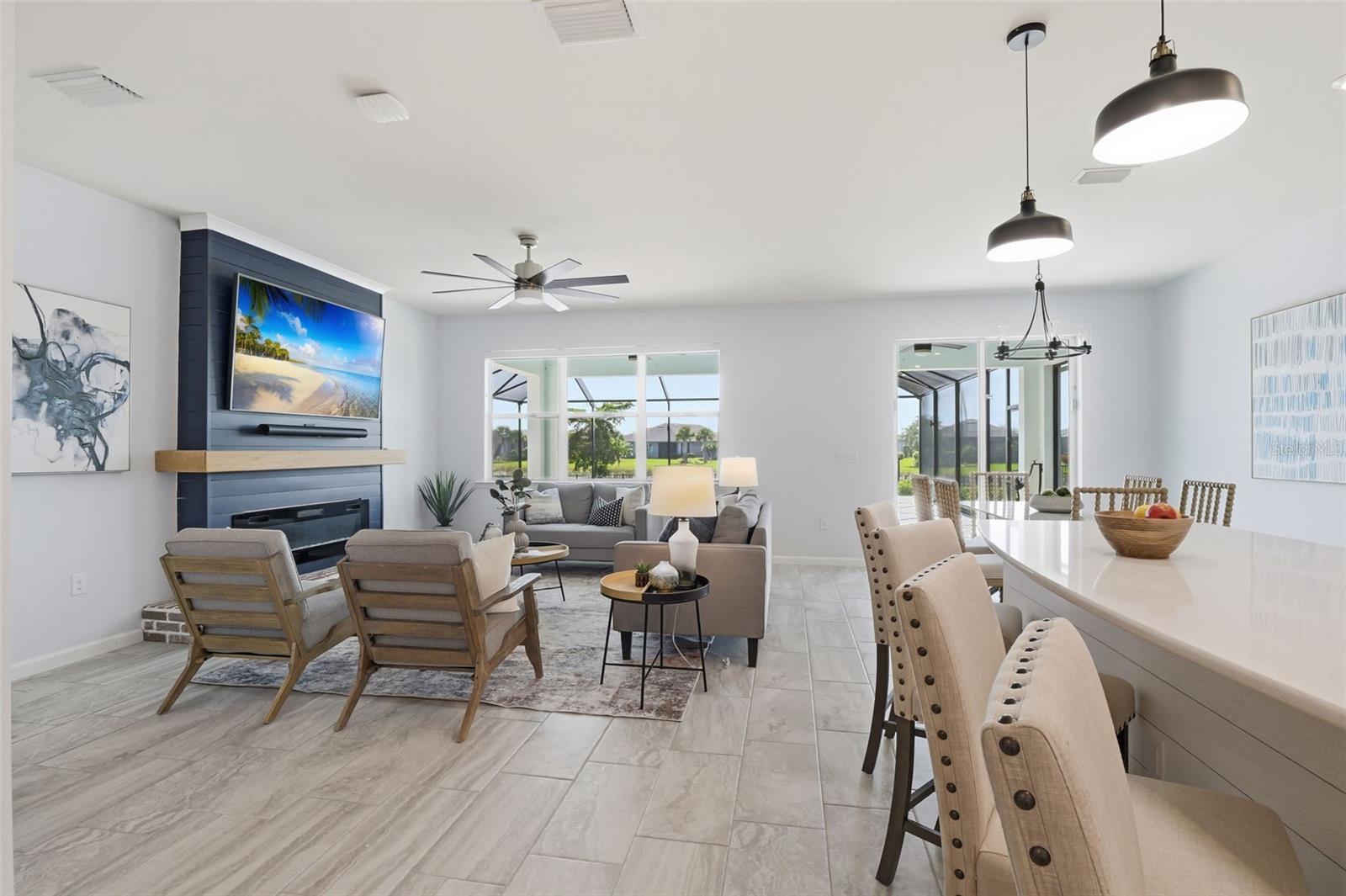 Uma ou mais fotos foram virtualmente encenadas. Ao entrar nesta deslumbrante casa Citrus Grove construída em Pulte, com quatro quartos e uma suíte do proprietário no andar principal, além de um salão e loft com vista para o lago, você se sentirá em casa! Localizado no final de uma rua sem saída. Desfrute de belas vistas do pôr do sol no sudoeste. Mergulhe no luxo de uma piscina personalizada com uma relaxante banheira de hidromassagem, uma espaçosa prateleira de sol perfeita para relaxar e designs de mosaicos complexos que adicionam um toque de elegância artística. Esta casa possui belos acabamentos, incluindo uma ilha de quartzo grande, fogão a gás, despensa de canto, zona de armazenamento personalizada para sapatos e bolsas, carpintaria de alta qualidade na sala, lareira personalizada, backsplash de azulejos, eletrodomésticos atualizados e atualizações adicionais que diferenciam esta casa. A suíte do proprietário no andar de baixo tem pias duplas, um grande closet personalizado e um chuveiro espaçoso com porta de vidro, tornando-a um refúgio perfeito, enquanto mais três quartos e um loft no segundo andar proporcionam conforto para a família ou convidados. Esta casa bem projetada combina perfeitamente luxo, conveniência e vida à beira-mar. A garagem para dois carros tem piso em epóxi e arrumação superior. Você está convenientemente localizado a uma curta caminhada da Founders Square e do Telegraph Park, onde pode desfrutar das sextas-feiras de Food Truck com música ao vivo ou dos domingos do Farmer Market. Babcock Ranch é a primeira cidade movida a energia solar, oferece uma comunidade acolhedora e uma bela natureza, além de contar com tecnologia moderna, estando entre os 50 melhores lugares para se viver nos Estados Unidos.