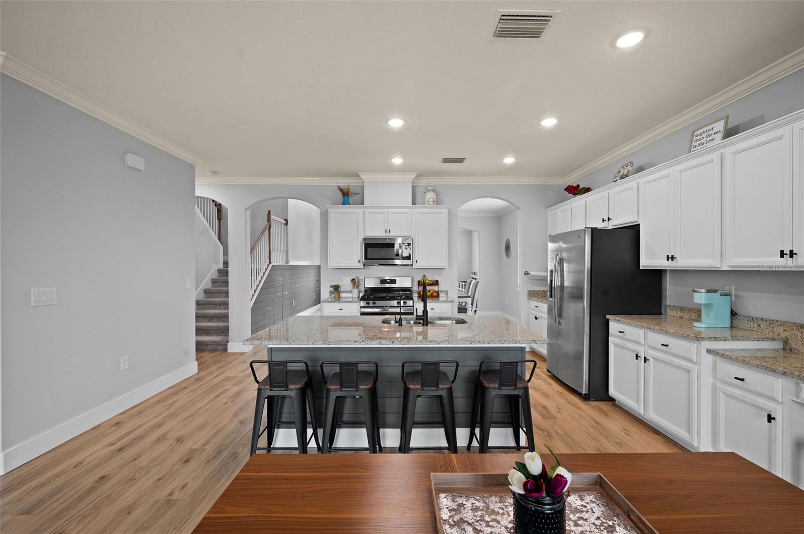 Bem -vindo à sua casa dos sonhos, situada a uma curta distância das vibrantes escolas do bairro de Babcock Ranch! Esta impressionante residência de dois andares oferece 5 quartos, 3 banheiros e uma garagem em tandem de 3 carros com amplo espaço de armazenamento. Localizado em uma rua tranquila que termina em um beco sem saída, esta casa possui uma planta aberta brilhante com tetos altos e elegantes molduras de coroa. A cozinha gourmet é uma delícia de chef, com utensílios de aço inoxidável, uma faixa de gás, bancadas de granito, uma ilha com uma barra de café da manhã e uma despensa. Entregue sem esforço na família aberta e nas salas de jantar que fluem perfeitamente para a cozinha e a sala de estar. O primeiro andar inclui um quarto de hóspedes conveniente com um banheiro próximo, enquanto no andar de cima, você descobrirá um loft espaçoso, uma grande sala de mídia com portas duplas perfeitas para noites de cinema, um luxuoso quarto principal com dois armários e um banheiro privativo e três quartos adicionais com armários embutidos. Aprecie as vistas serenas, enquanto a casa tem vista para uma reserva pitoresca e lago. Localizado em uma fase com construção concluída, esta casa oferece um ambiente de vida pacífico. Desfrute de um estilo de vida ativo com comodidades comunitárias, incluindo uma piscina, quadras de tênis e um parque, tudo sem a necessidade de seguro contra inundações. Esta casa combina conforto, elegância e vida moderna em uma comunidade dinâmica. Não perca a chance de fazer desta linda casa sua casa para sempre. Programe sua exibição hoje !!