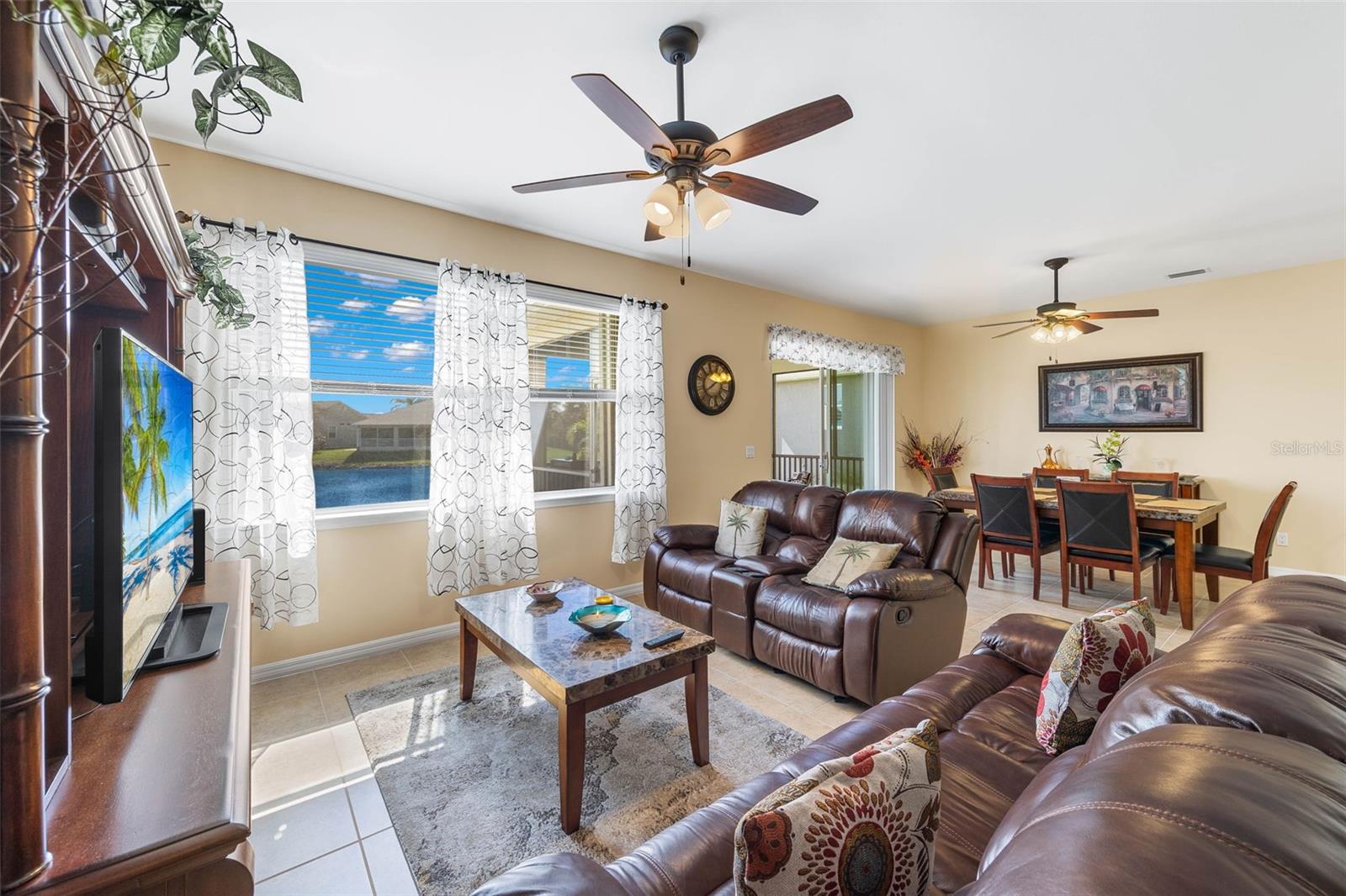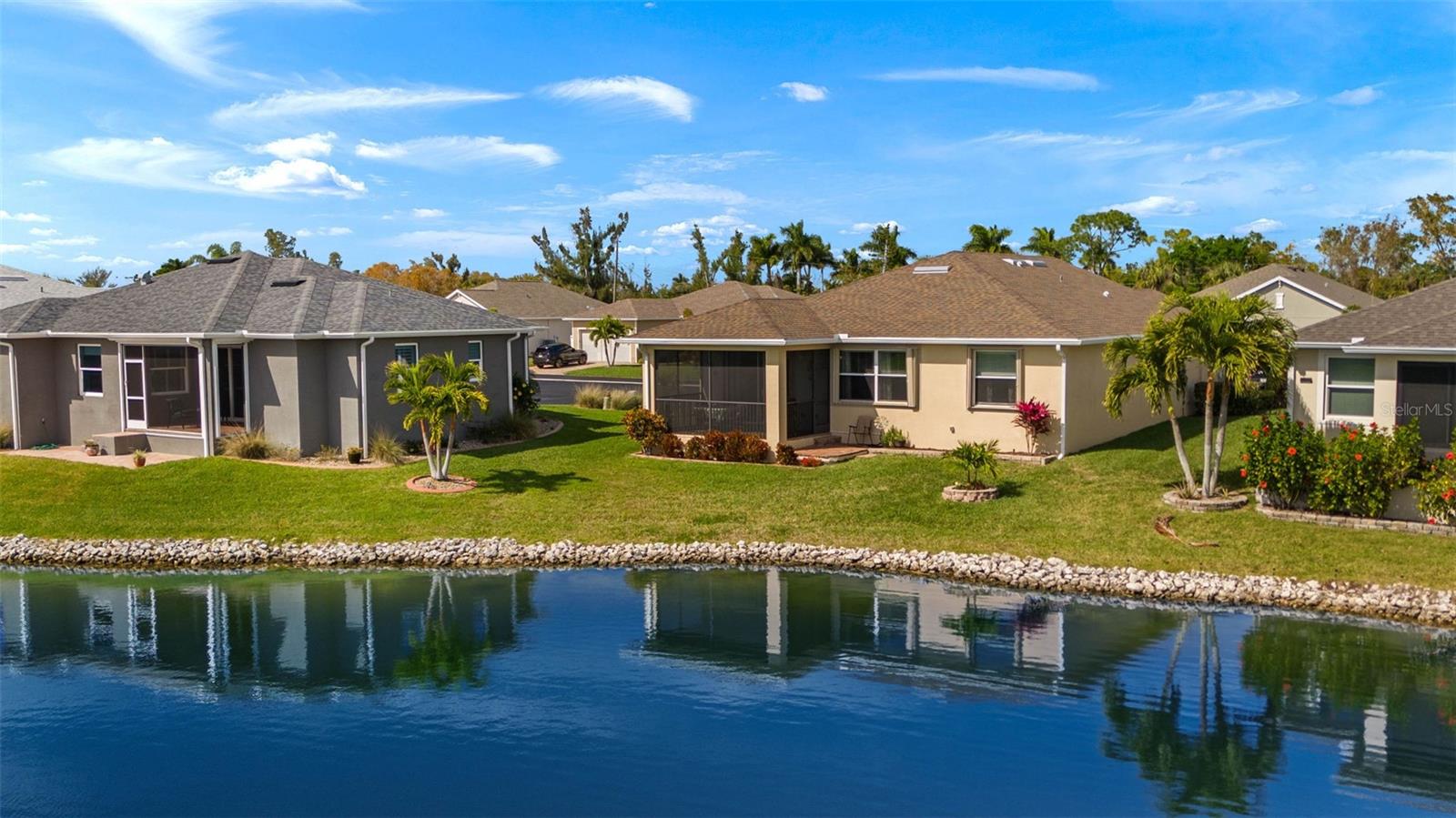 Vistas magníficas da água e excelente apelo ao meio -fio neste impecavelmente mantido 3 quartos, 2 banheiros, 2 carros para casa com mais de 1800 pés quadrados de espaço de estar. Você vai adorar a sensação da propriedade no minuto em que suba a pavimentadora e a passarela até a porta da frente. Entre na entrada do Grand Hall Hall, que flui pela sala de estar para a área de estar e oferece algumas das melhores vistas dianteiras do lago em toda a comunidade. A planta baixa oferece a máxima privacidade para você e seu convidado. Os 2º e 3º quartos são espaçosos, com armários de tamanho agradável para armazenamento. O hóspede tem uma combinação de chuveiro de banheira e está localizado no corredor entre os dois quartos. Muitos armários em toda a casa para armazenamento adicional. O quarto primário é muito espaçoso, com vistas tranquilas do lago e um banheiro adequado para uma rainha com banheira grande, chuveiro de ladrilhos e uma vaidade dupla. A cozinha está totalmente equipada com muito espaço e armários para armazenamento, uma despensa de bom tamanho e uma barra de café da manhã com vista para a área de estar / jantar, perfeita para entretenimento. Você vai adorar relaxar, desfrutar do café da manhã ou uma bebida noturna assistindo os patos nadar no lago em sua lanai exibida. Lavanderia será uma brisa em sua lavanderia interna com armários para armazenamento e uma pia para aqueles empregos sujos. Esta casa oferece muitos extras para falar, como o novo telhado 2023 e calhas, persianas de furacões de acordeão, amaciador de água, novos lanai exibidos e muito mais! O Rio Villa Lakes é uma comunidade fechada de mais de 55 anos, localizada centralmente perto do centro da cidade, Village Fishermans, PG Airport, I-75, e tudo o que você precisa para viver o estilo de vida da Ultimate Florida.